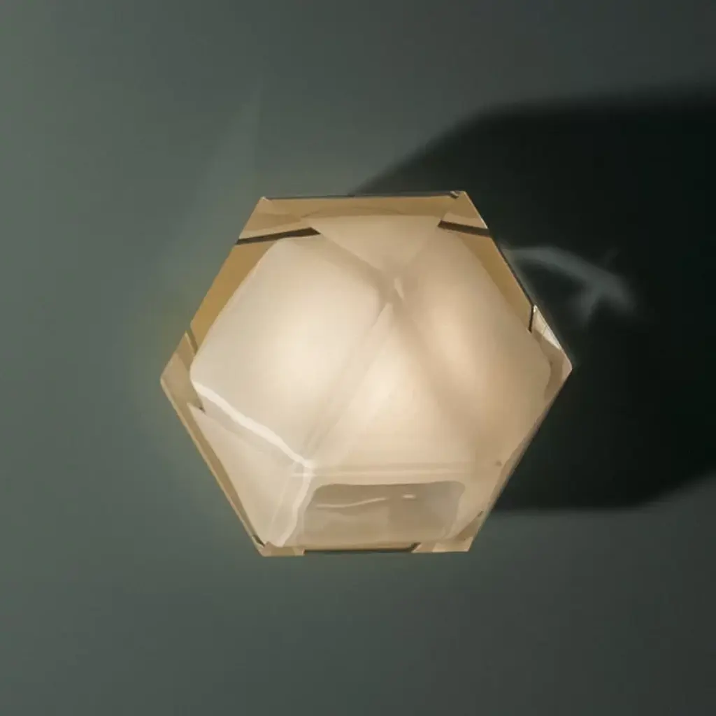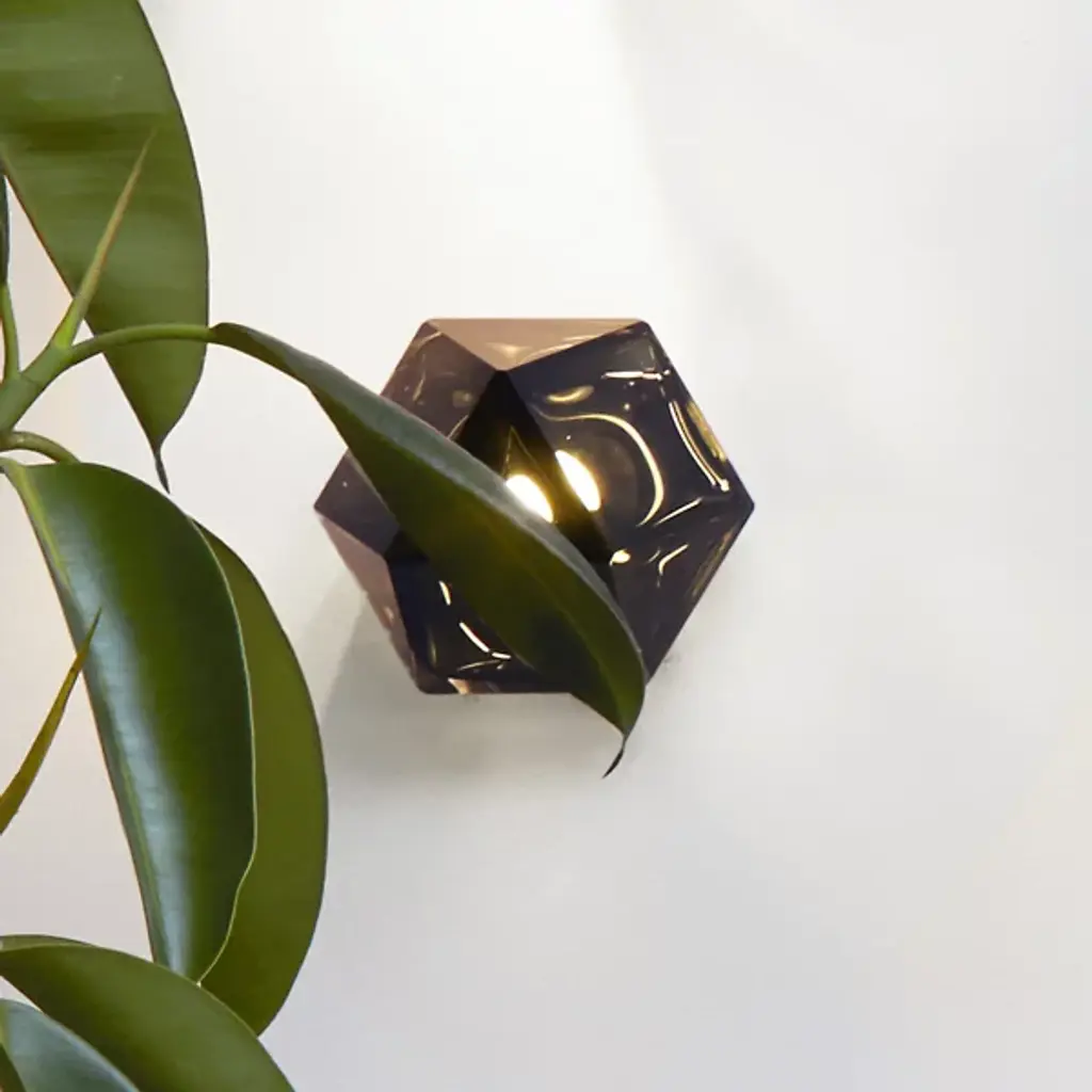 Designers Gabriel Kakon and Scott Richler's jewelry-making background and continuous exploration of playful shapes come at a head in the optically brilliant, gem-inspired Gabriel Scott Welles Double-Blown Glass LED Wall / Ceiling Light. The architecture of the home is the wearer of the bedazzling form. It stands out with a focused silhouette across the wall thanks to a low-profile steel backplate. The double-blown glass shade invites a glance from every angle as captivating geometry cuts its surface. Like a jewel emphasized by a display light, an LED lamp inside shines through the facets delivering highlights that come across in a rich ambient glow.