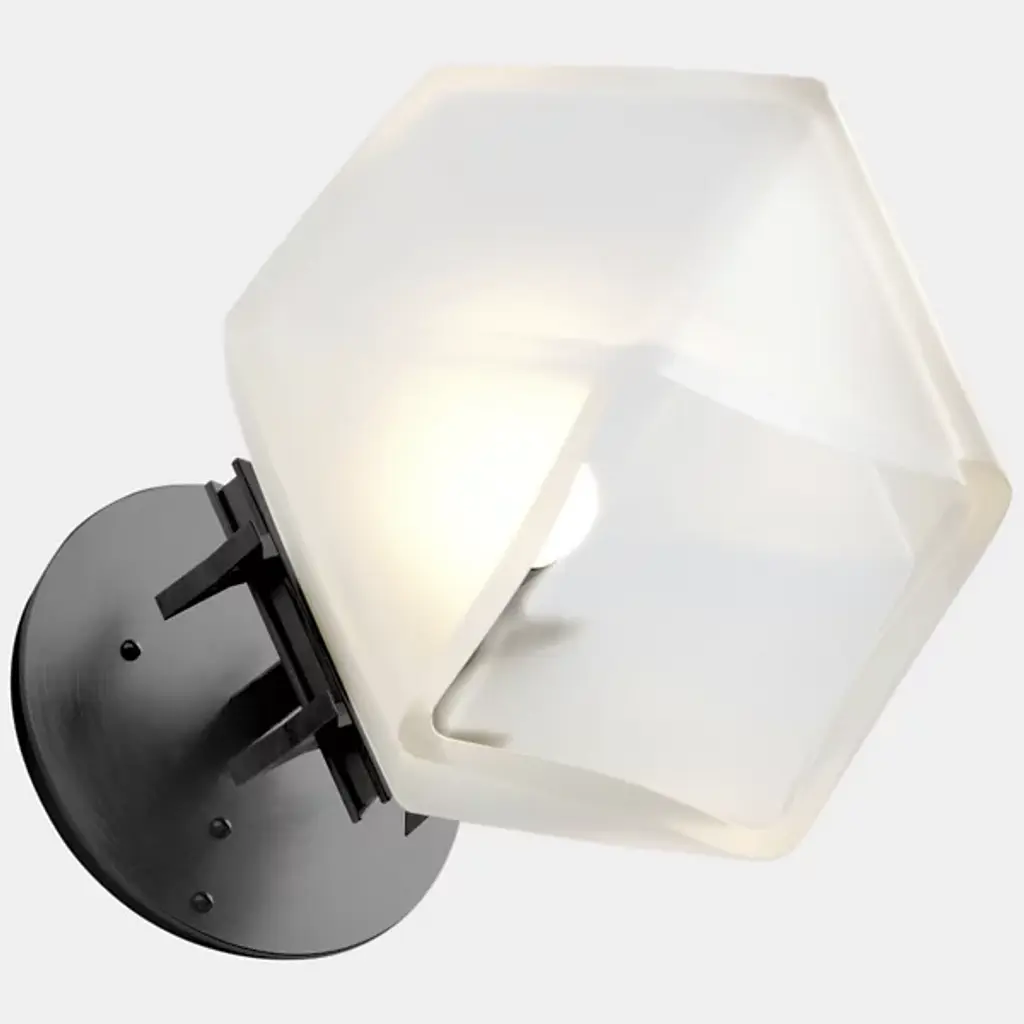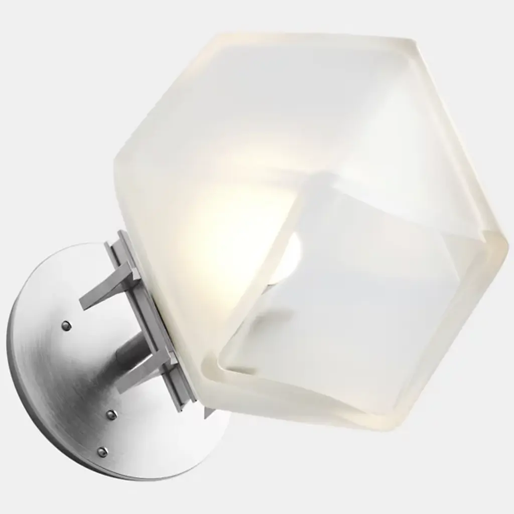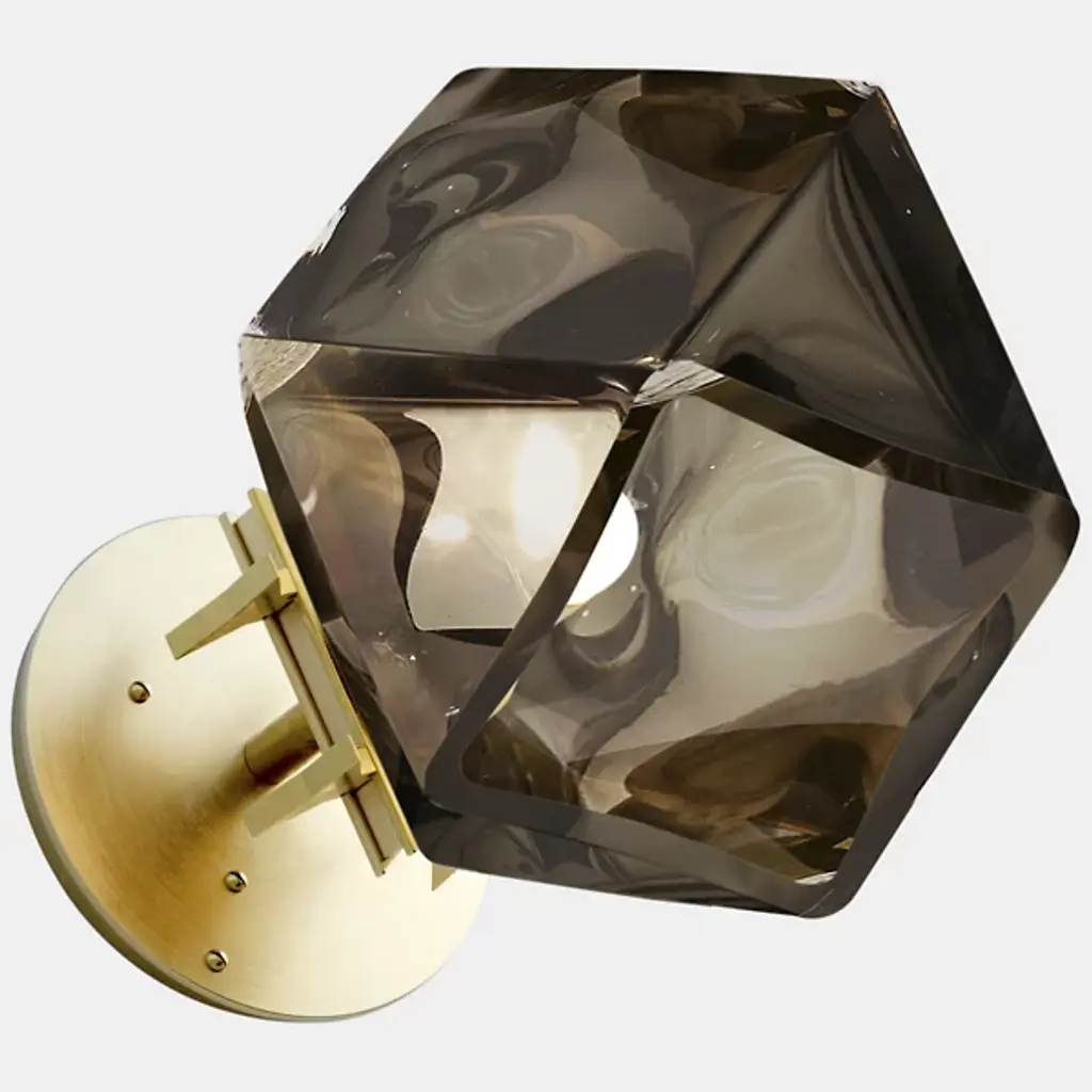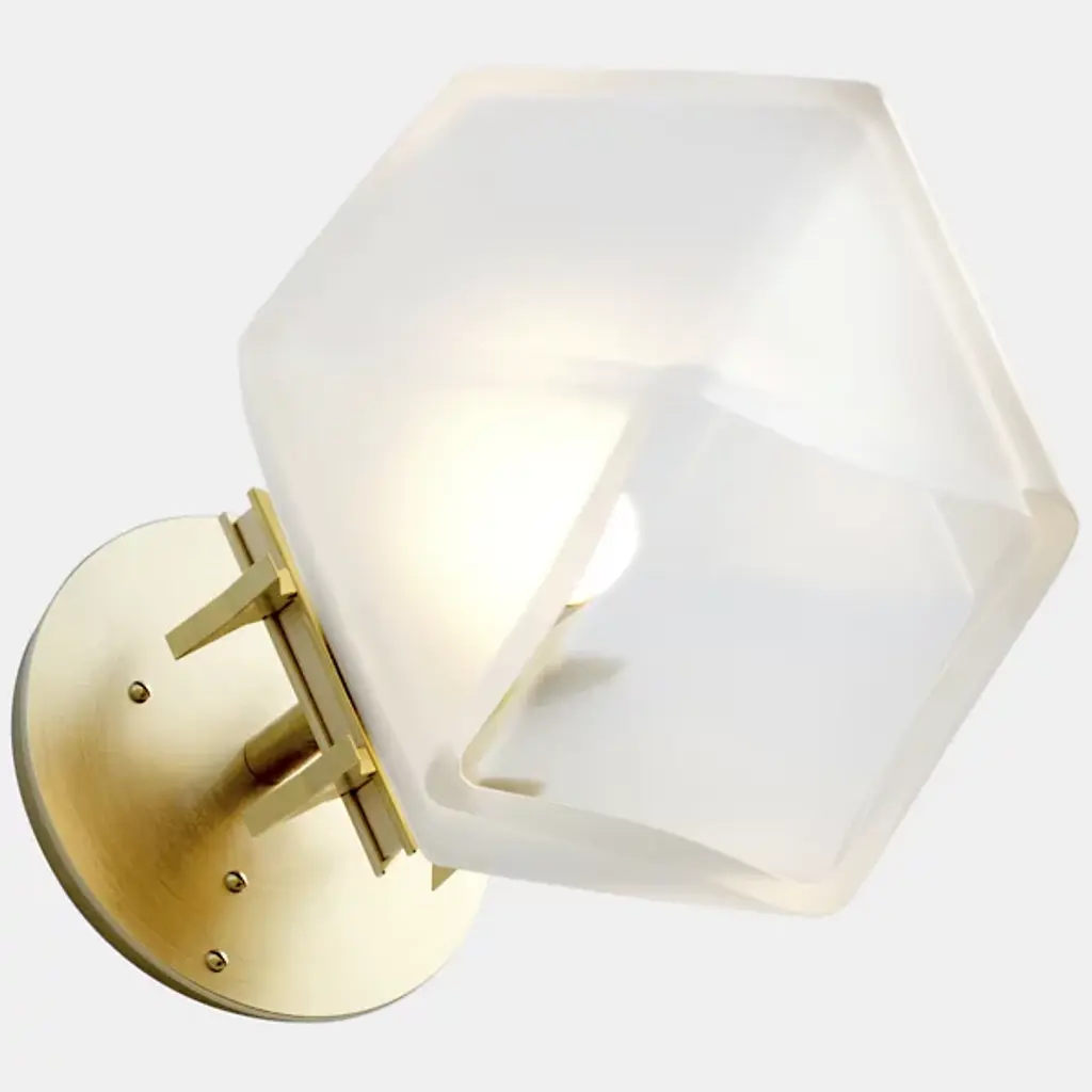 A true gem. Inspired by jewelry design, the WELLES Glass Single Wall Sconce from Gabriel Scott hangs gracefully from your wall like a precious earring. The sconce helps give key architectural features a strong yet sophisticated character. This duality is further explored by Gabriel Scott with an emphasis on masculine and feminine features. Handsome metal mounting hardware underlines the sconce's masculine side. The eyes instantly lock onto the chic, gem-like silhouette of the shade. Artisans craft the shade by blowing glass into a geometric mold. When turned on, every corner of the piece is touched by crisp highlights. The outpouring light creates a warm, inviting ambiance.