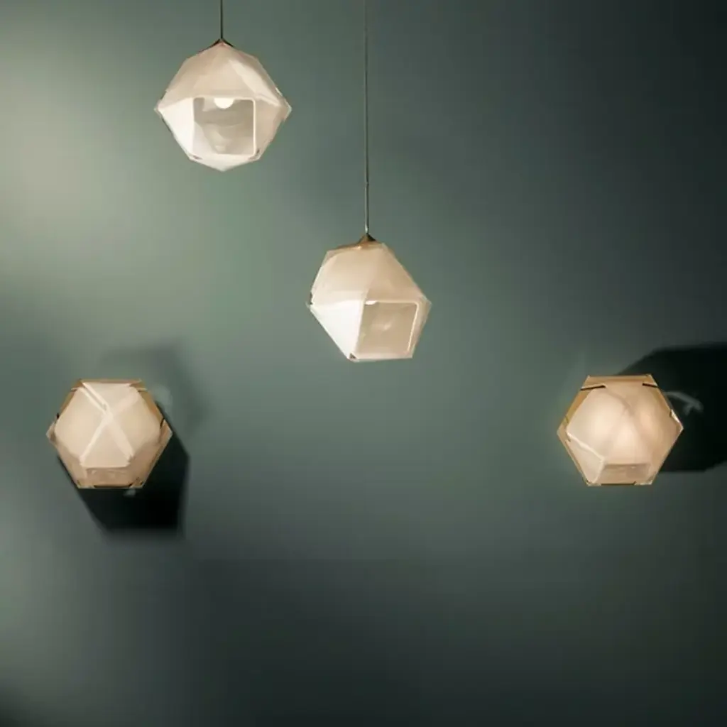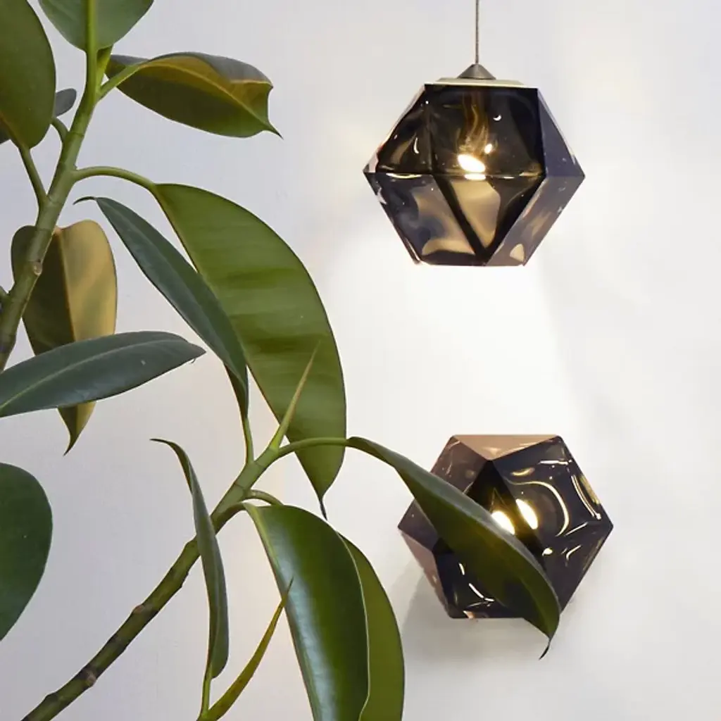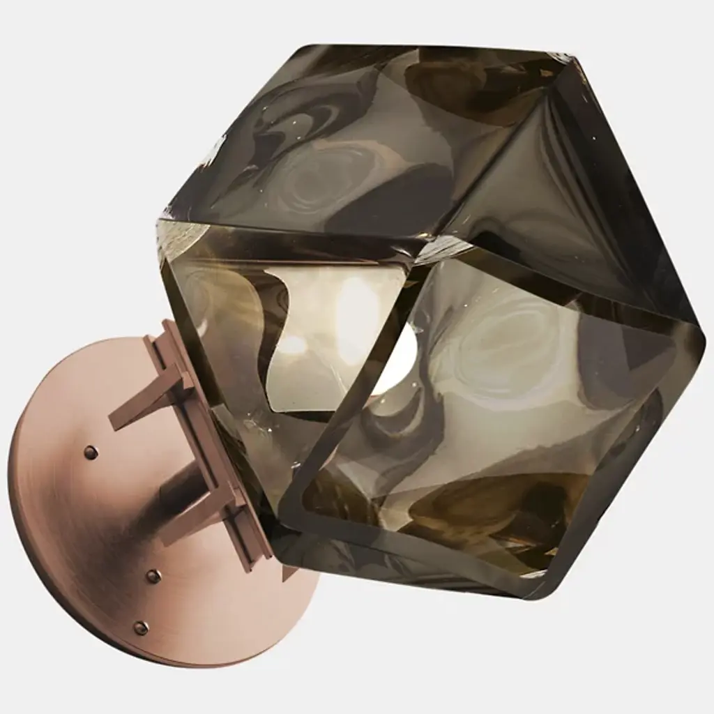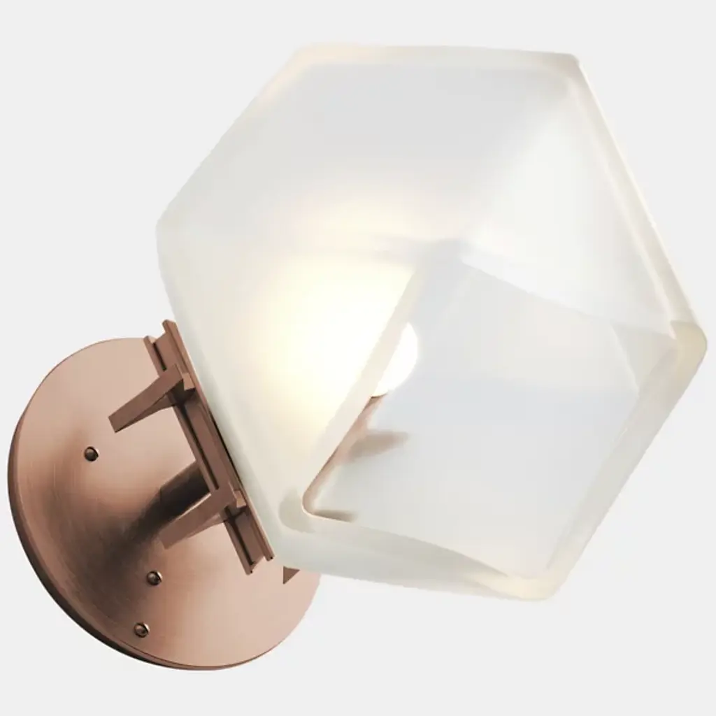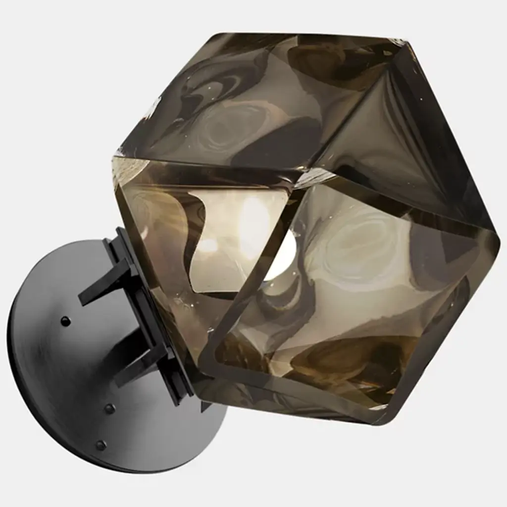 A true gem. Inspired by jewelry design, the WELLES Glass Single Wall Sconce from Gabriel Scott hangs gracefully from your wall like a precious earring. The sconce helps give key architectural features a strong yet sophisticated character. This duality is further explored by Gabriel Scott with an emphasis on masculine and feminine features. Handsome metal mounting hardware underlines the sconce's masculine side. The eyes instantly lock onto the chic, gem-like silhouette of the shade. Artisans craft the shade by blowing glass into a geometric mold. When turned on, every corner of the piece is touched by crisp highlights. The outpouring light creates a warm, inviting ambiance.