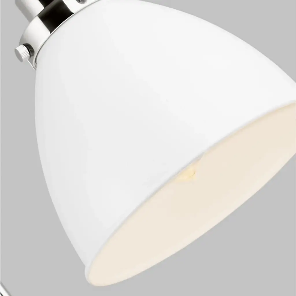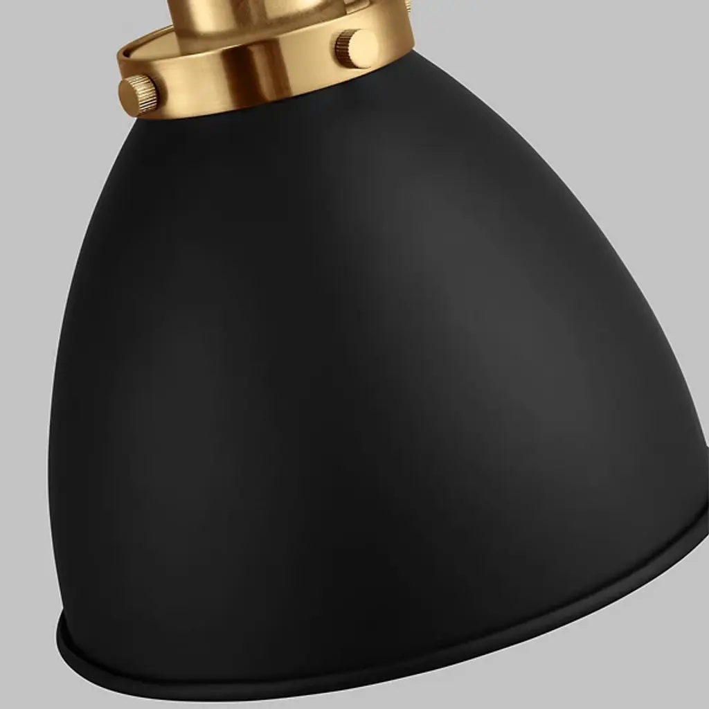 Provide a generous splash of tailored illumination to your intimate or spacious rooms with the Wellfleet Double Arm Dome Wall Sconce from Visual Comfort Studio, formerly known as Chapman & Myers, It's a modern charmer displaying vintage flair. A sleek steel wall plate mounts the piece with a low profile. Shooting out, two short arms produce joints for great adjustability. The arms support a single lamp contained inside a dome shade. The light blazes out from the curves of the shade, delivering a purposeful light best used for tasks, wall washing, or ambiance.