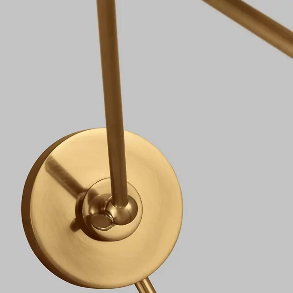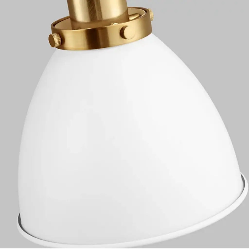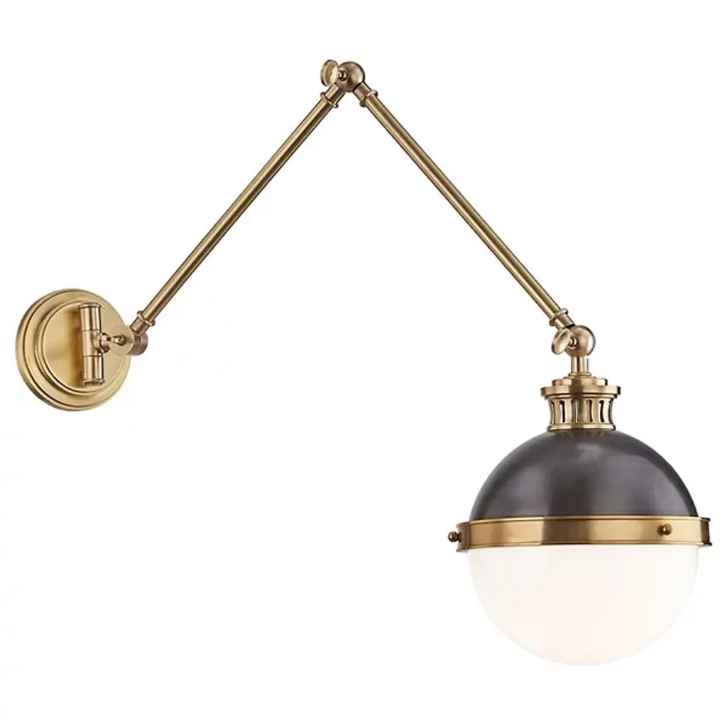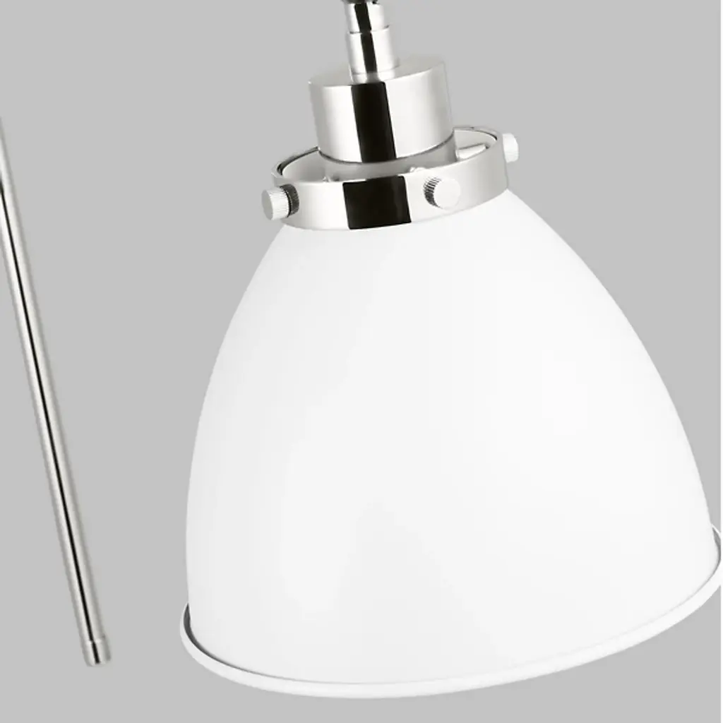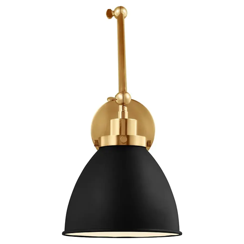 Provide a generous splash of tailored illumination to your intimate or spacious rooms with the Wellfleet Double Arm Dome Wall Sconce from Visual Comfort Studio, formerly known as Chapman & Myers, It's a modern charmer displaying vintage flair. A sleek steel wall plate mounts the piece with a low profile. Shooting out, two short arms produce joints for great adjustability. The arms support a single lamp contained inside a dome shade. The light blazes out from the curves of the shade, delivering a purposeful light best used for tasks, wall washing, or ambiance.