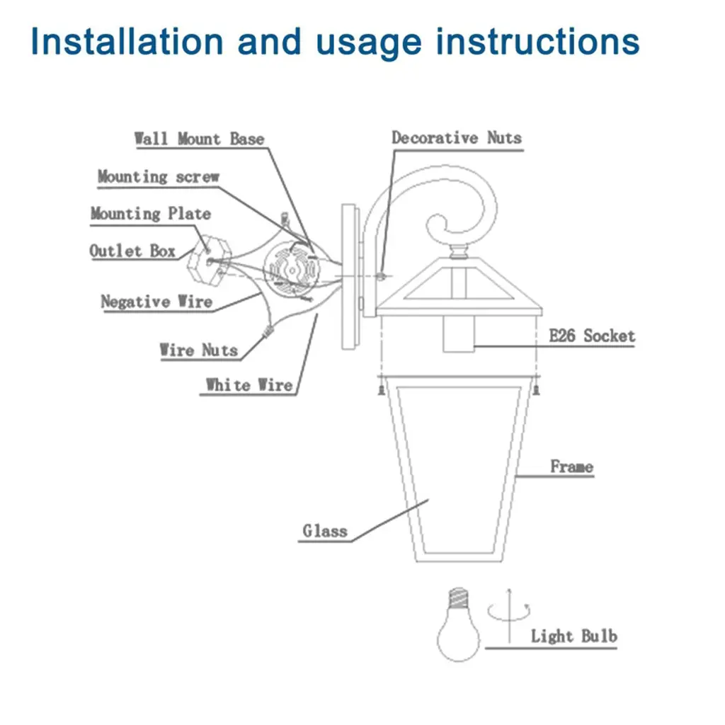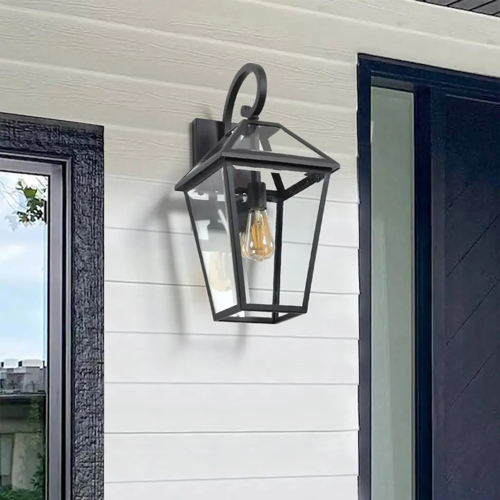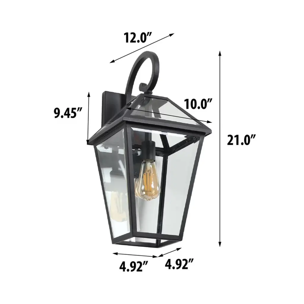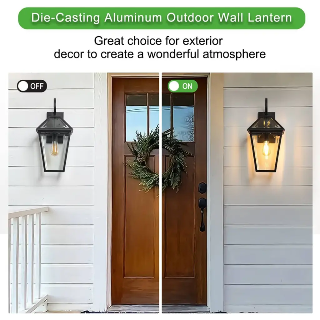 Introducing our Outdoor Wall Lantern: a blend of farmhouse charm and weather-resistant durability. Crafted from sturdy cast aluminum with a sleek black finish and clear glass lampshade, it adds both style and functionality to your outdoor space. No messy wires, no complicated installation steps.Take you less than 30 min to install this exterior light fixture wall mount.