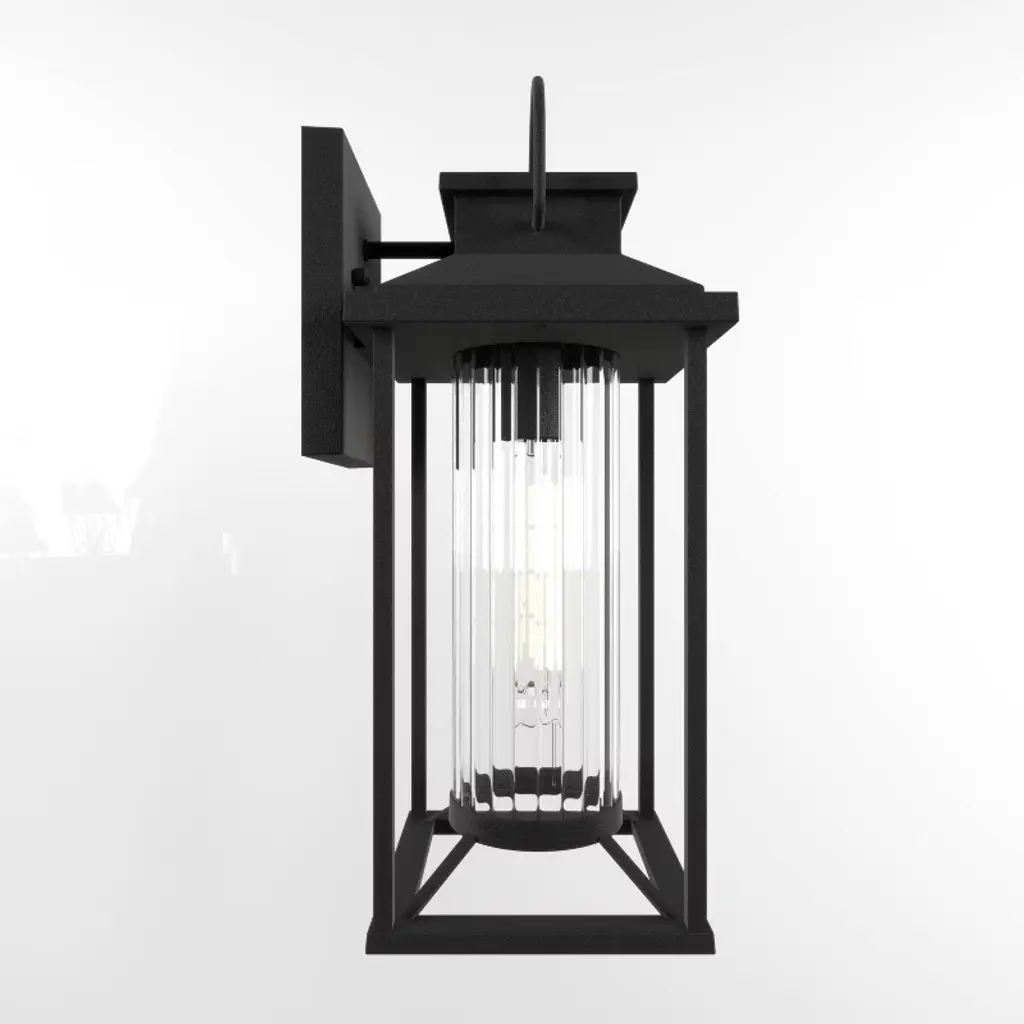 Designed for durability and style, this modern outdoor wall sconce lantern is crafted from high-quality die-cast aluminum with a textured black finish and clear glass panels. Its anti-rust, weather-resistant, and waterproof design ensures reliable performance in all outdoor conditions. Featuring an E26 base socket and easy installation, this fixture enhances both the illumination and aesthetic appeal of your home's exterior.