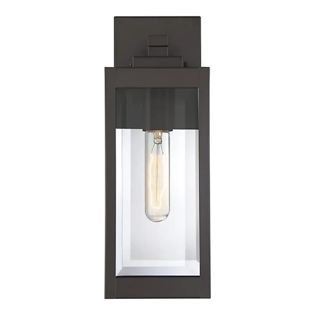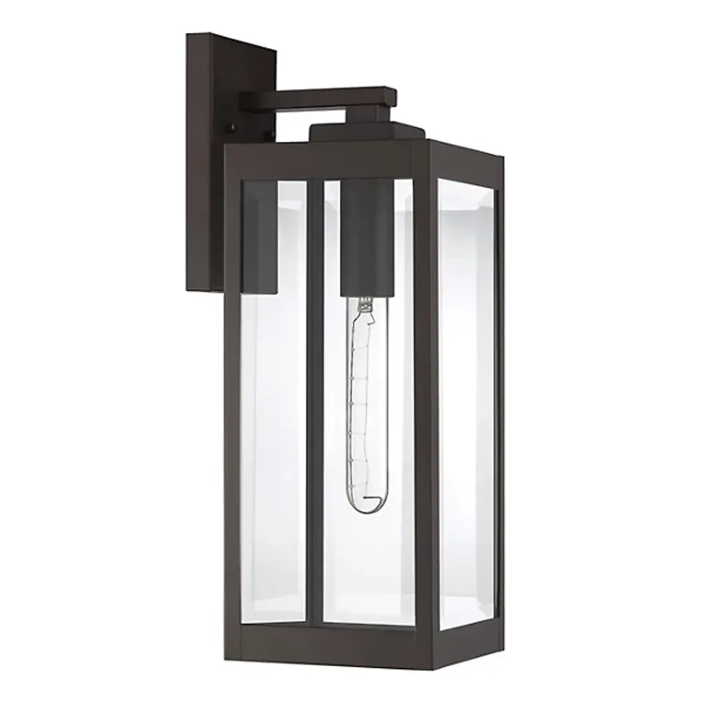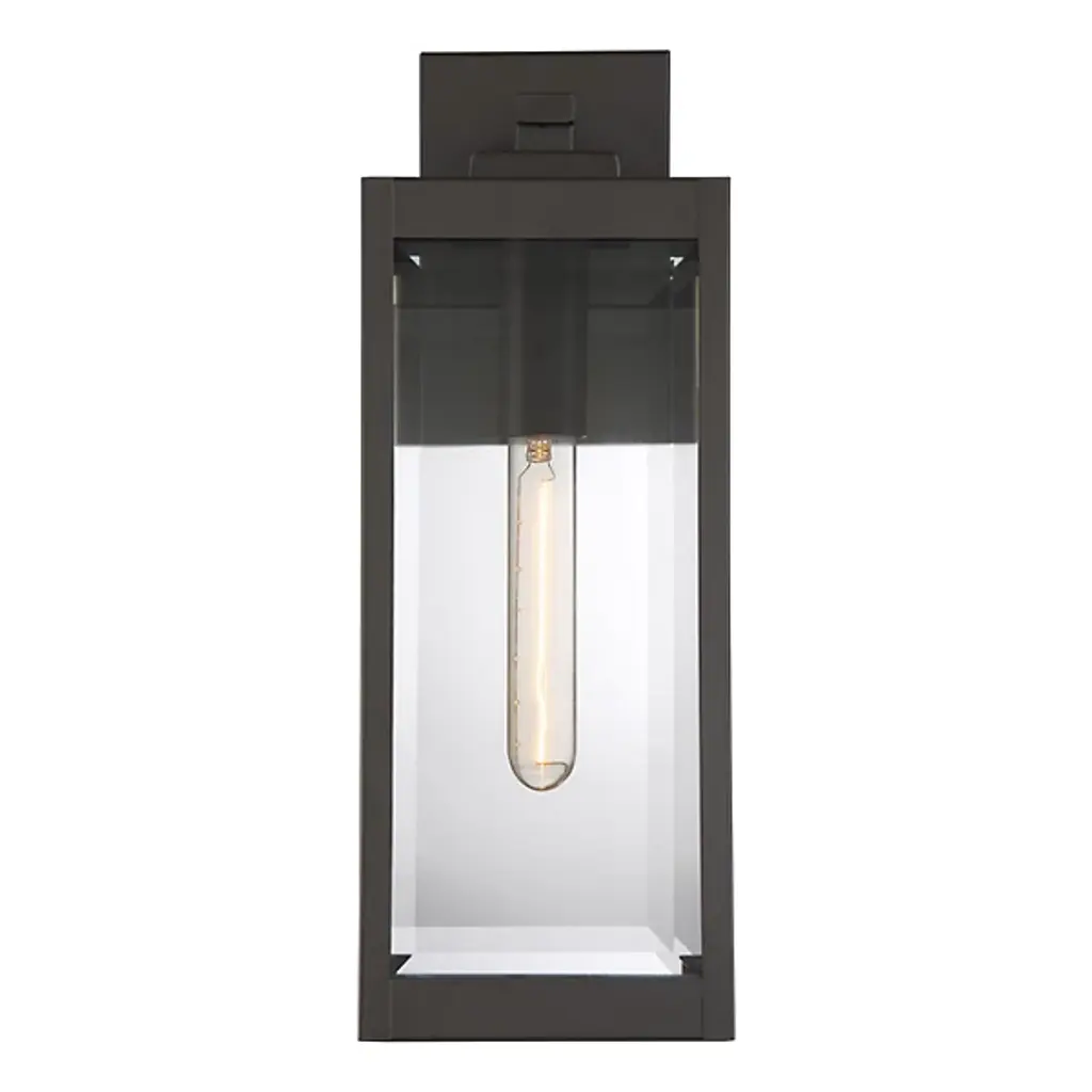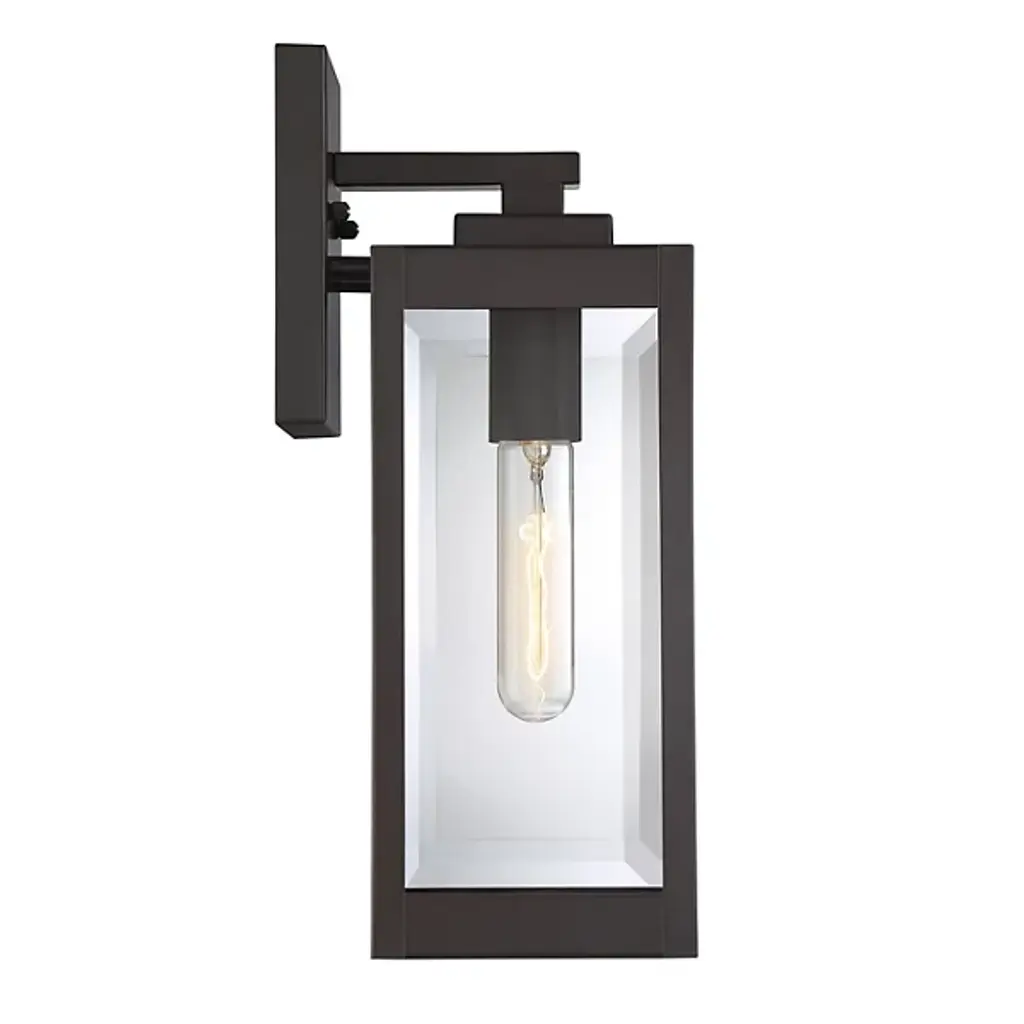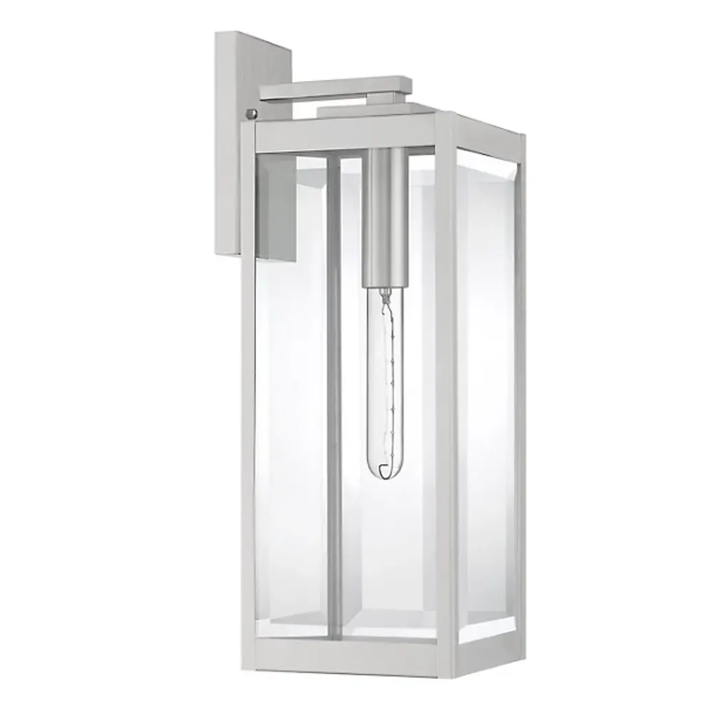 A sleek and modern style that can’t be ignored. The Westover Outdoor Wall Sconce by Quoizel features a clean and simplistic silhouette to complement any modern exterior space. Stainless steel forms its elongated shade and a rectangular backplate, holding clear beveled glass panels on each side. Inside, a cylindrical socket holds a bulb to emit a warm wash of light. Its minimalistic style and smooth framework elevate a space without overpowering surroundings.