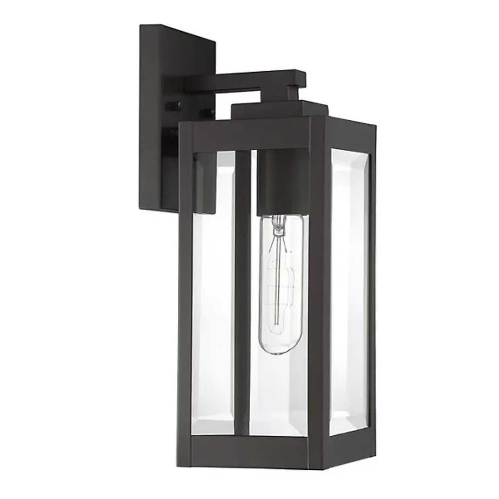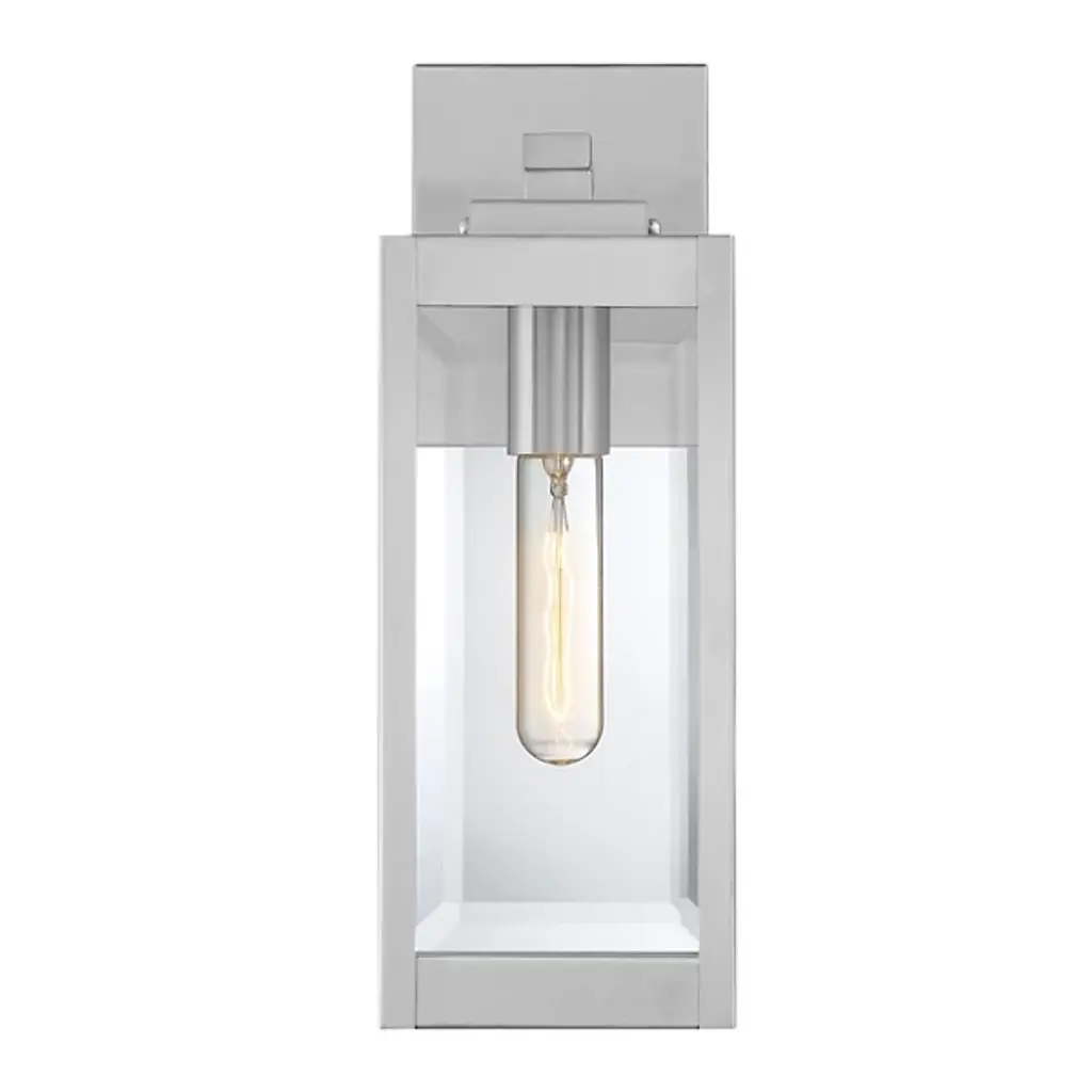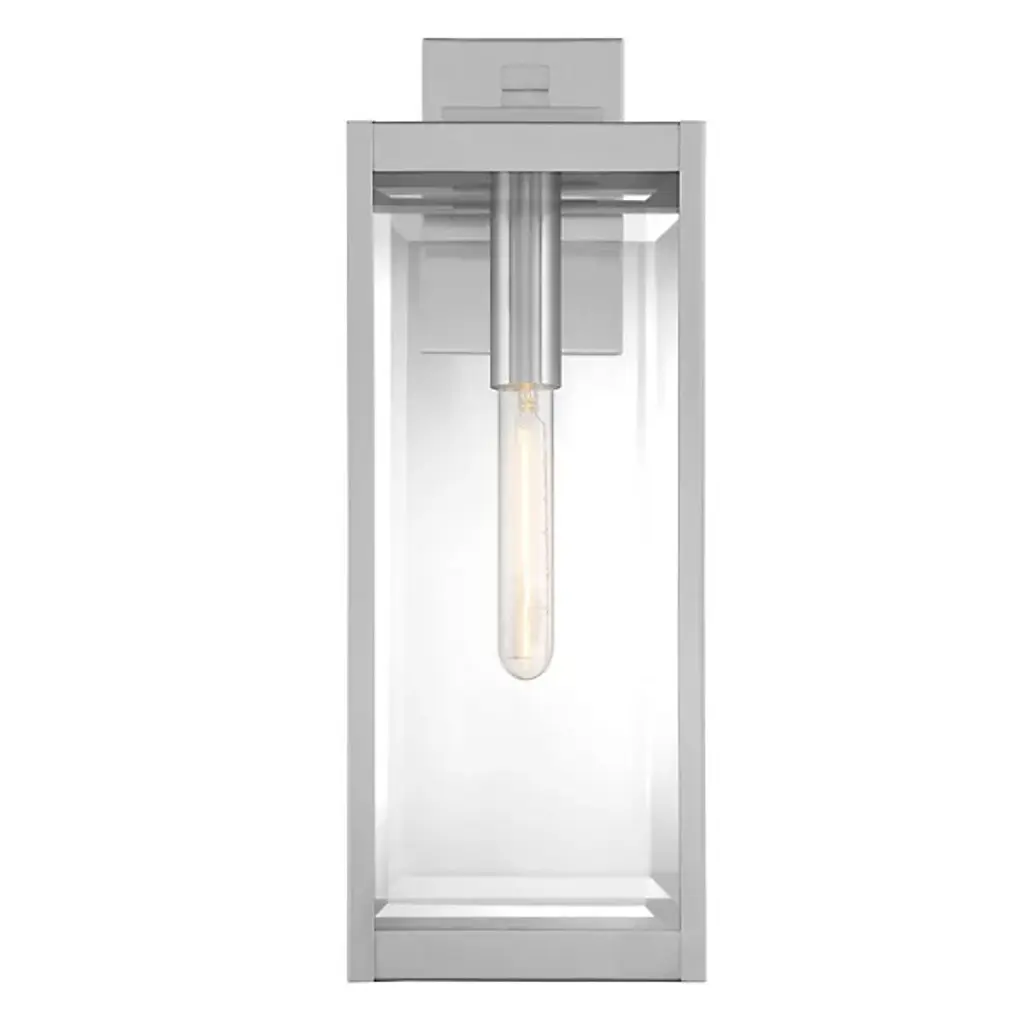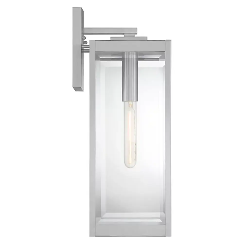 A sleek and modern style that can’t be ignored. The Westover Outdoor Wall Sconce by Quoizel features a clean and simplistic silhouette to complement any modern exterior space. Stainless steel forms its elongated shade and a rectangular backplate, holding clear beveled glass panels on each side. Inside, a cylindrical socket holds a bulb to emit a warm wash of light. Its minimalistic style and smooth framework elevate a space without overpowering surroundings.