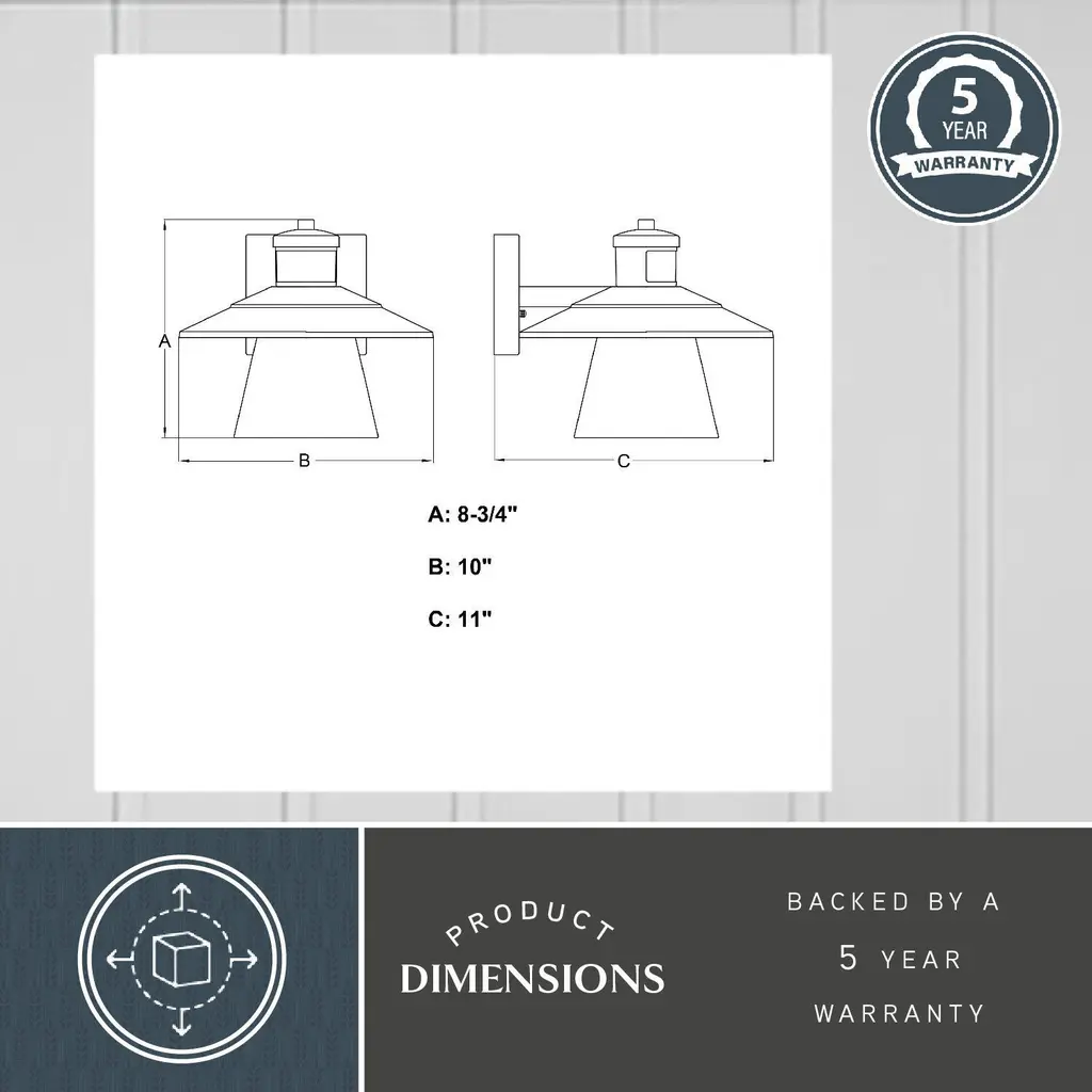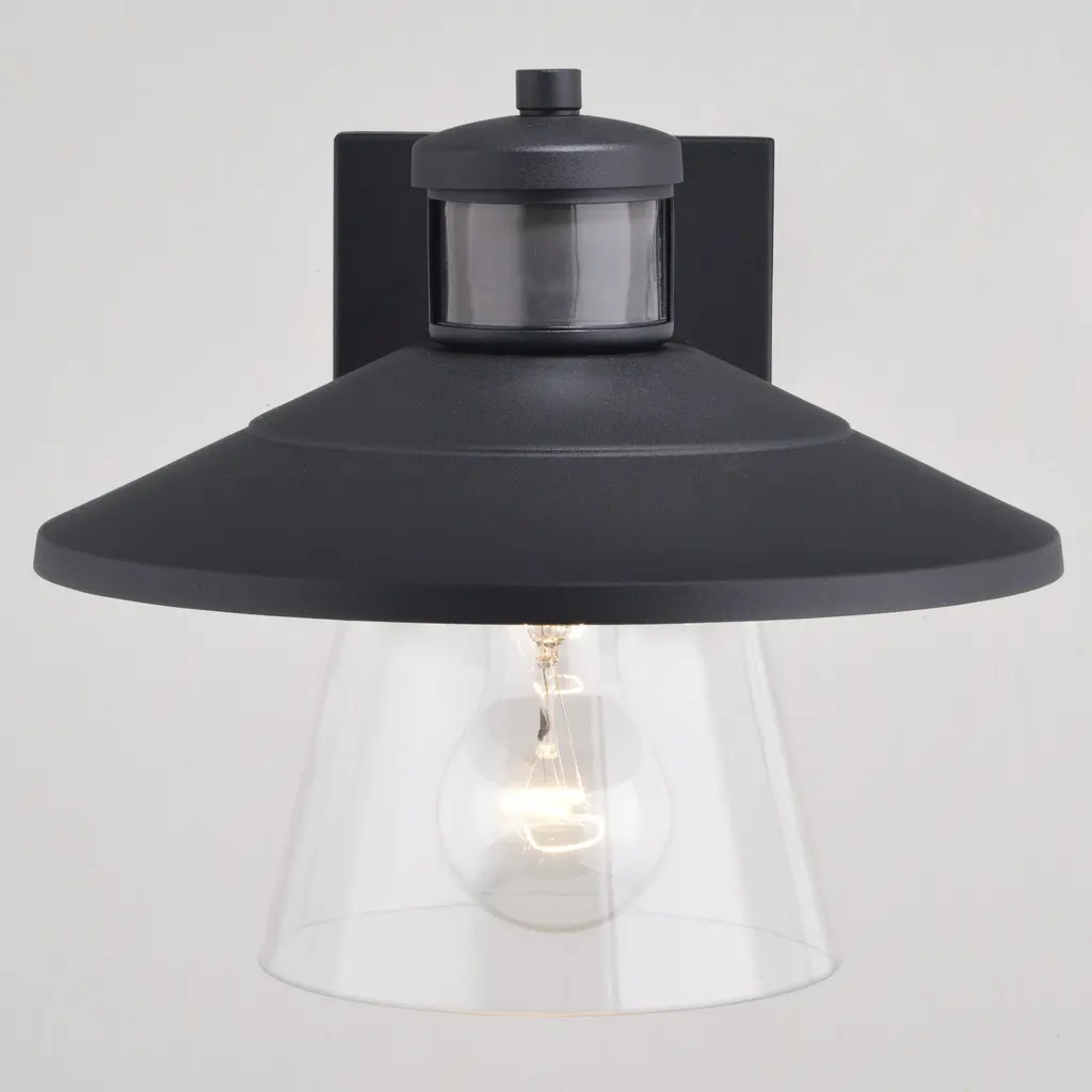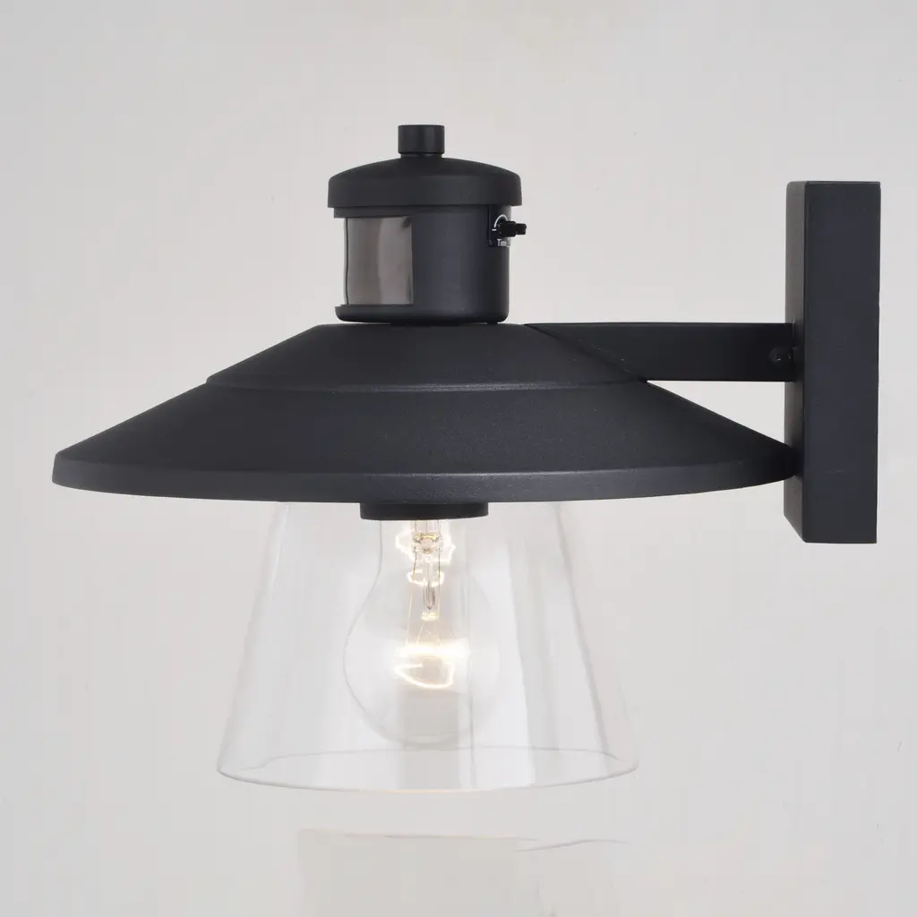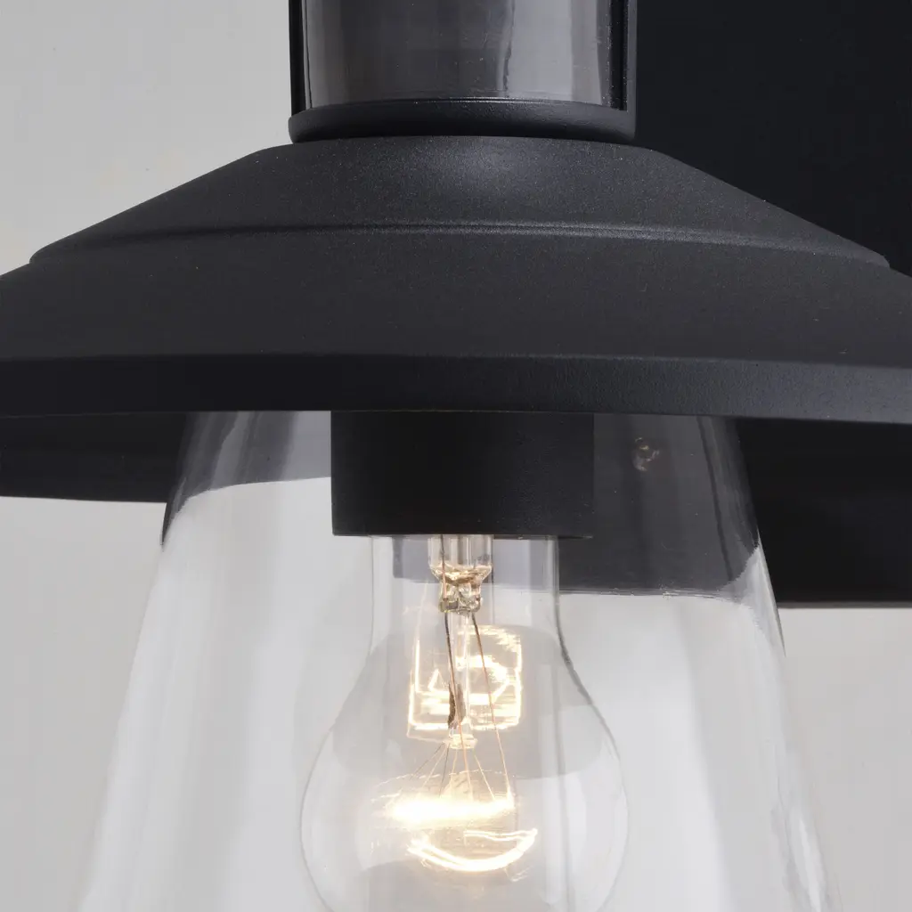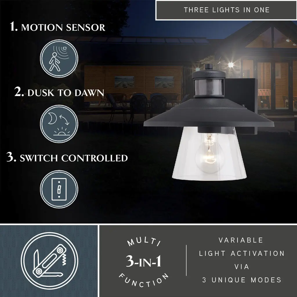 The Westport collection is a great choice for adding a modern coastal touch to your outdoor space at a great value. The textured black finish, angled metal top, and clear glass shade give this wall light a warm and inviting elegance. Dualux outdoor security lighting is designed to fit your lifestyle and enhance the beauty, safety, and usability of your home's exterior areas. Enjoy the comfort and convenience of dusk-to-dawn automatic dimming to provide soft, ambient illumination until dawn. Rest assured knowing that whenever motion is detected, on-demand bright illumination will be triggered to keep your property safe and secure. Standard on/off motion detection or full brightness dusk-to-dawn modes are also available to try using the EZSET controls. This fixture works with most dimmable LED bulb models. You get convenience, security, and efficiency with Dualux outdoor light fixtures.