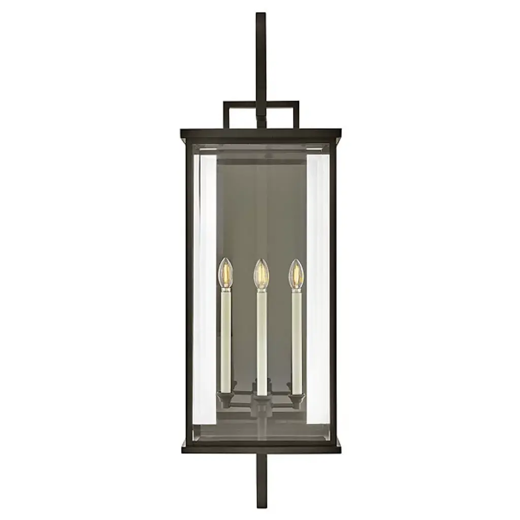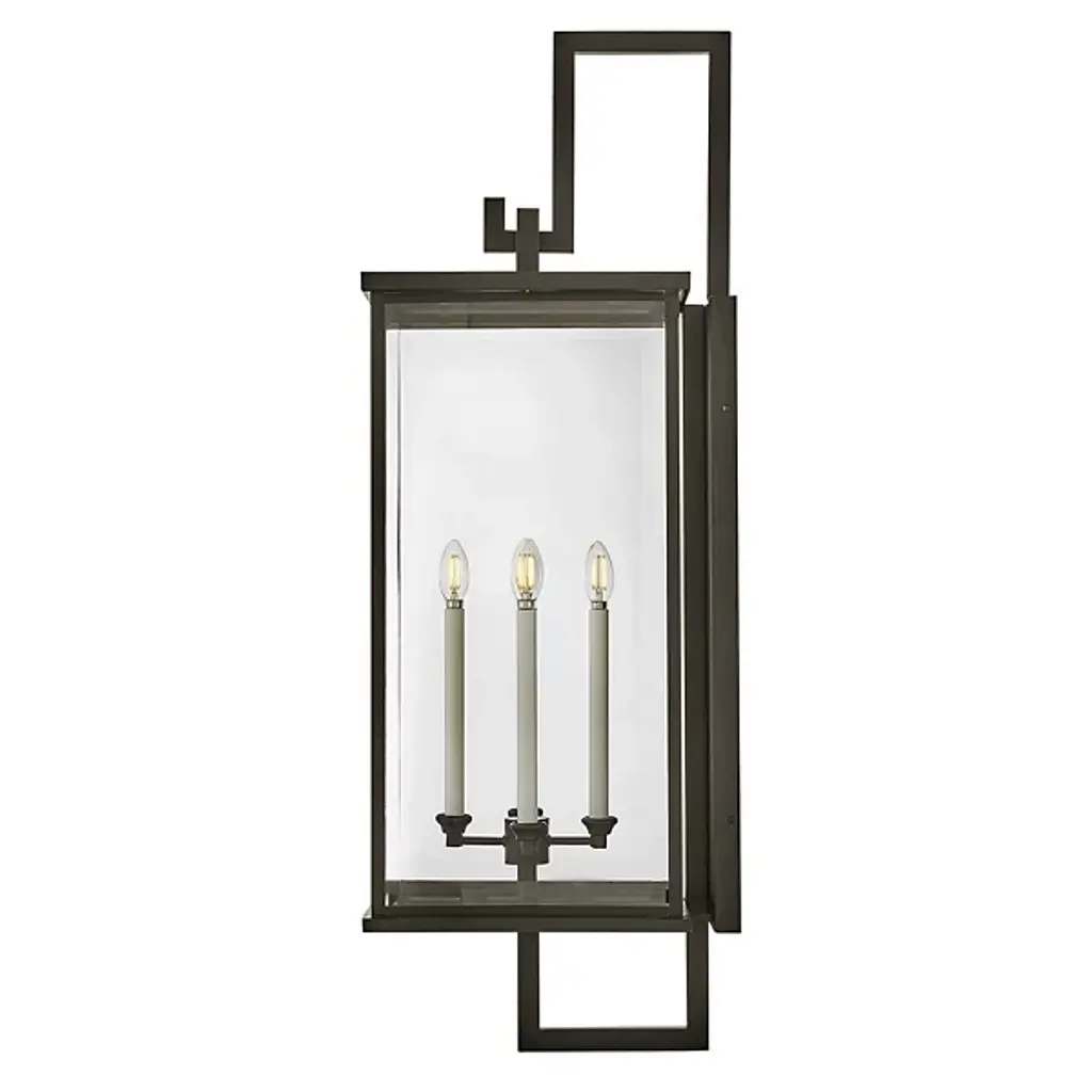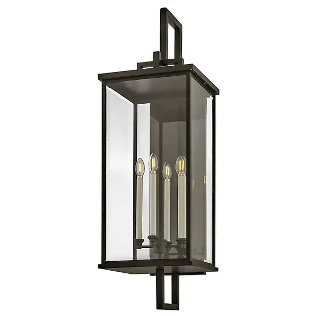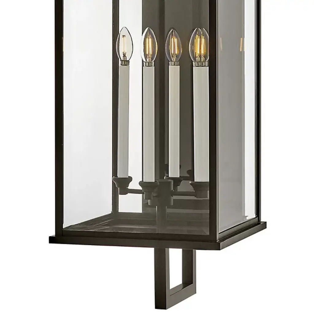 The Weymouth Extra Large Outdoor Wall Sconce from Hinkley balances traditional design language with refreshed proportions and clean lines. The rectangular frame houses symmetrical candle elements that reference historical lanterns while maintaining modern sensibilities. Beveled glass panels refract and scatter light, creating a pleasing glow rather than harsh direct illumination. This aluminum sconce is ideal for entryways, porches, and exterior walls with its thoughtful design and architectural presence that complements various home styles.