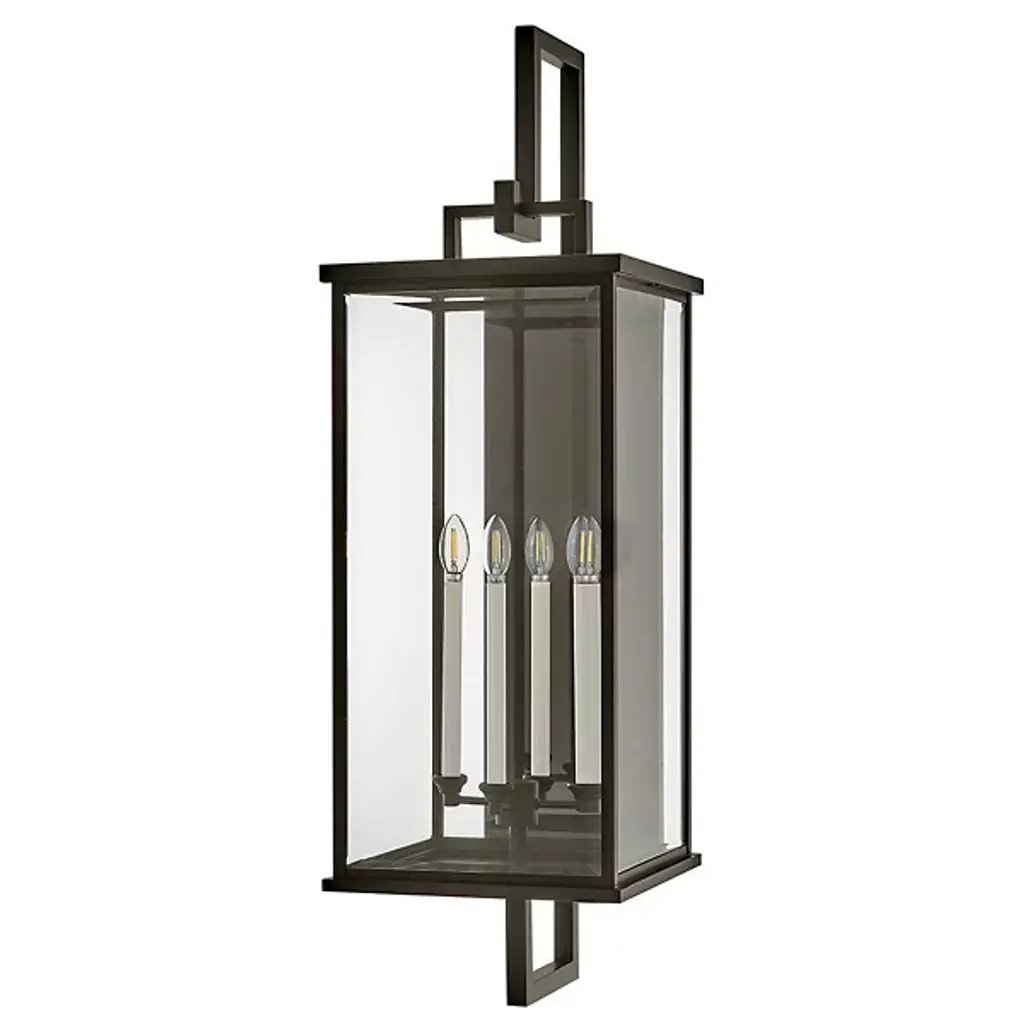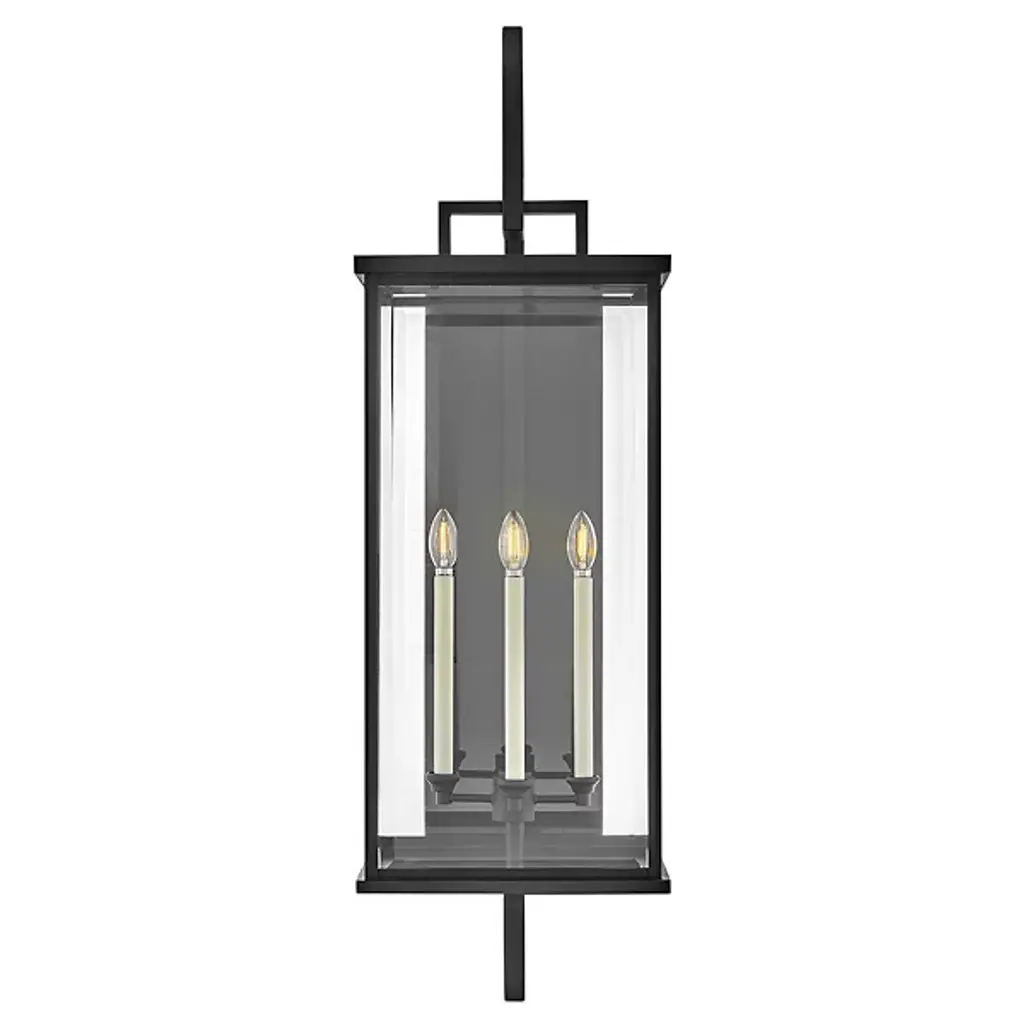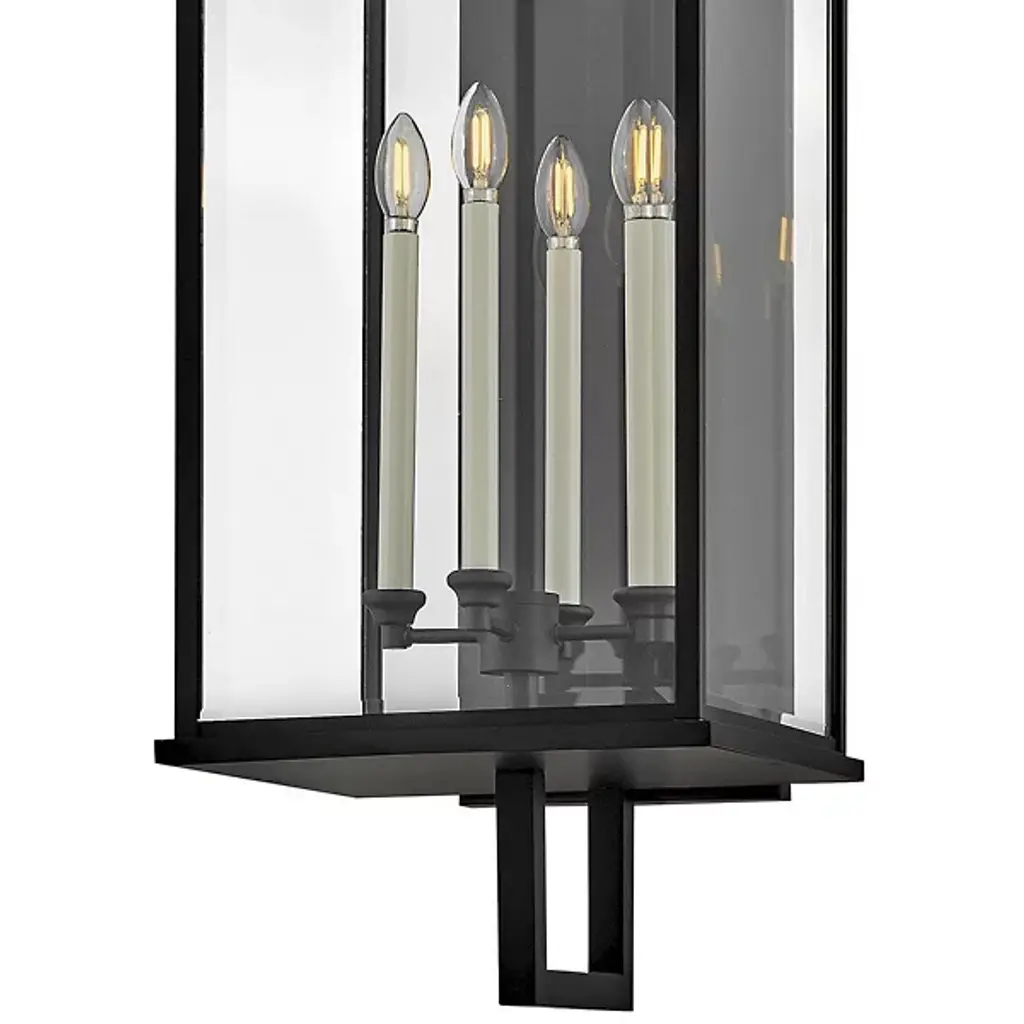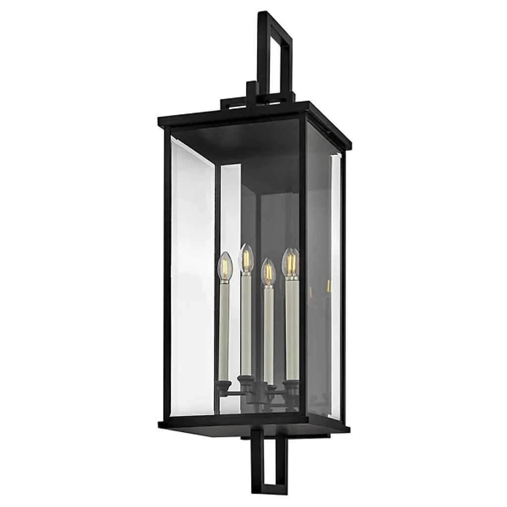 The Weymouth Extra Large Outdoor Wall Sconce from Hinkley balances traditional design language with refreshed proportions and clean lines. The rectangular frame houses symmetrical candle elements that reference historical lanterns while maintaining modern sensibilities. Beveled glass panels refract and scatter light, creating a pleasing glow rather than harsh direct illumination. This aluminum sconce is ideal for entryways, porches, and exterior walls with its thoughtful design and architectural presence that complements various home styles.
