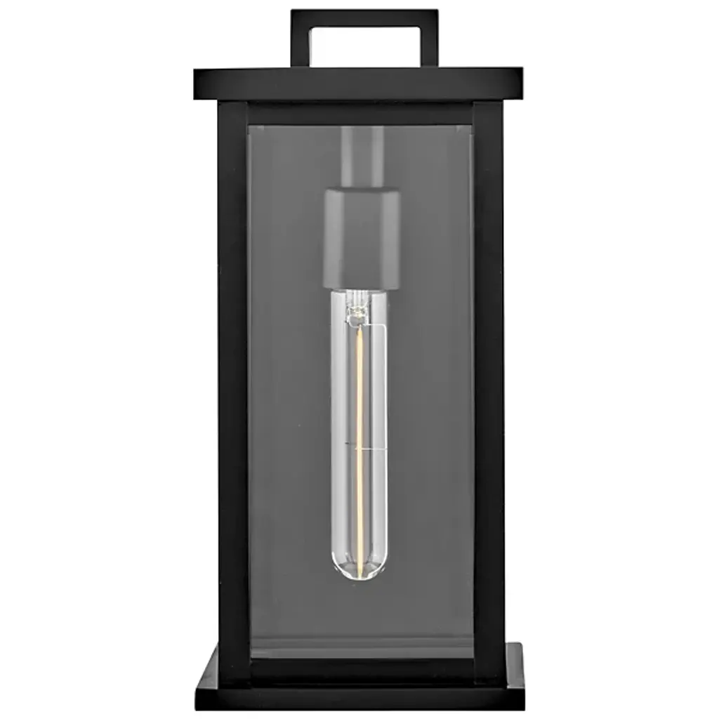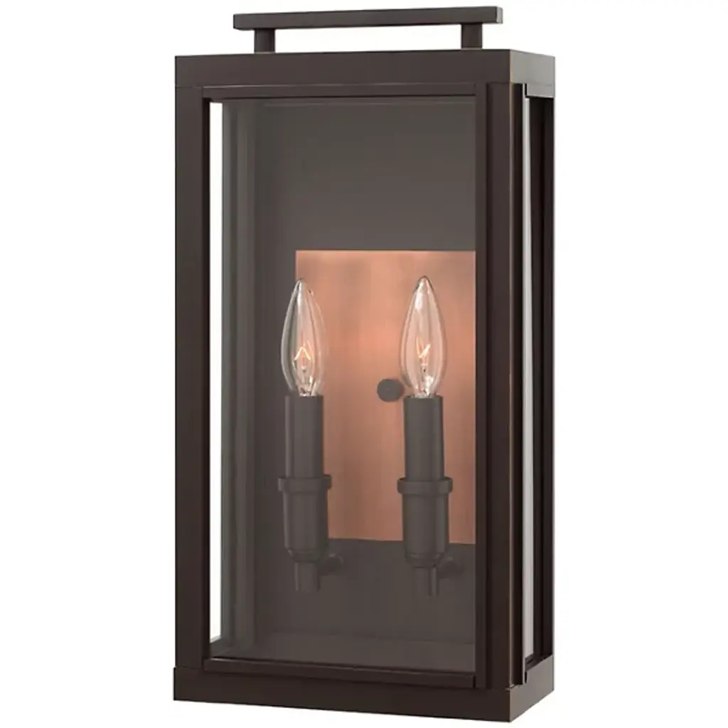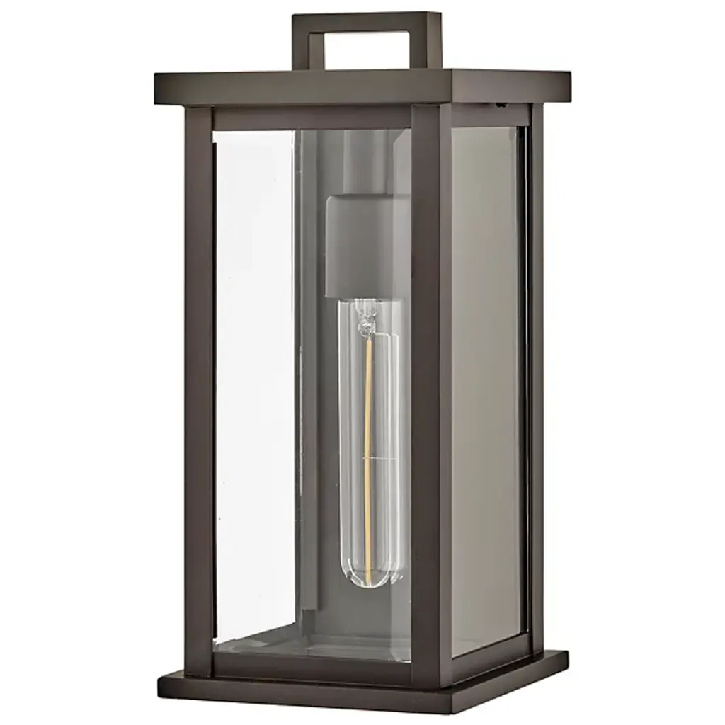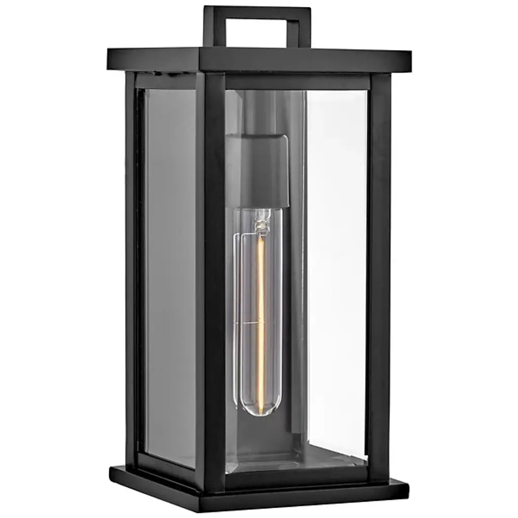 Elevate your home’s exteriors with the clean style of the Weymouth Outdoor Wall Sconce from Hinkley Lighting. This fixture takes the concept of a traditional lantern lamp and updates it with sharp lines and an angular silhouette to modernize a home’s façade. A slender, rectangular frame supports clear beveled glass panels enclosing its candelabra lamping. One's bulbs emit soothing light that brightens the area and complements the piece’s bold aesthetic.