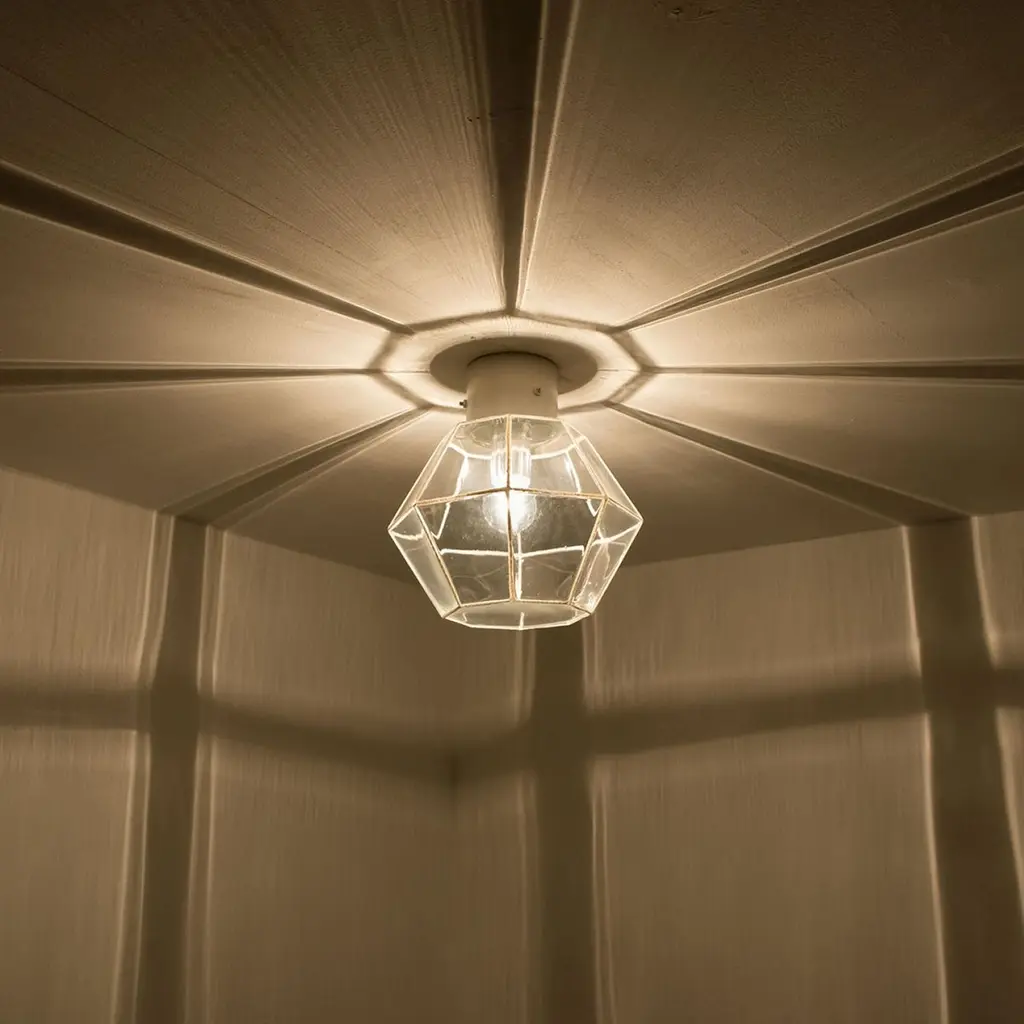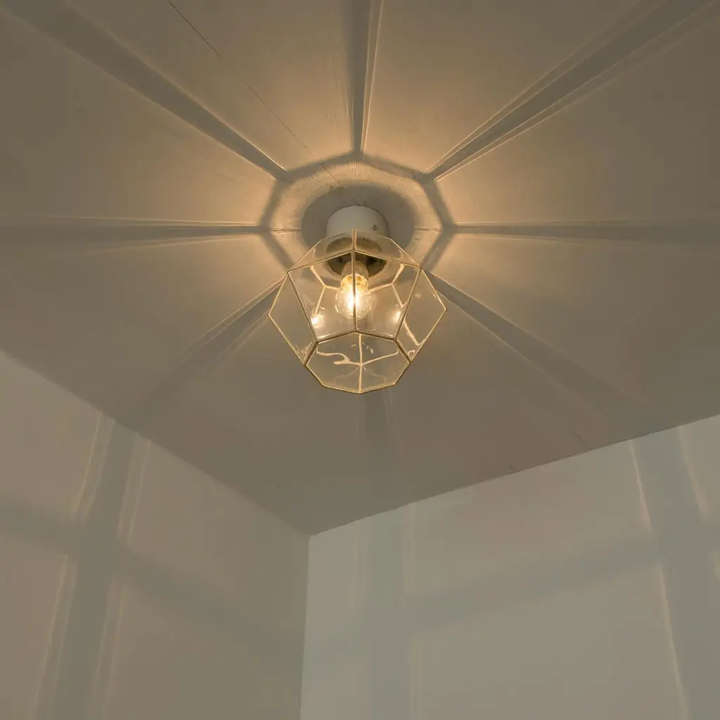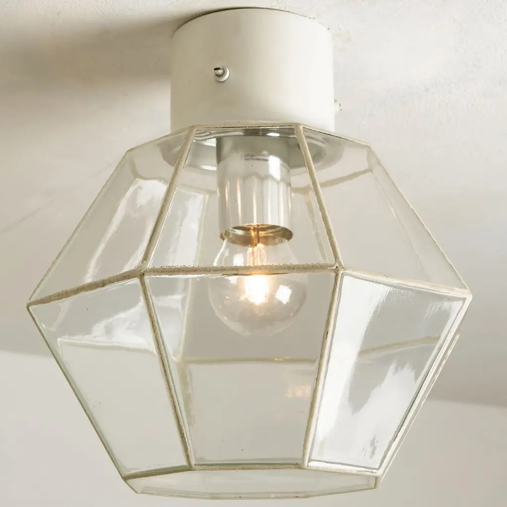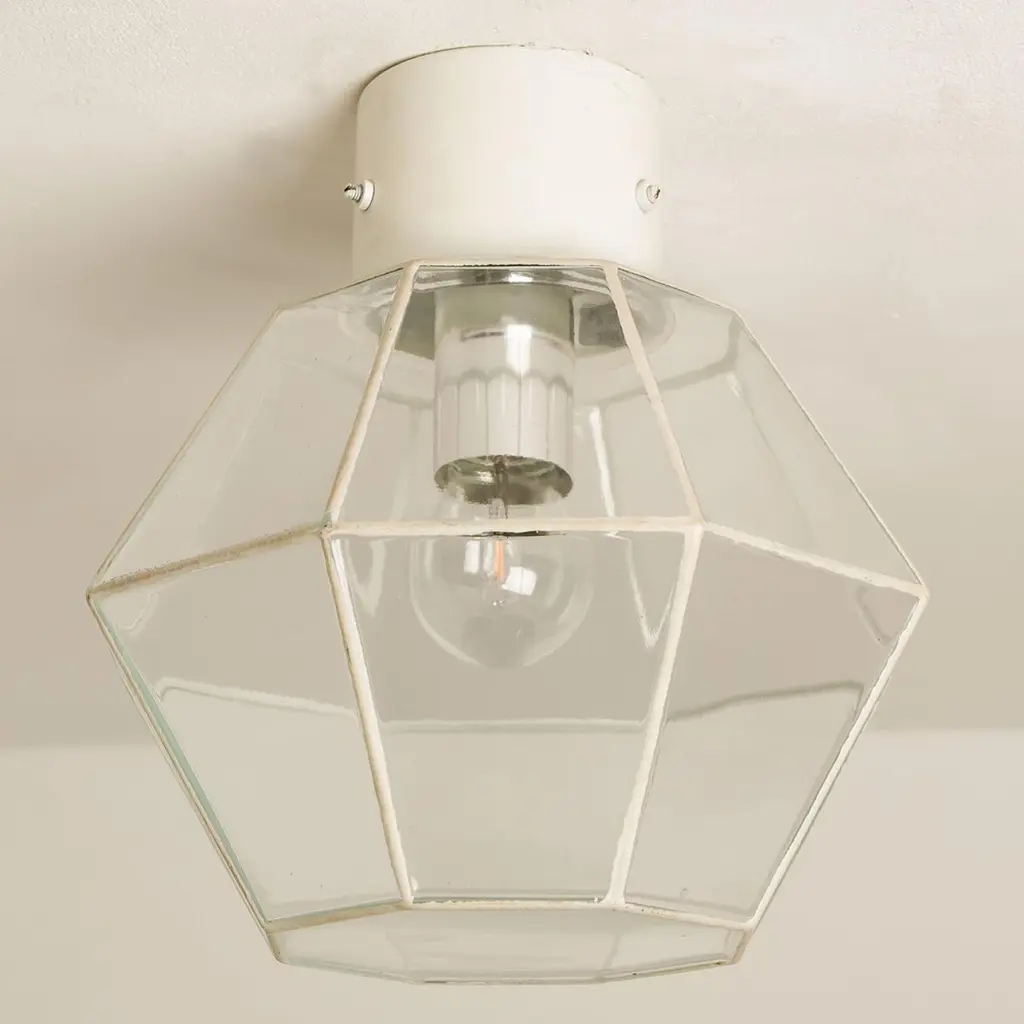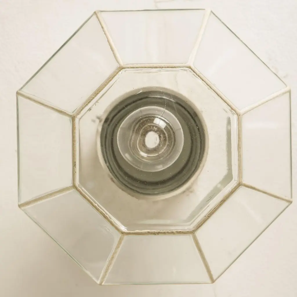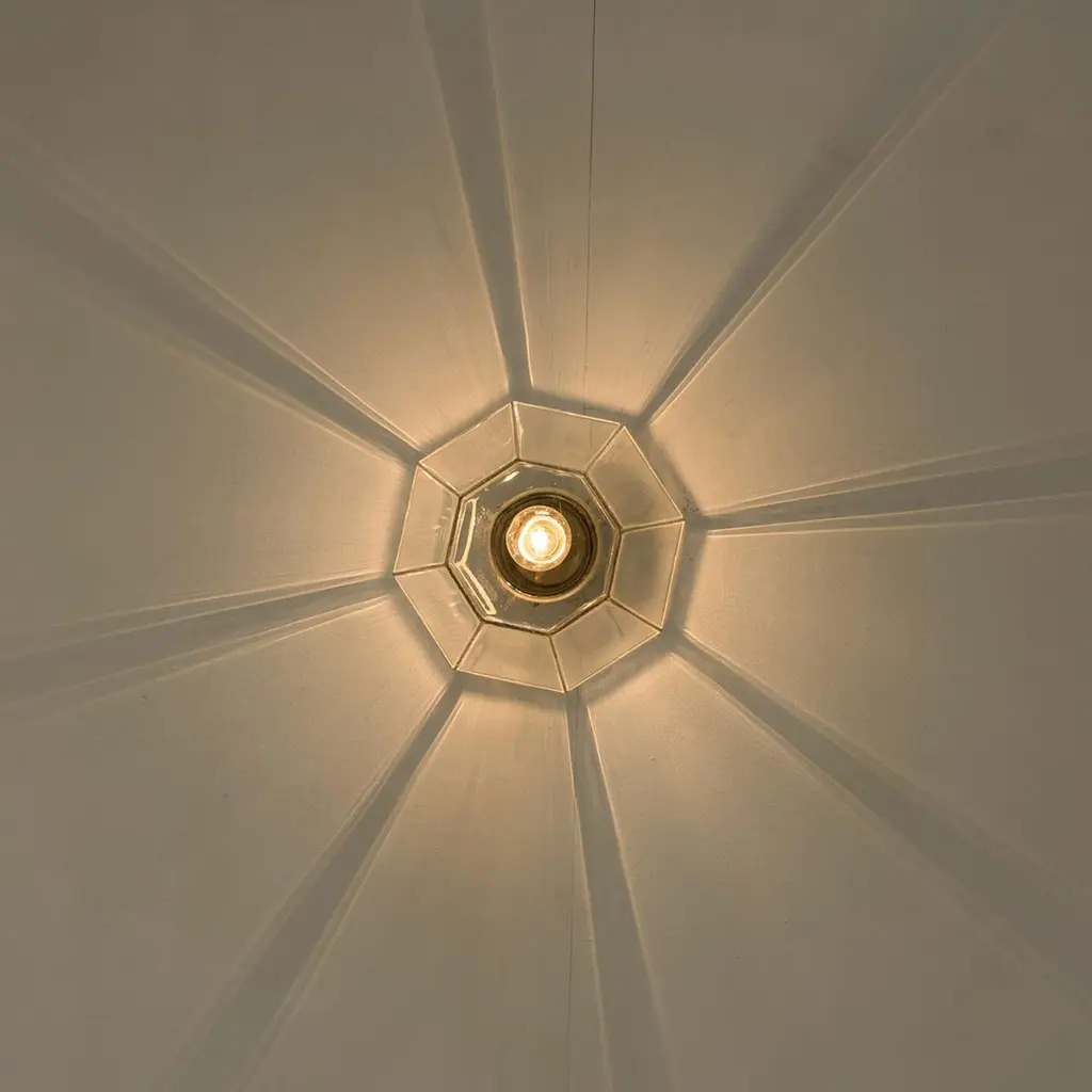 A beautiful set of octagonal glass light flush mounts or wall lights, manufactured by Glasshütte Limburg in Germany during the 1970s. Beautiful craftsmanship. Illuminates beautifully.Please note the price is for one piece. Two pieces available.Measurements: diameter 10.2 "26 cm.In very good condition, cleaned and well wired. Each lamp, features one E27 socket.