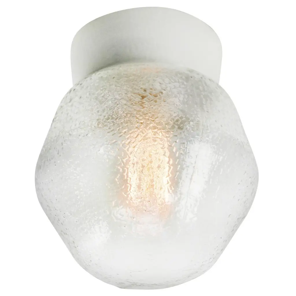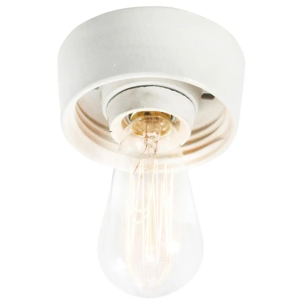 Industrial ceiling / wall lamp.White porcelain, frosted glass.2 conductors, no ground.Diameter base 12 cm / 4.72 InchesWeight: 1.40 kg / 3.1 lbPriced per individual item. All lamps have been made suitable by international standards for incandescent light bulbs, energy-efficient and LED bulbs. The new wiring is CE certified or UL listed. 100% safe. They can be set in operation immediately. Contact us for shipping prices for larger quantities. Excluding light bulb.
