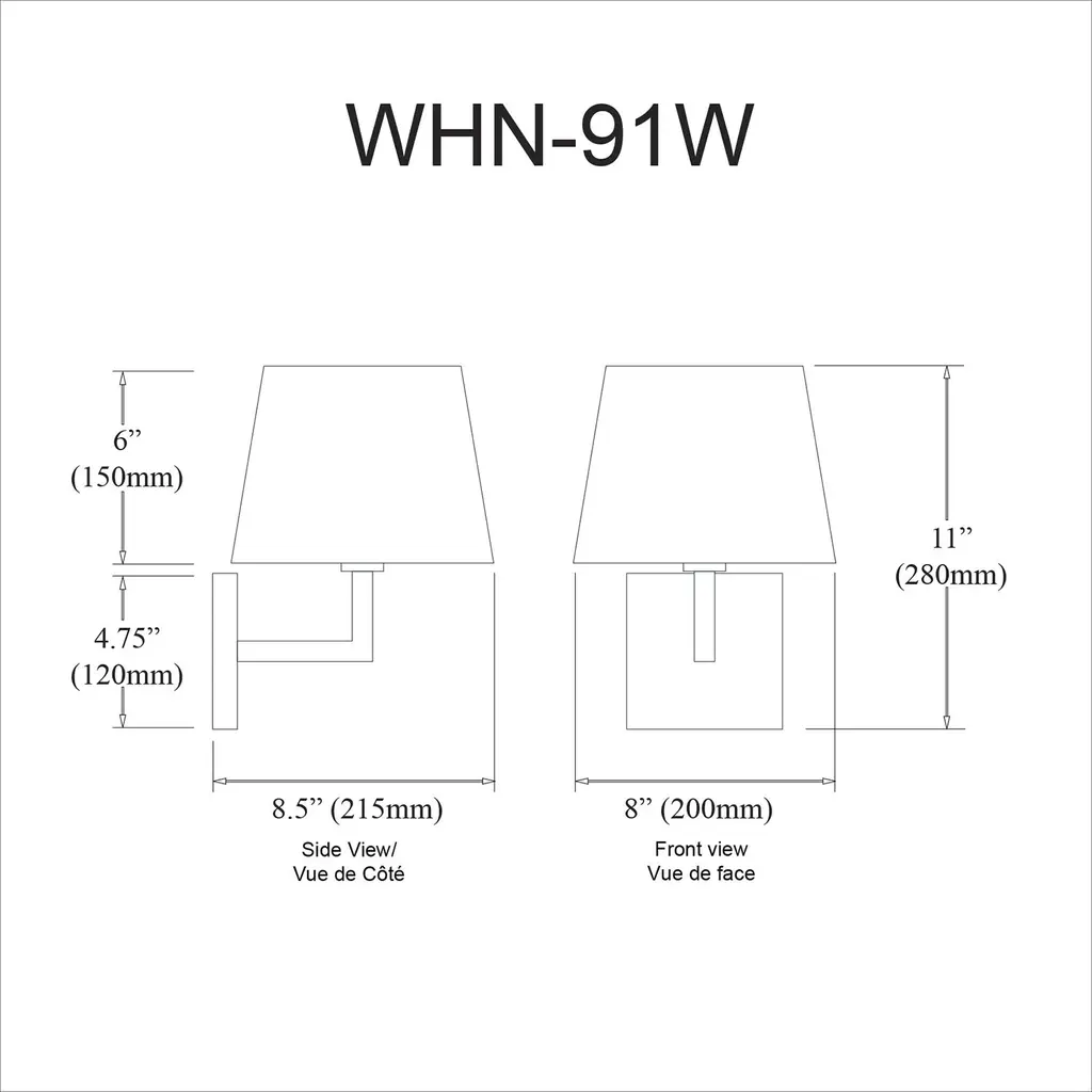 A traditional look gets a modern edge in the Whitney family of lighting. With its classic profile and convenient format, Whitney lighting can work in virtually any size room or space. The square metal base holds an arm, angled upwards to hold a fabric shade. The tapered drum shape and clean lines of the frame, give it a distinctly modern allure. Whitney lighting is stylish, with a discrete silhouette that will enhance a foyer, bedroom or powder room.