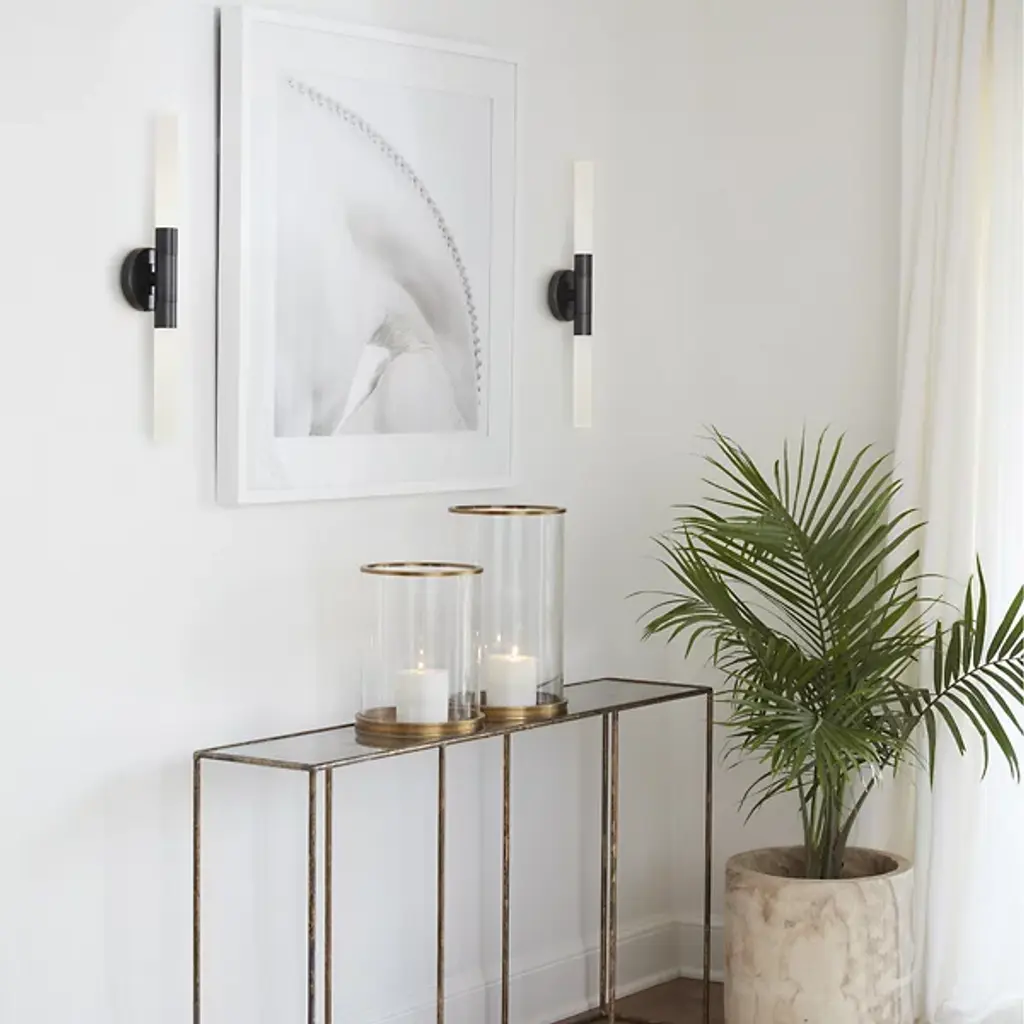 Give your wall a streamlined appearance with the Wick Hilo Wall Sconce by Regina Andrew. A circular steel backplate secures to your wall, allowing a slender encasement to hang in a vertical orientation with ease. Brilliant halogen light dispenses throughout your space to readily illuminate your contemporary entrance or hallway. With a fixed lighting arrangement, your highly utilized living areas will routinely receive ample amounts of light. Your guests will thank you by saying “mahalo” in the traditional Hawaiian style for helping them find their way with ease.