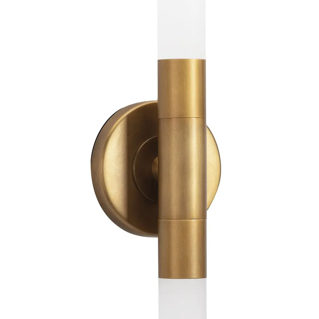 The lustrous finish accentuates the modern glamour of this sleek sconce, which can be mounted horizontally or vertically. The frosted acrylic bulb covers on each end ensure a diffused, flattering glow.