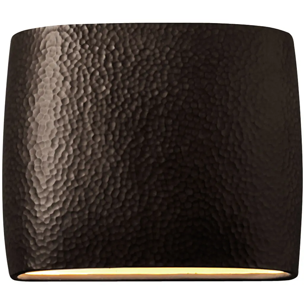 Wide Oval Wall Outdoor Sconce, Closed Top, Large, Dedicated Led, Hammered Iron