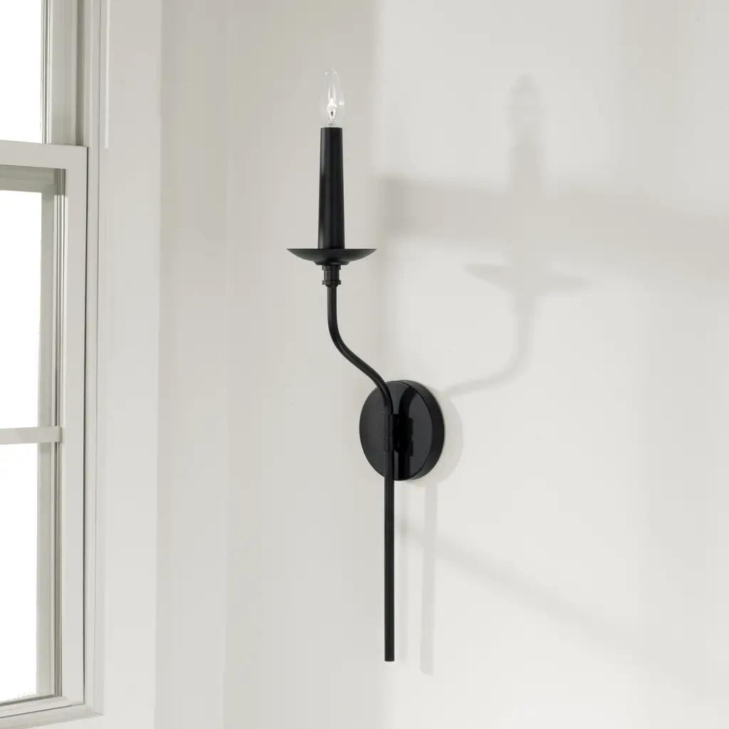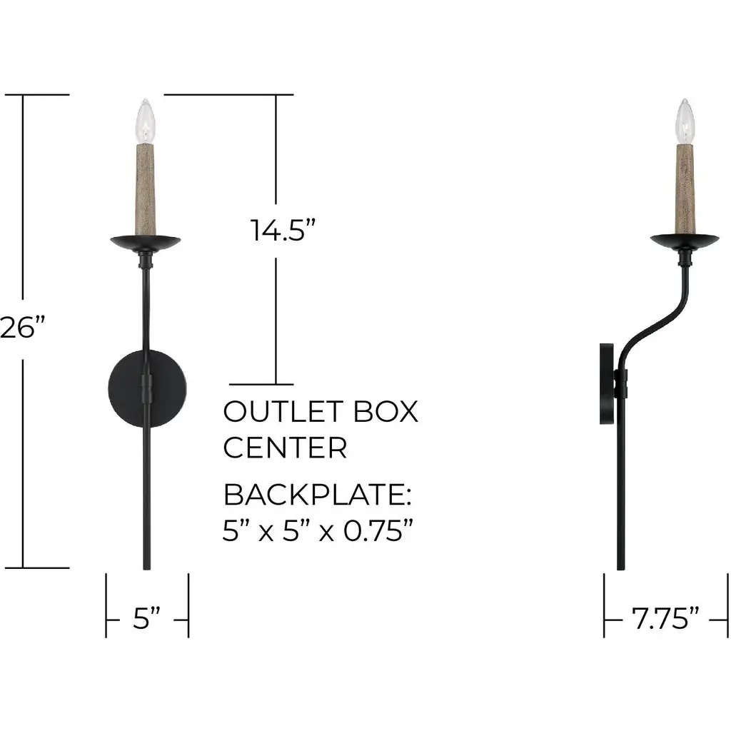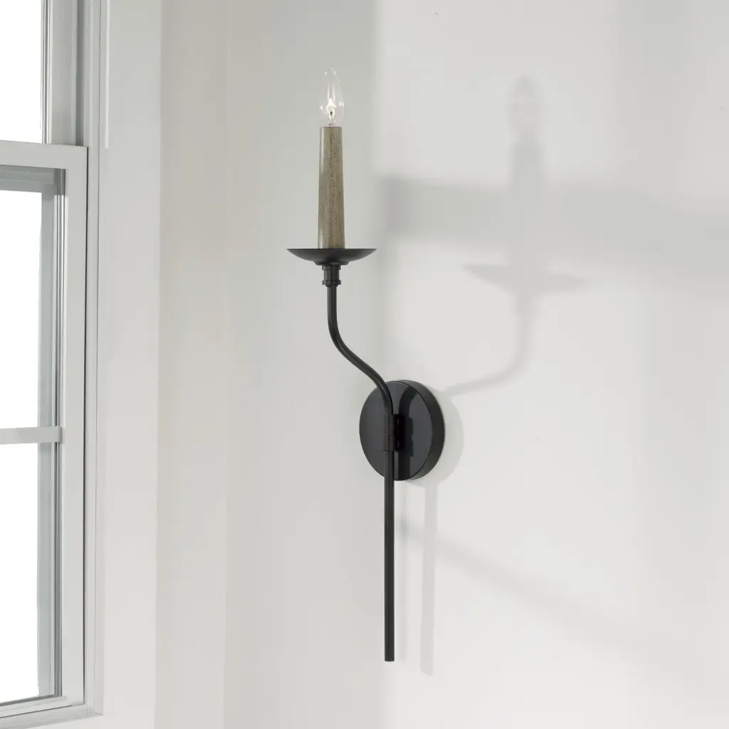 Pairing the Matte Black finish with designer details, the Wilder Sconce brings classic elegance with an (optional) element of nature. Available in Faux Wood and Matte Black, the interchangeable candle sleeve creates a custom-made feel for high design that suits any style.