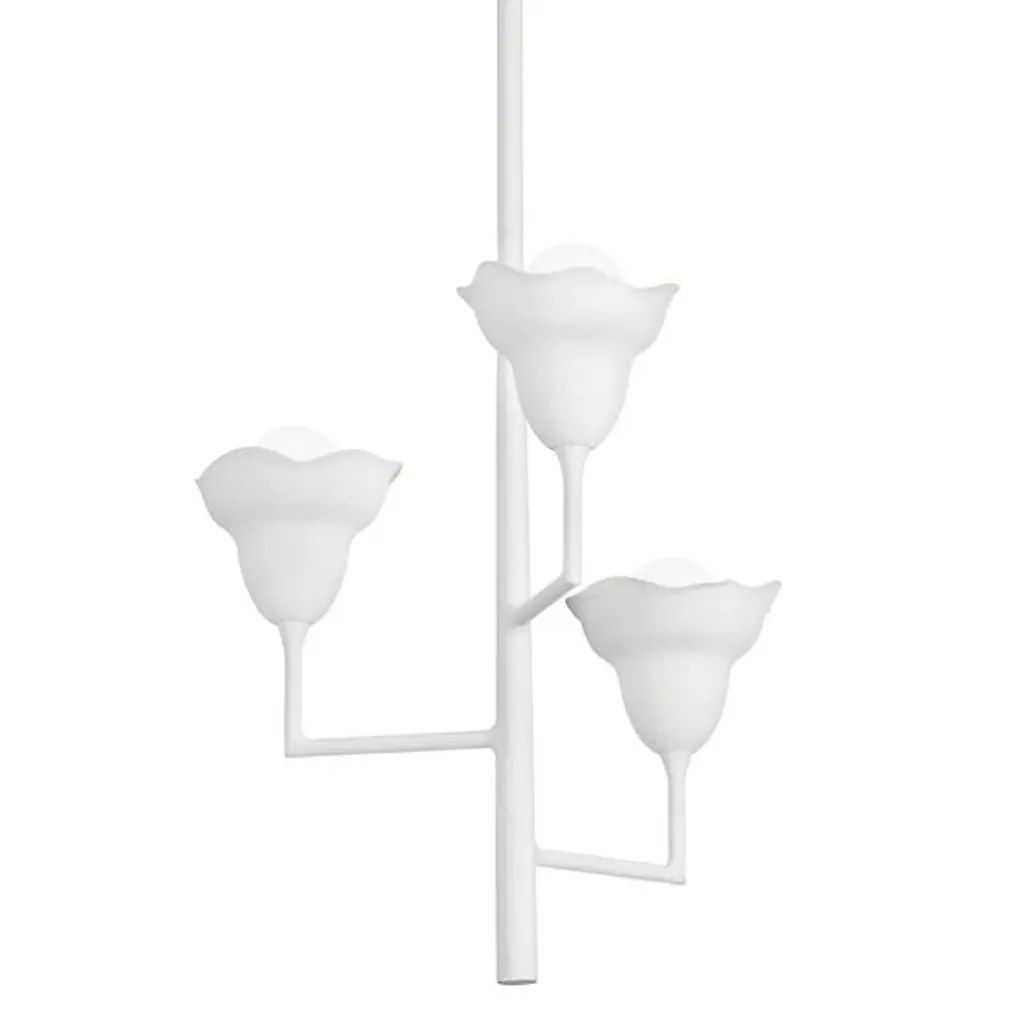 When you first see it aglow with its fine intricacies, it may not show, but the Wildflower collection started its path to existence thanks to Mary V. Walcott’s Oconee-Bells discovered in the Smithsonian Libraries and Archives Special Collections. Taking center stage is a touch of Danish modern on top of midcentury. Wildflower combines delicate, handmade ice glass flower petals, with equally delicate wispy hand-forged and recycled steel tubing and metal work. Available in gold or black.