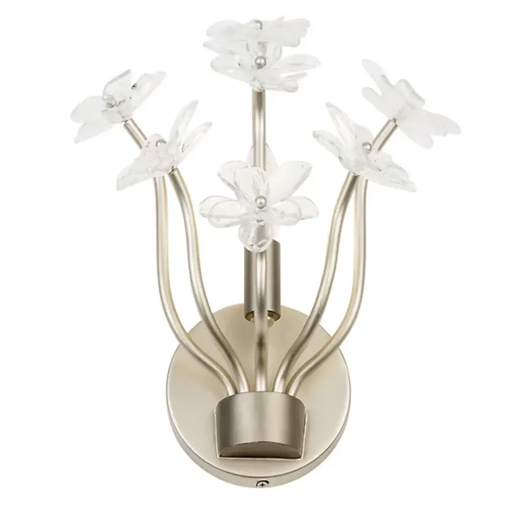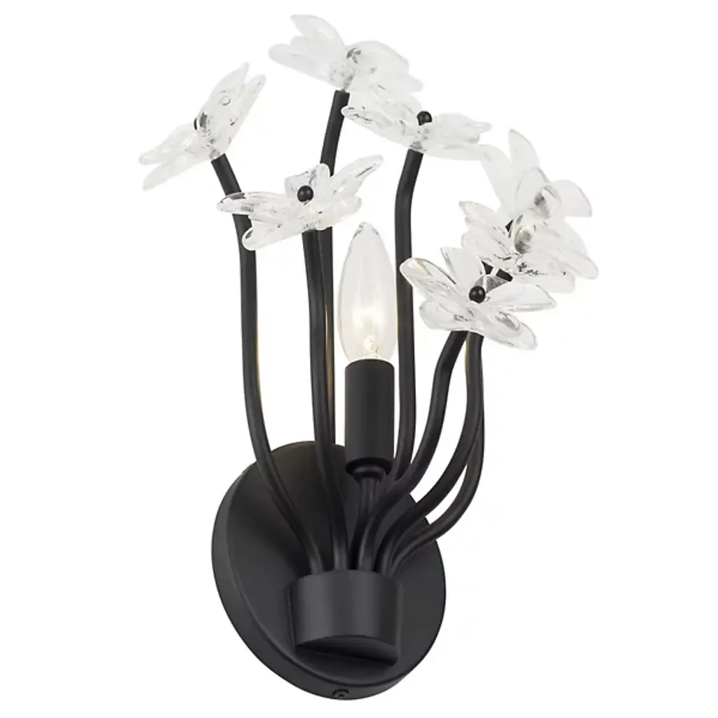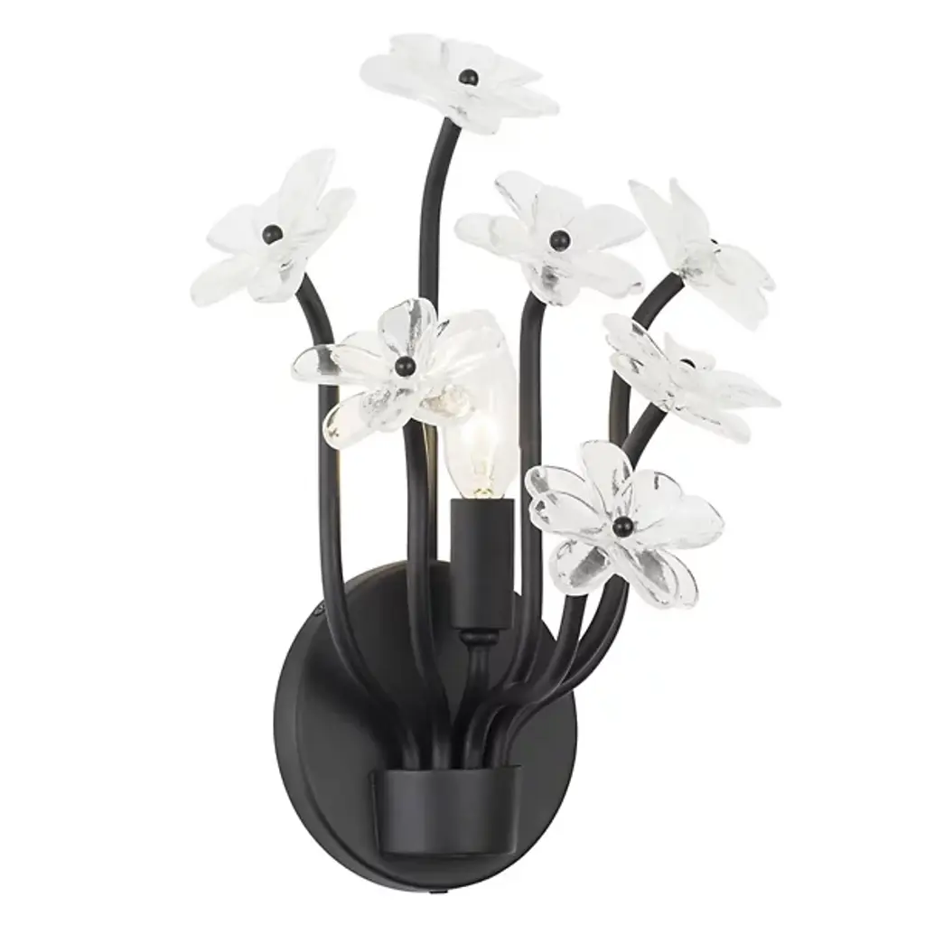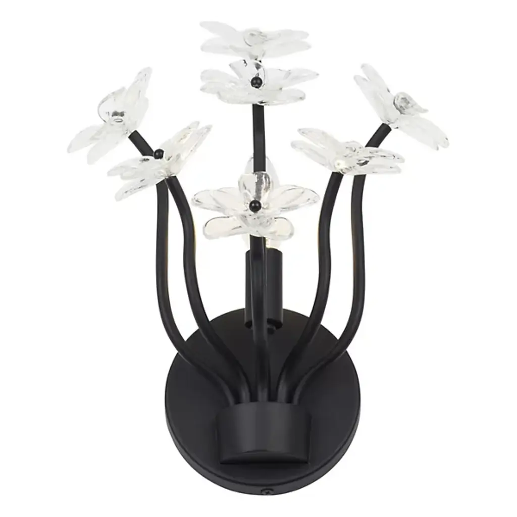 Bring the beauty of the outdoors into your home with Wildflower Wall Sconce from Varaluz. It is designed by Ron Henderson who crafts this piece to resemble a beautiful floral arrangement. Fine steel features sinuous contours that form stems crowned by exquisite flowers composed of handmade glass. The blossoms are elegantly illuminated by an LED that brings a vibrant glow to your halls and entryways. You can customize the brightness level with a separately sold ELV dimmer.