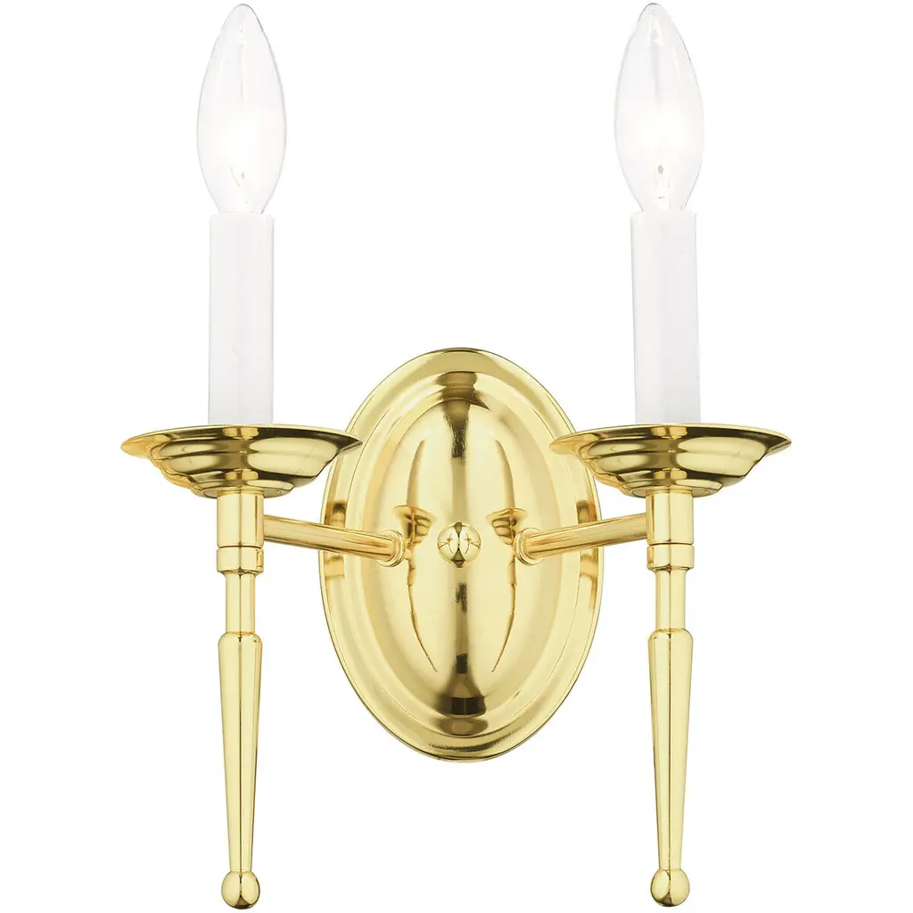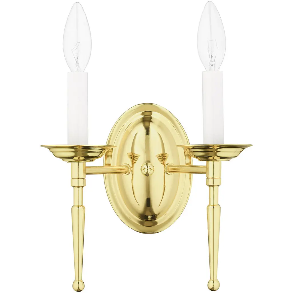 Williamsburgh 2 Light 10 Inch Polished Brass Wall Sconce Wall Light