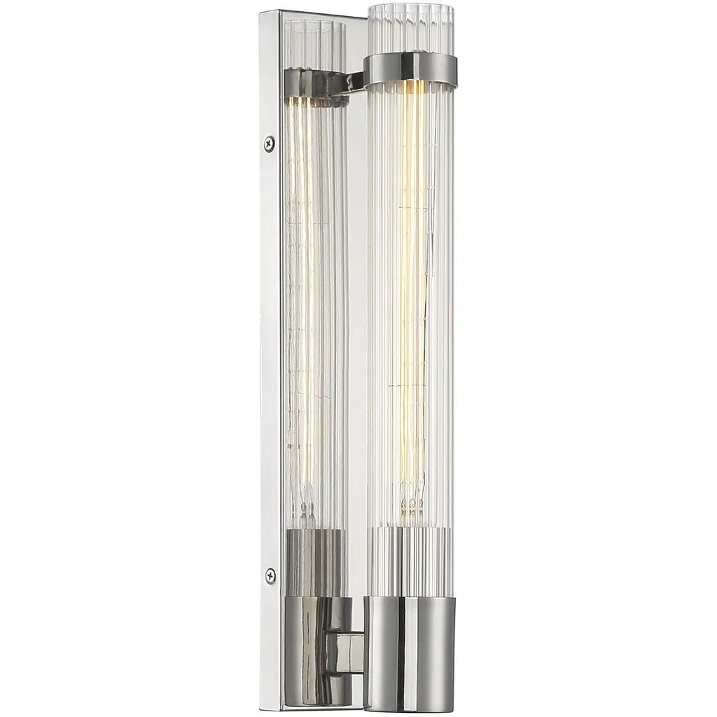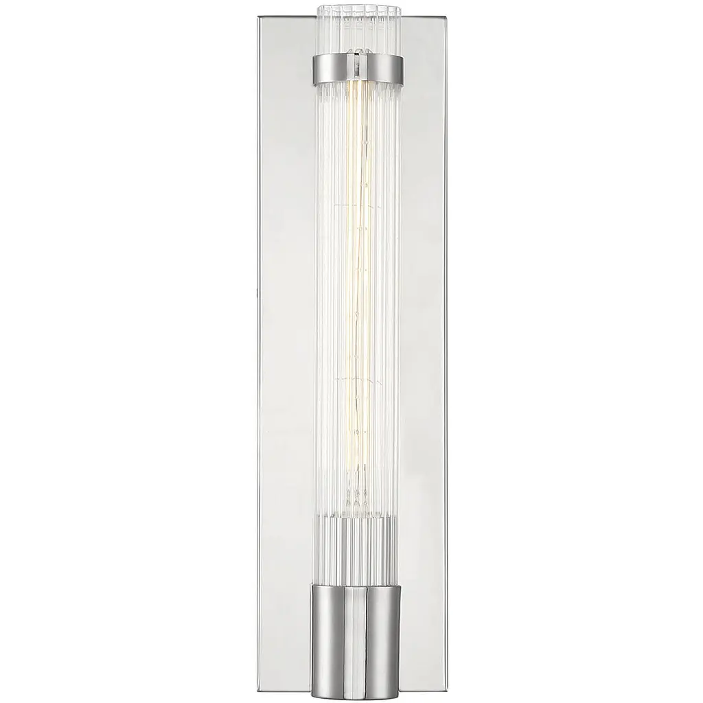 Stately elegance in a clean silhouette with reeded glass defines the Willmar collection of wall sconces. Measuring 16" high x 4.5" wide x 3.75" extension, this one-light sconce in a polished nickel finish provides ample illumination from one bulb, not included