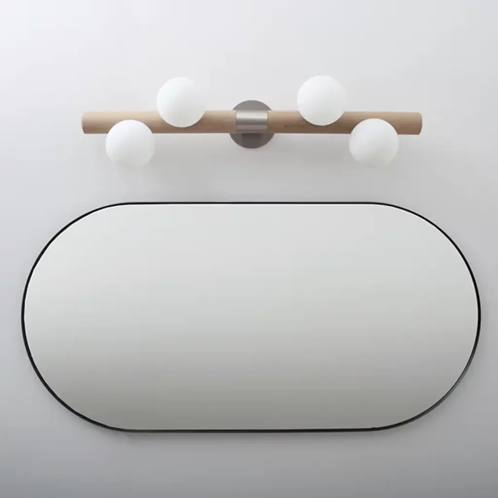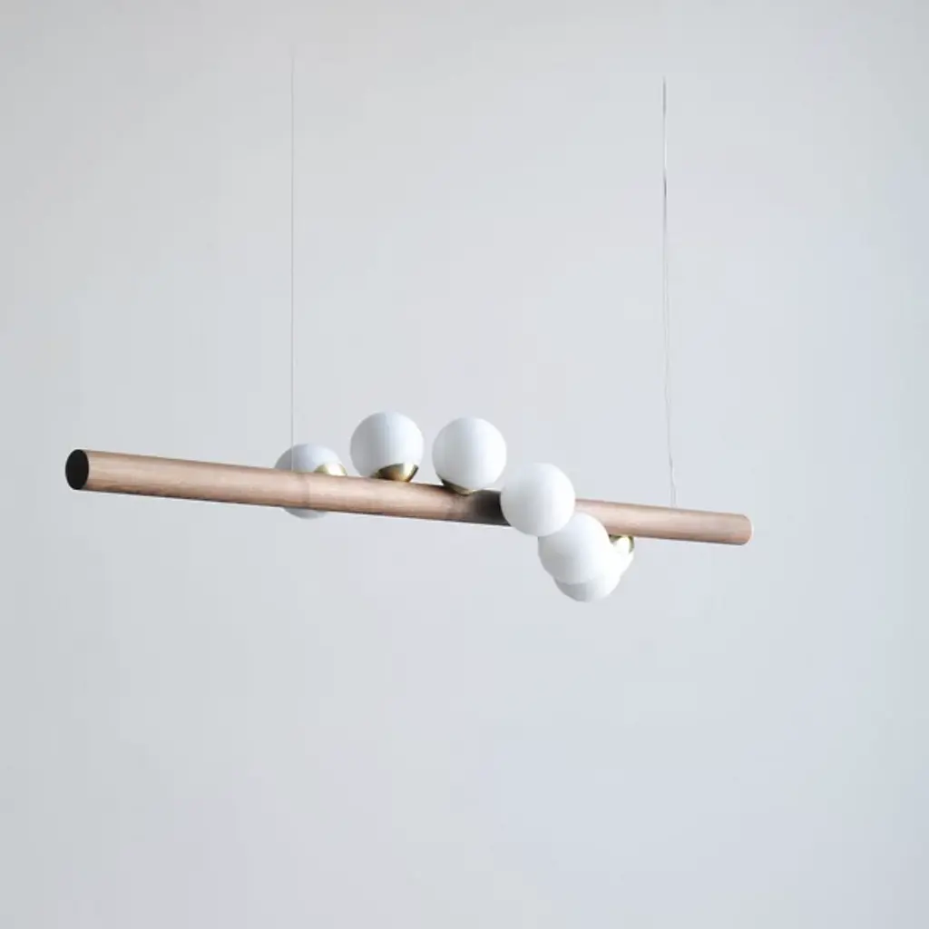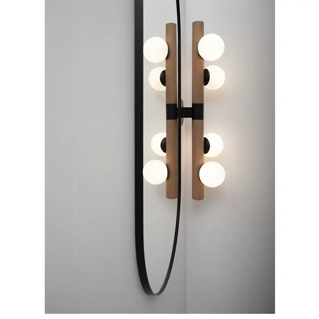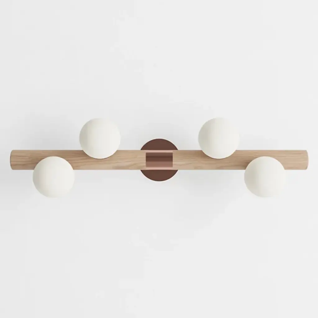 Bring a contemporary aesthetic to your decorative arrangement with the Willow Wall Sconce by hollis+morris. Your wall sconce is the realized vision of designer Mischa Couvrette. Couvrette’s focus on environmental sciences informs his material selections in this decorative piece. Wood has been finely shaped into a cylindrical form to provide support for a collection of globes. These globes, composed of frosted glass, are brightly lit by an LED. The eye is drawn to the steel casing that forms a lovely band at the sconce’s center.