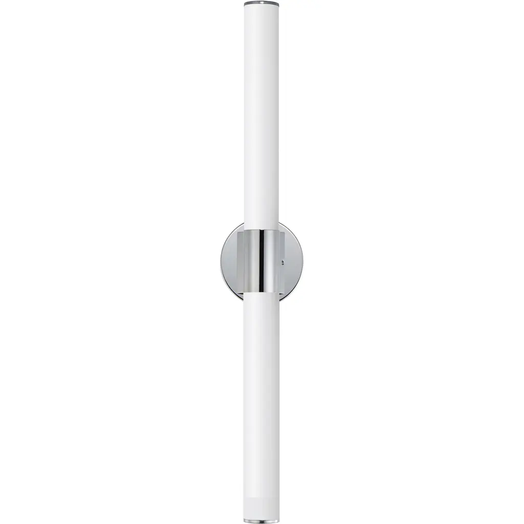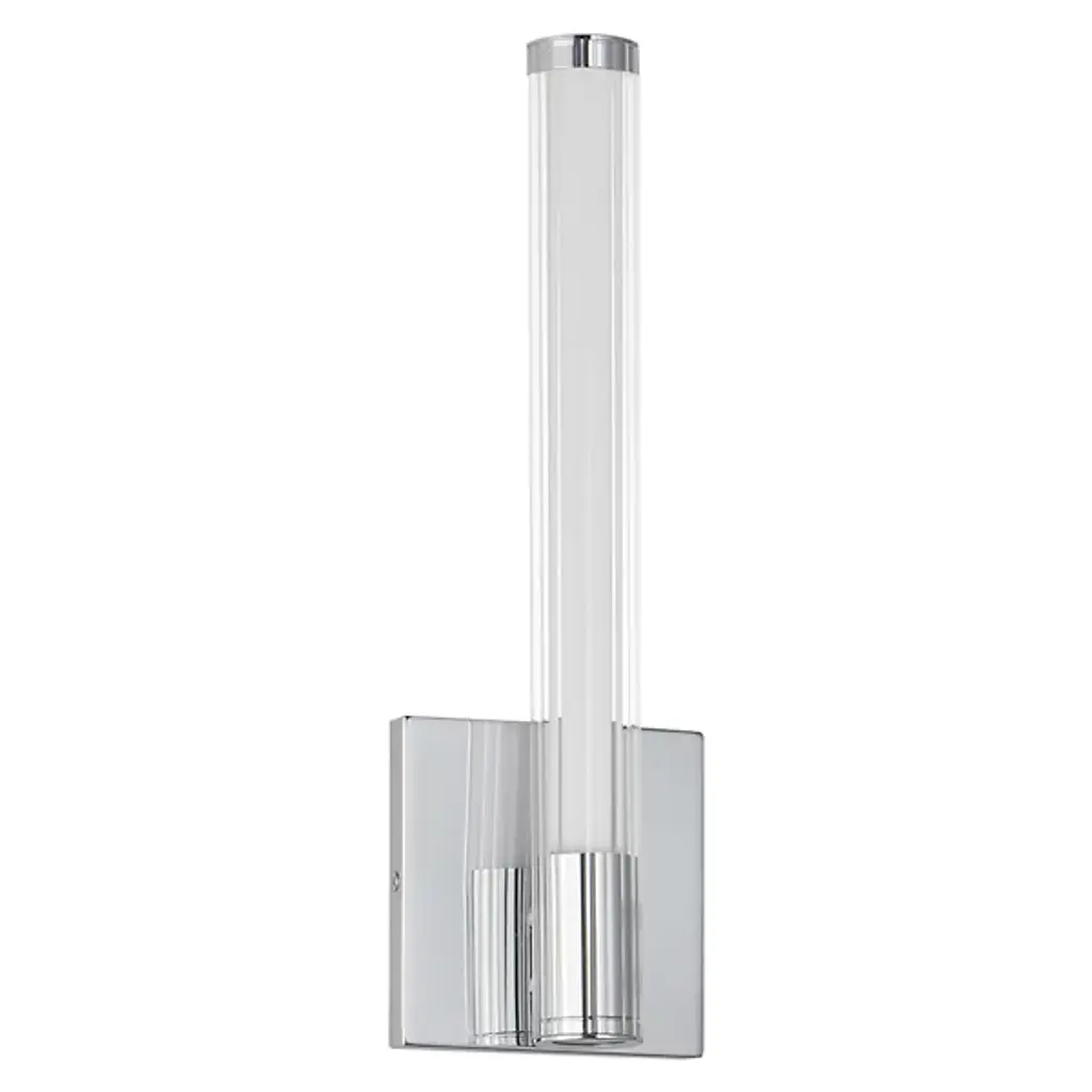 Inspired by traditional wall sconces, Dainolite presents the Wilson LED Wall Sconce. It adds smooth modern lines and efficiency with a bold pop of style. The design features an integrated LED light, as these eco-friendly fixtures produce light at up to 90 percent better efficiency than incandescent lighting. The metal frame contrasts a square wall-mounted base with a vertical housing while a frosted acrylic diffuser softens the glow of light from above.