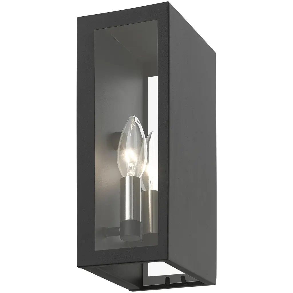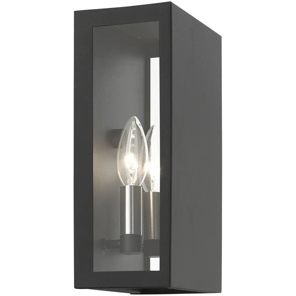 2 Light Textured Black with Brushed Nickel Candles Outdoor ADA Medium Sconce