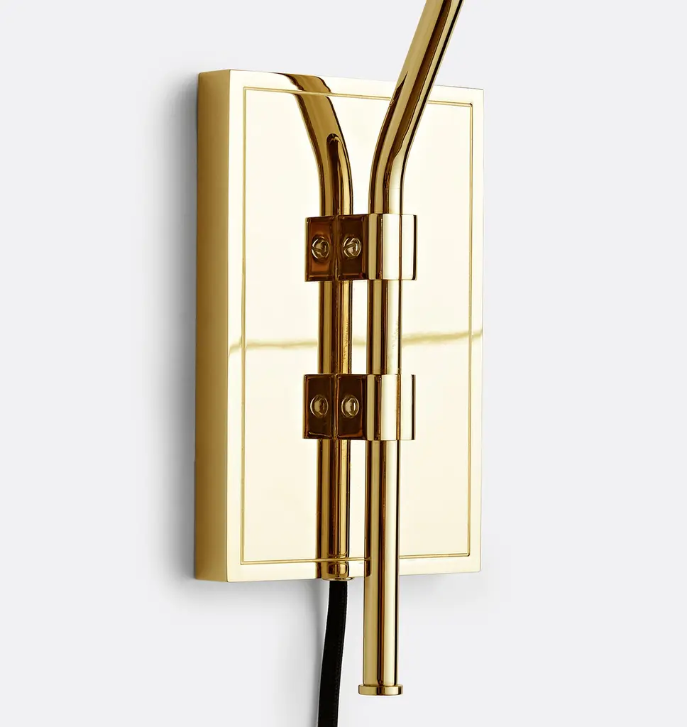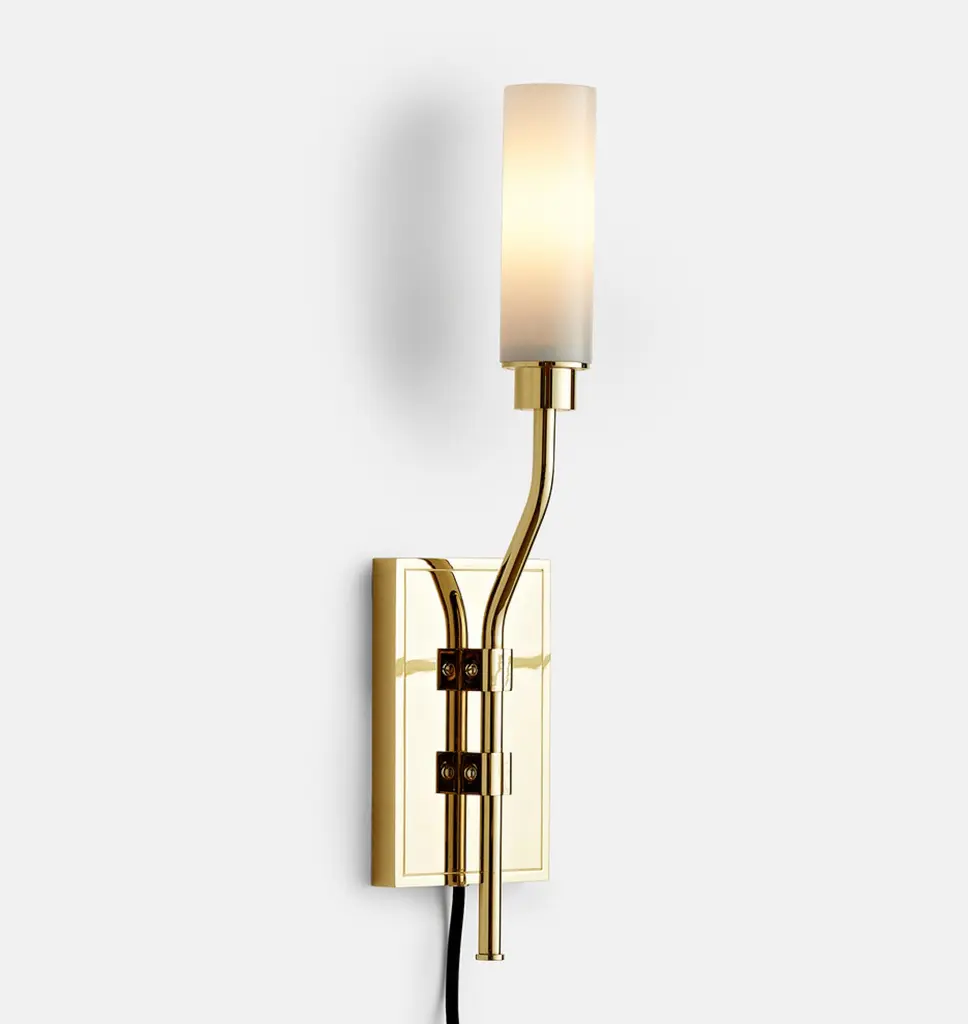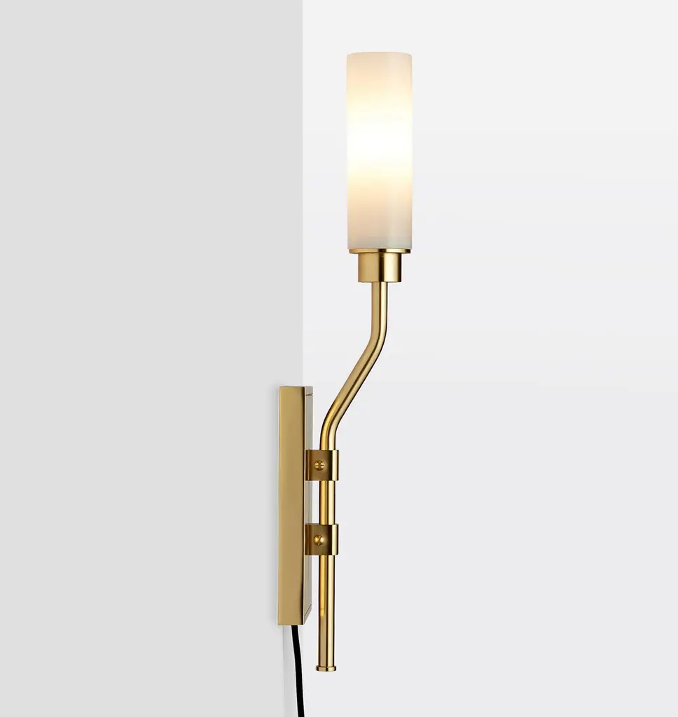 With details inspired by Japanese architectural joinery from the 1920s, our Winfield collection features a sculptural silhouette with industrial fasteners. A simple backplate and graceful arm with an elegant cylindrical shade provides bright, welcoming light to illuminate your space. Details You'll Appreciate Details at the socket mimic the seam of the brackets. The brackets are designed to be both functional and decorative Product Specifications Brass fixture with glass shades Plug in fixture with rocker switch on cord Plug-in, pin-up sconce For indoor use (UL Rated Dry) Assembled in the US with domestic and imported parts