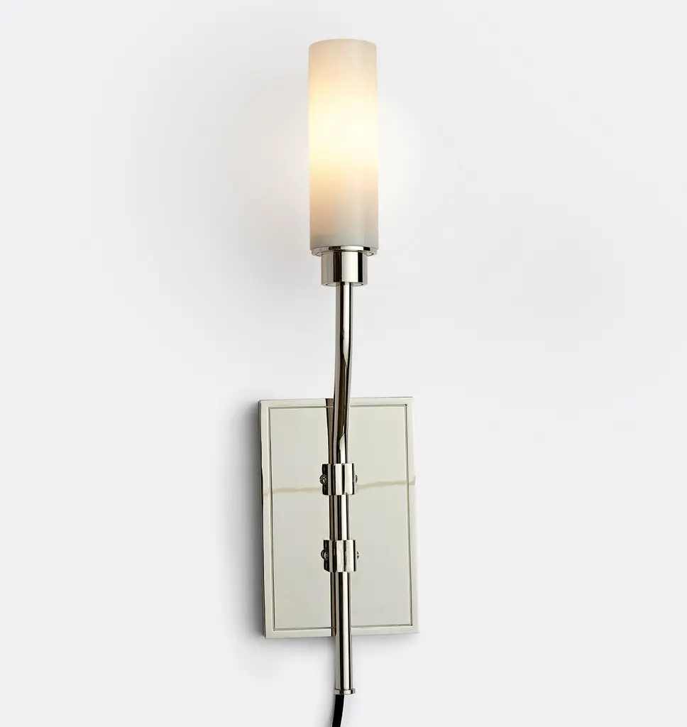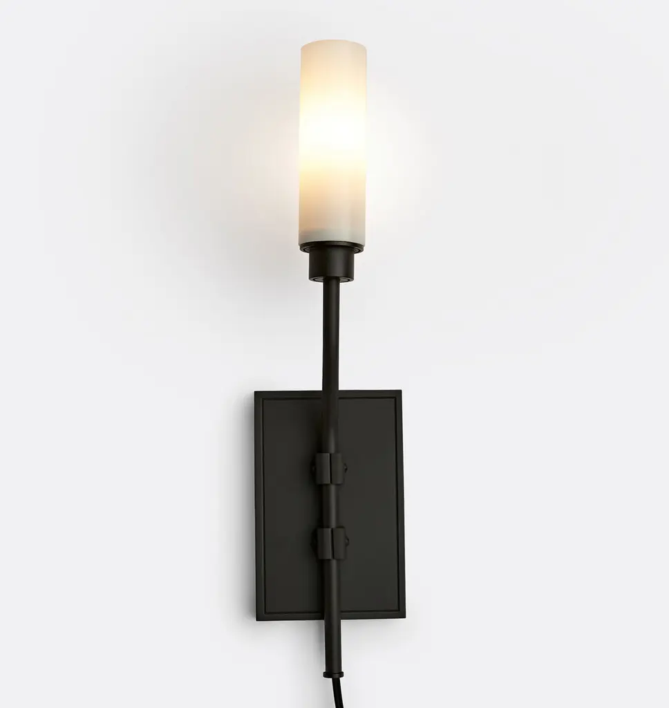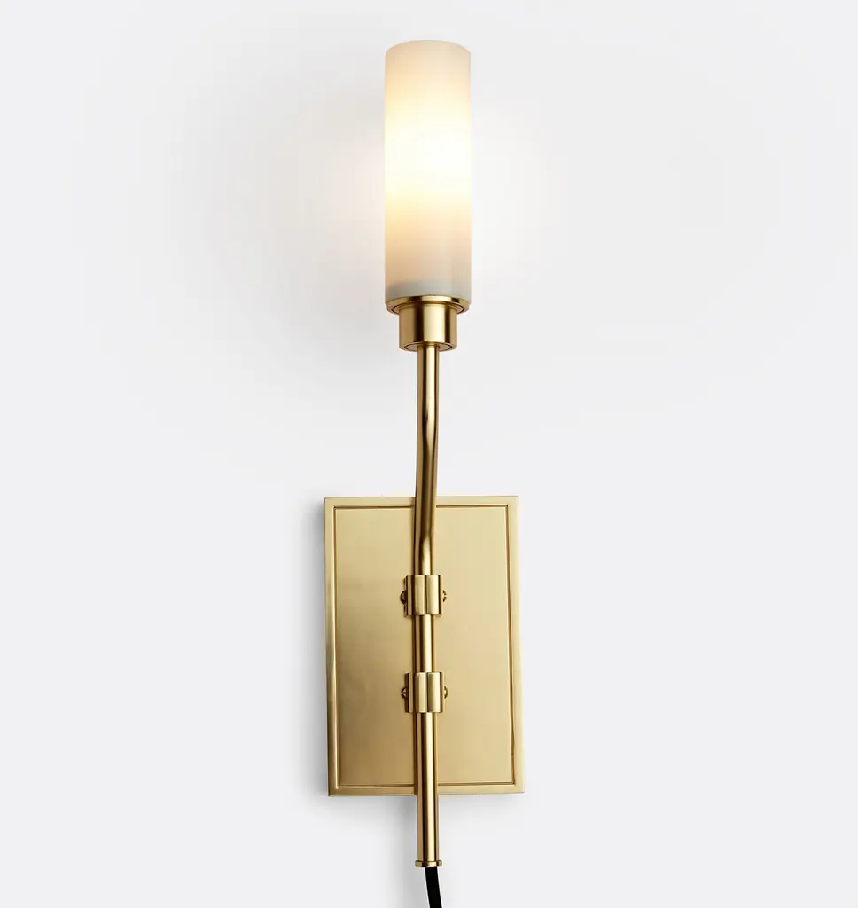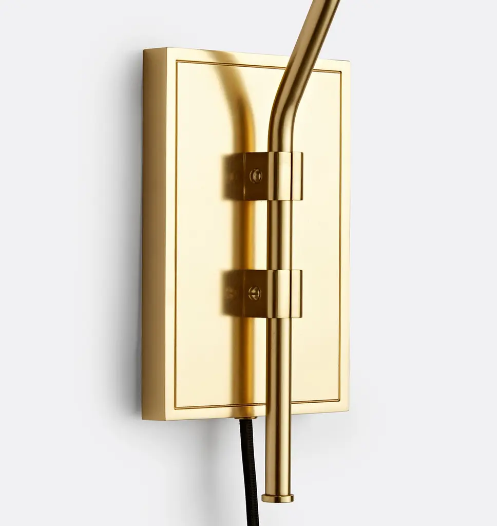 With details inspired by Japanese architectural joinery from the 1920s, our Winfield collection features a sculptural silhouette with industrial fasteners. A simple backplate and graceful arm with an elegant cylindrical shade provides bright, welcoming light to illuminate your space. Details You'll Appreciate Details at the socket mimic the seam of the brackets. The brackets are designed to be both functional and decorative Product Specifications Brass fixture with glass shades Plug in fixture with rocker switch on cord Plug-in, pin-up sconce For indoor use (UL Rated Dry) Assembled in the US with domestic and imported parts