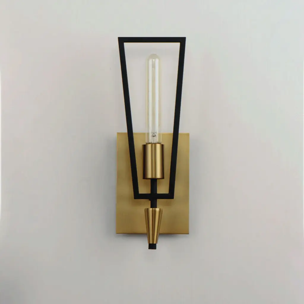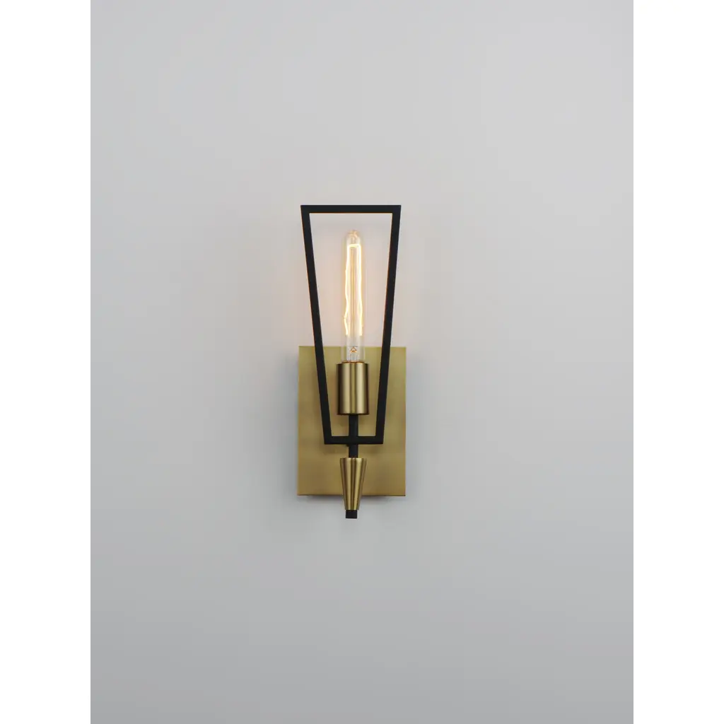Sharp lines radiate from a pointed pin central body creating geometric angled wings that are sandwiched between matching conical fonts. Finished in a combination Antique Brass and Black, this collection is both contemporary and warm. Complete this look with vintage T10 light bulbs to for the full effect.