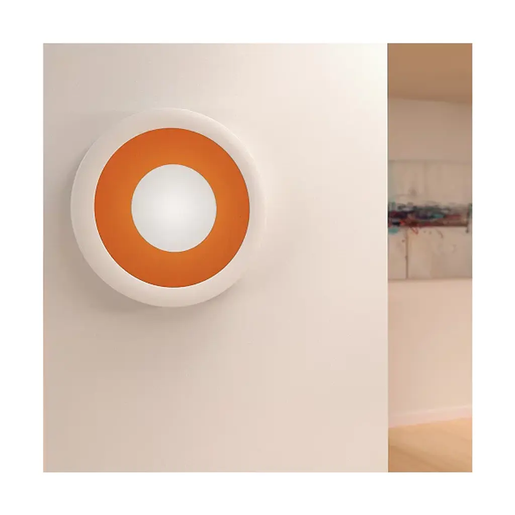 The Wink Wall Sconce from Seascape Lamps is a vibrant light fixture that stands out in modern settings. The silk fabric provides soft texture and energetic coloring with the LED light in the center, serving as the bullseye of the overall target design. The simple style of this wall sconce allows it to fit in with numerous settings, from a modern bedroom to hallways, living rooms to entryways. This product may be dimmed down to twenty-five percent to create the ideal mood lighting.