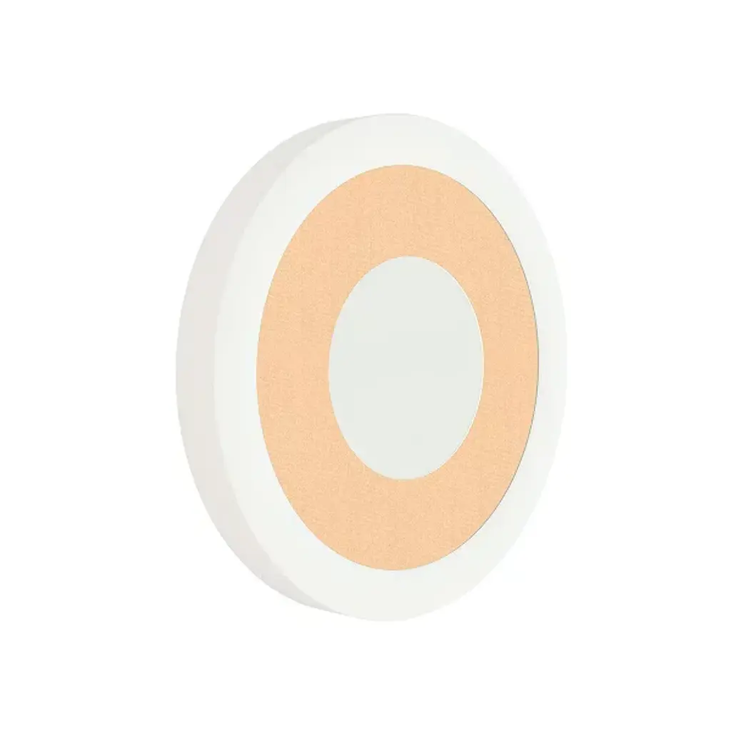 The Wink Wall Sconce from Seascape Lamps is a vibrant light fixture that stands out in modern settings. The silk fabric provides soft texture and energetic coloring with the LED light in the center, serving as the bullseye of the overall target design. The simple style of this wall sconce allows it to fit in with numerous settings, from a modern bedroom to hallways, living rooms to entryways. This product may be dimmed down to twenty-five percent to create the ideal mood lighting.