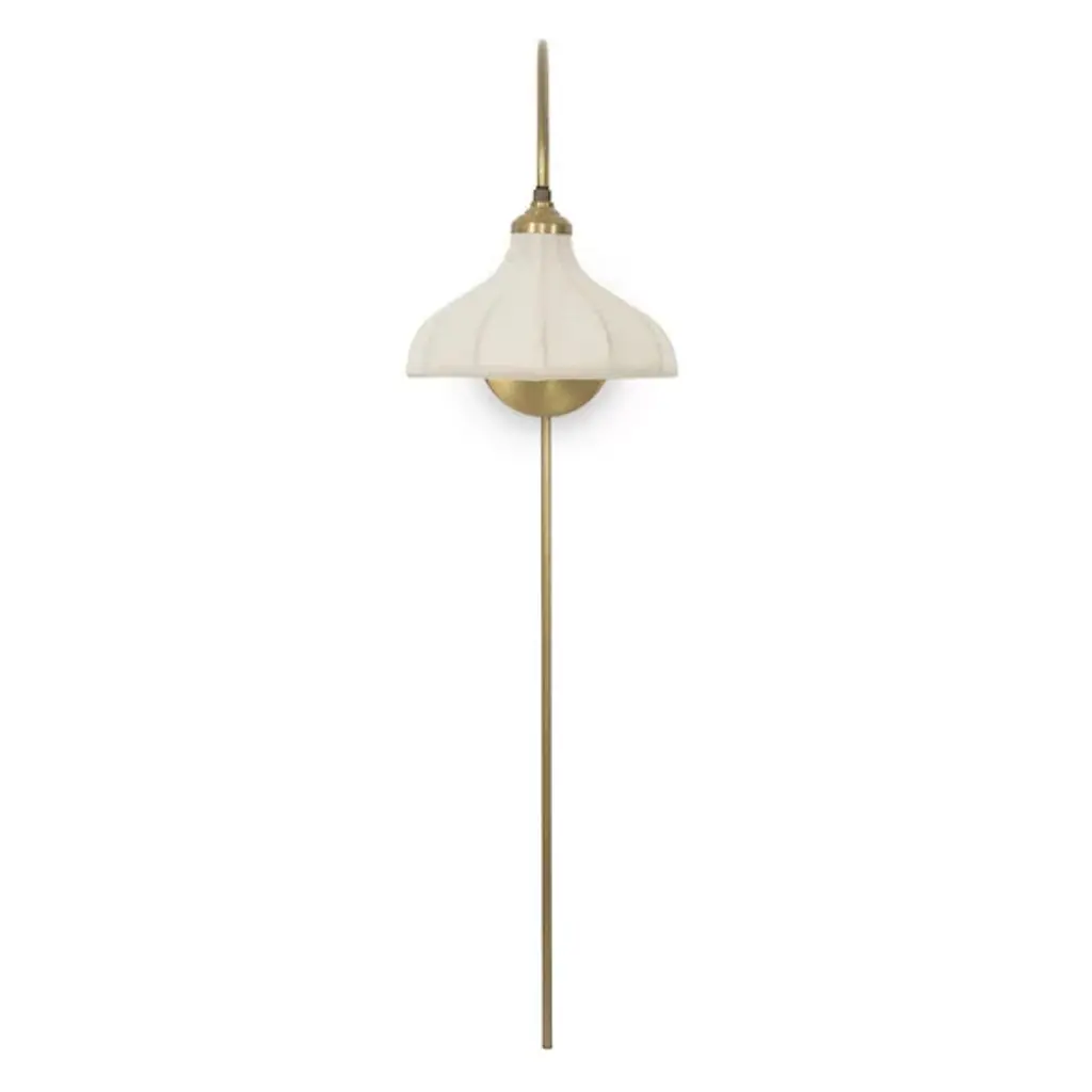 With its slim, curved swan-neck arm and bell-shaped linen shade accented by brass boning, the Winslet Wall Sconce from Four Hands offers a modern twist on a traditional lighting style. The thoughtful design provides warm, soft illumination, perfect for creating cozy reading nooks or bedside ambiance. Discreet cord management ensures a neat, polished appearance, enhancing its elegant aesthetic. This versatile sconce combines timeless charm with contemporary functionality, making it a stylish and practical addition to any space.