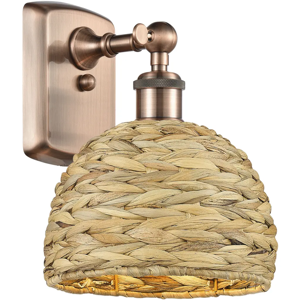 Decorate your living space with the Winslow Wall Sconce by Palecek. Your wall sconce features an exquisite, solid marble plate that is surrounded by a fine frame of metal. A rattan core is wrapped in lovely lampakanai rope, which forms a basket-like shade. Within this shade rests a brilliant LED that illuminates your environment.