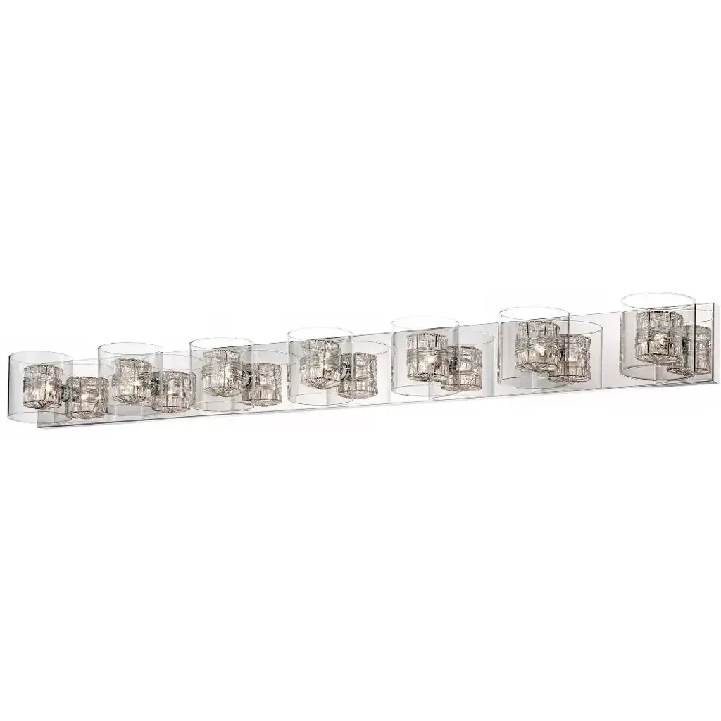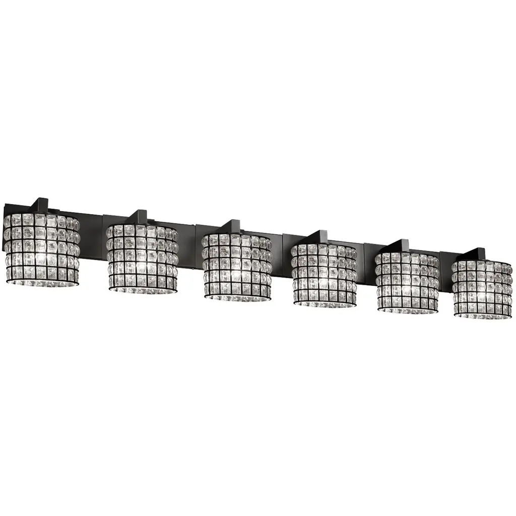 Wire Glass 6 Light 55.5 Inch Polished Chrome Bath Bar Wall Light In Grid With Clear Bubbles, Oval, Incandescent