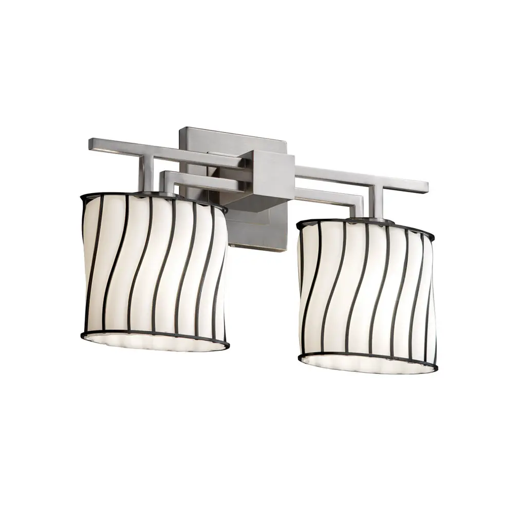 Wire Glass™ - Era 2-Light LED Bath Bar - Square w/ Flat Rim Shade - Grid with Clear Bubbles - Dark Bronze - Dedicated LED