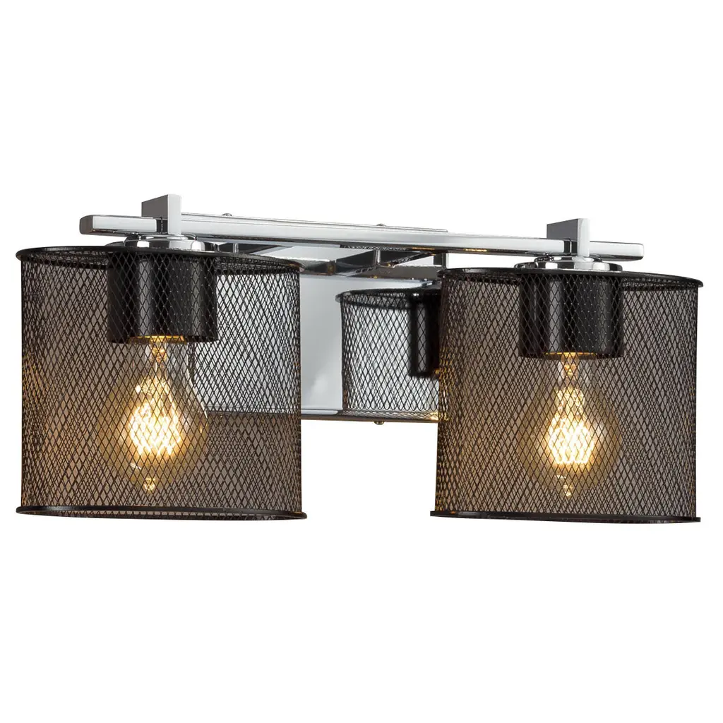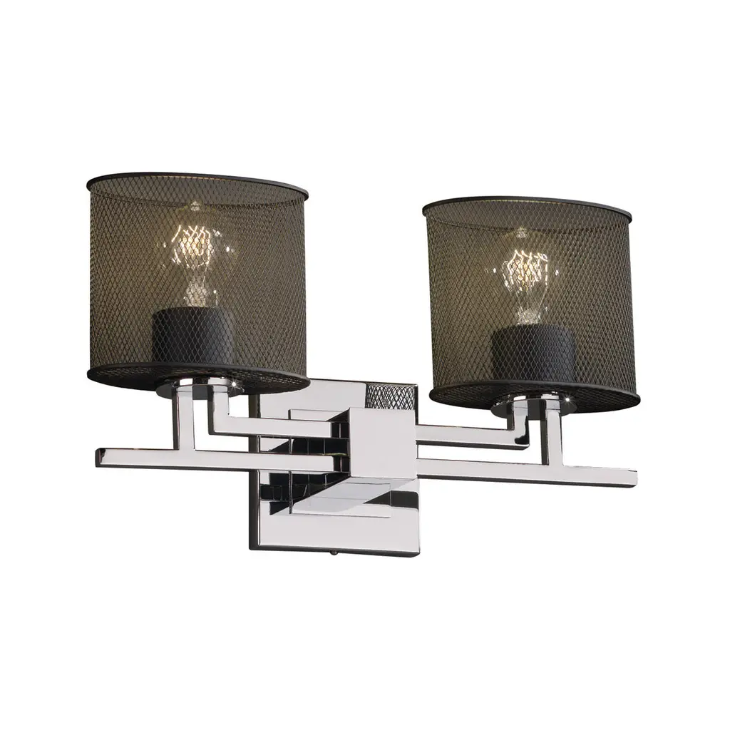 Wire Mesh™ - Era 2-Light Bath Bar - Square w/ Flat Rim Shade - Wire Mesh - Dark Bronze - E26 - CFL