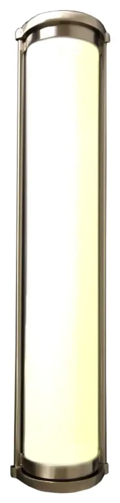 Greyson is a modern collection that uses a single half tube of opal glass lighted by LEDs and the ends are secured by the metal frame. It creates a balanced environtment while using less energy. This wall mount displays a continuous half pipe of opal glass that is enclosed by its metal frame for great lighting coverage and stability. It can be mounted vertically or horizontally with a satin nickel finish. LED Bulb16 Wattage (embedded)1 BulbsBulbs are included