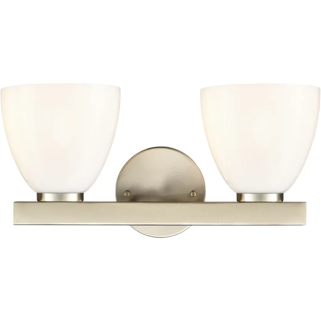 This 2-light bath is based on elliptical architecture, where the tapered elliptical opal glass rests on an outer curved frame. The design is prominent from various angles and can fit in many transitional environments.Wattage: 60Bulbs Included? NoNumber of Bulbs: 2Bulb Type: E26