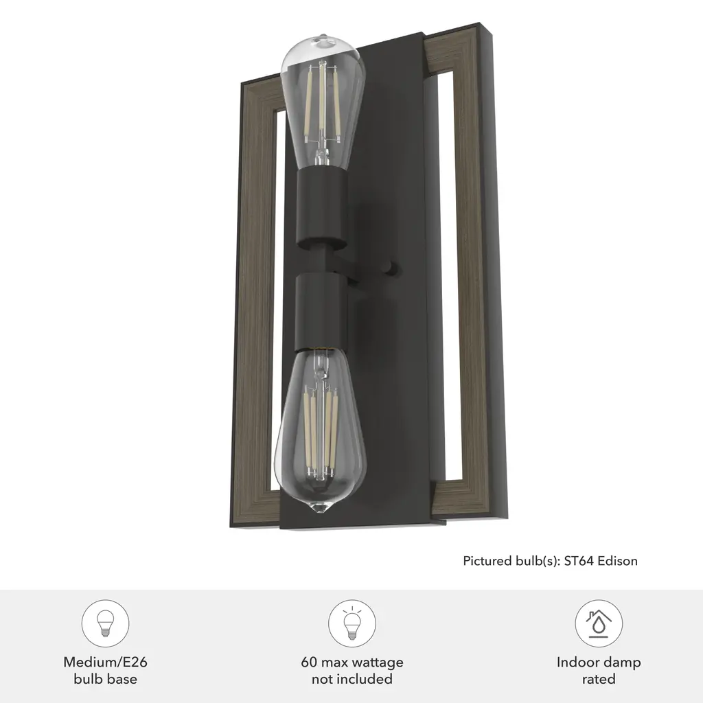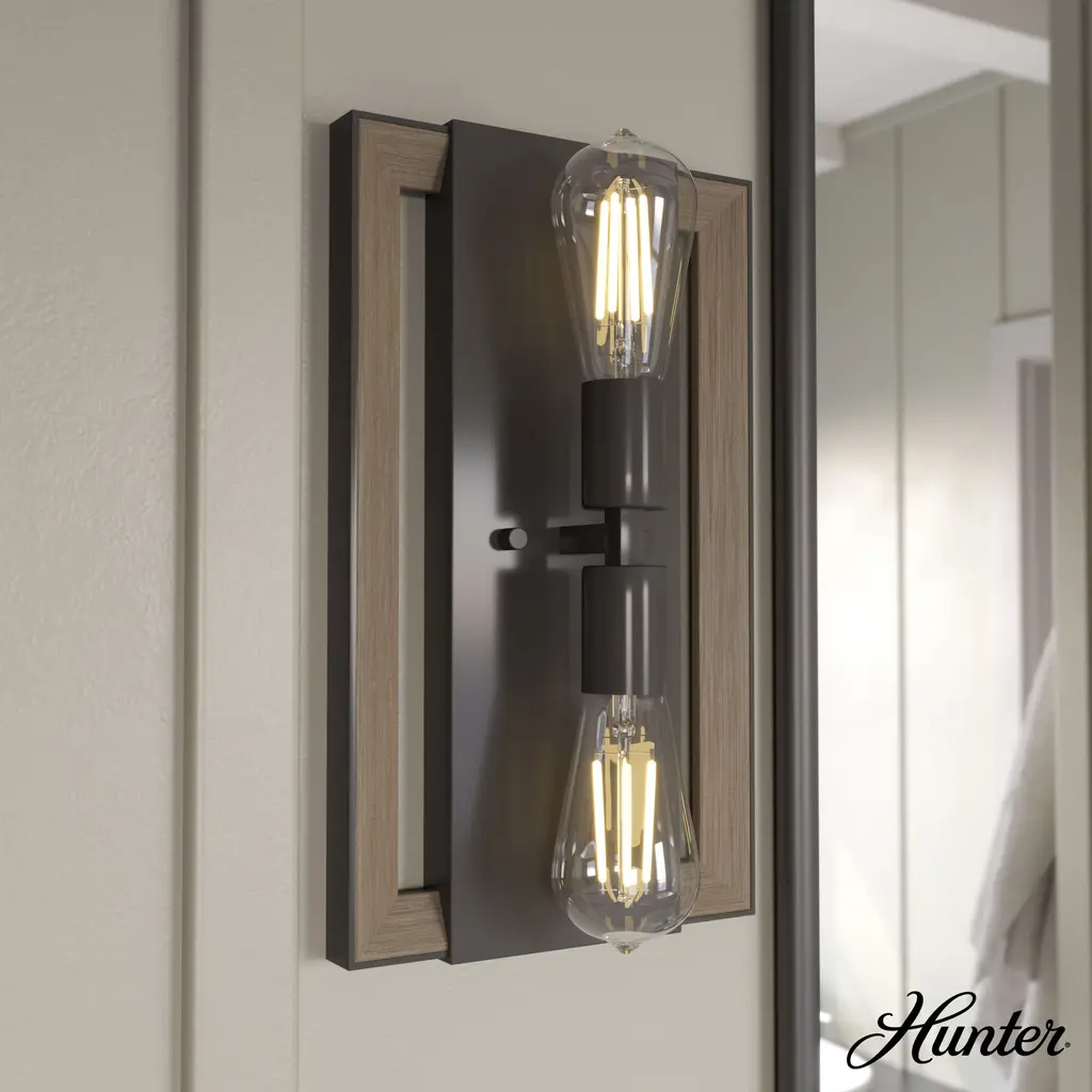 The Woodburn wall sconce lends a fresh look to your master bedroom, hallways, or larger living spaces. Designed to illuminate artwork, accentuate accessories and brighten built-ins, the wall sconce reflects the Woodburn collection’s careful balance of wood and metal elements. Infuse the rustic vibes of the Woodburn collection. mix and match with other fixtures from this collection or from our ceiling fan designs.