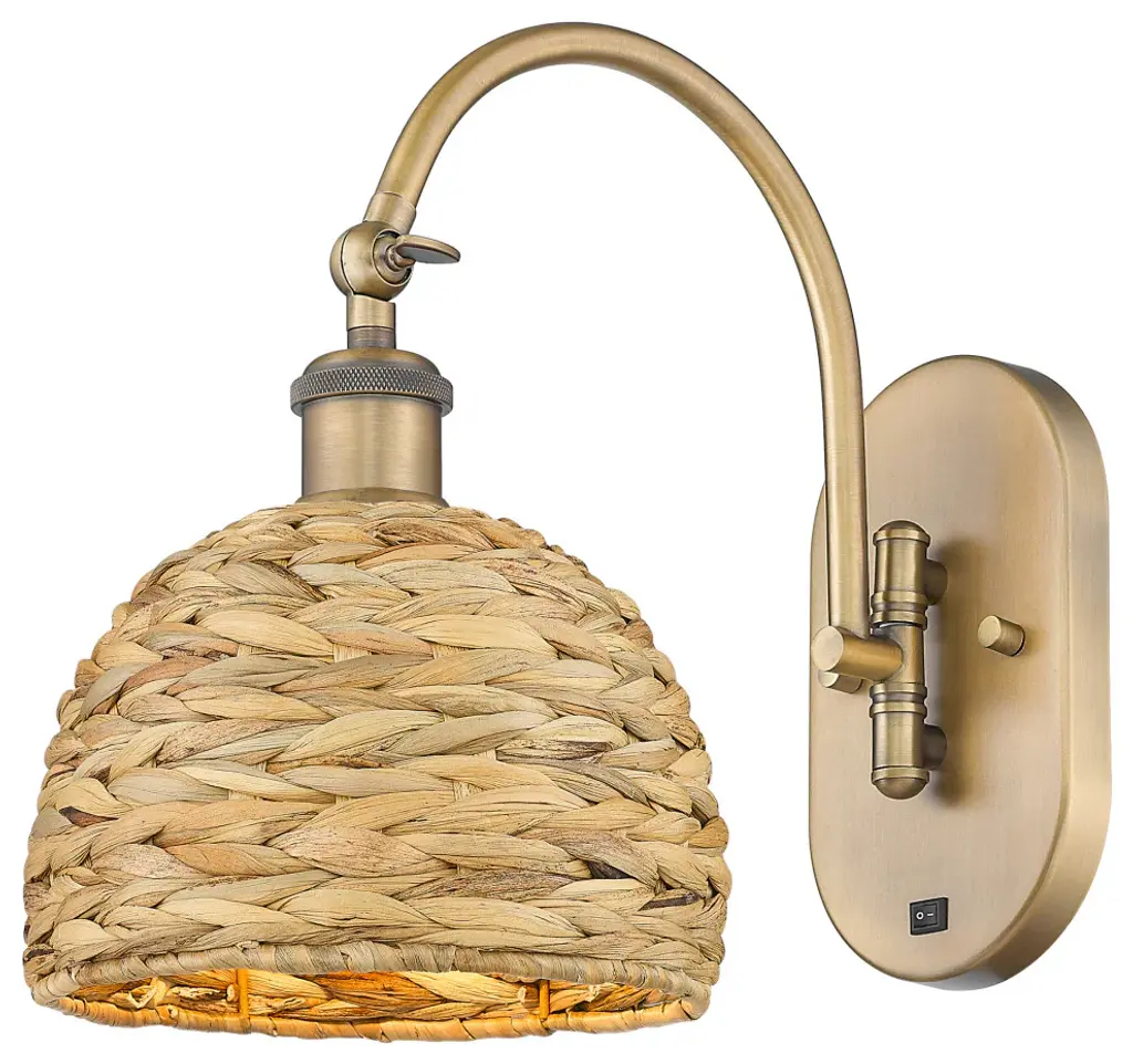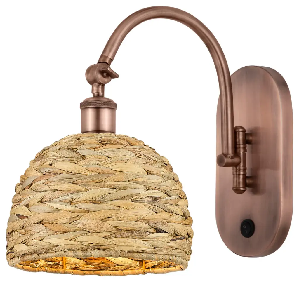 Woven Rattan-1 Lt 8"sconce-Arm Adjusts Up/down-Antique Copper -Natural Shade