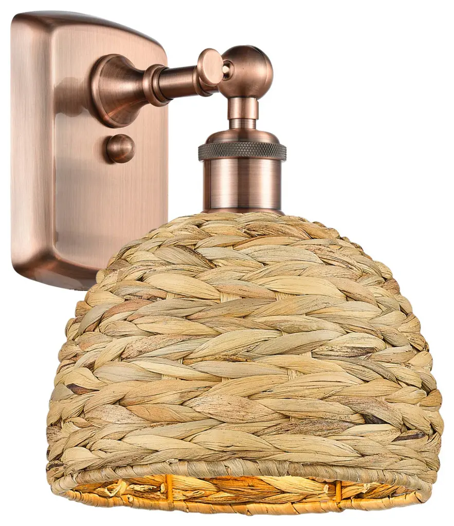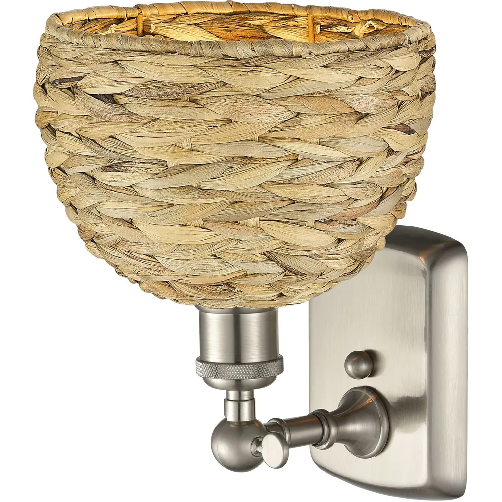 Woven Rattan - 1 Light 8" Wall-Mounted Sconce - Satin Nickel Finish - Natural Shade