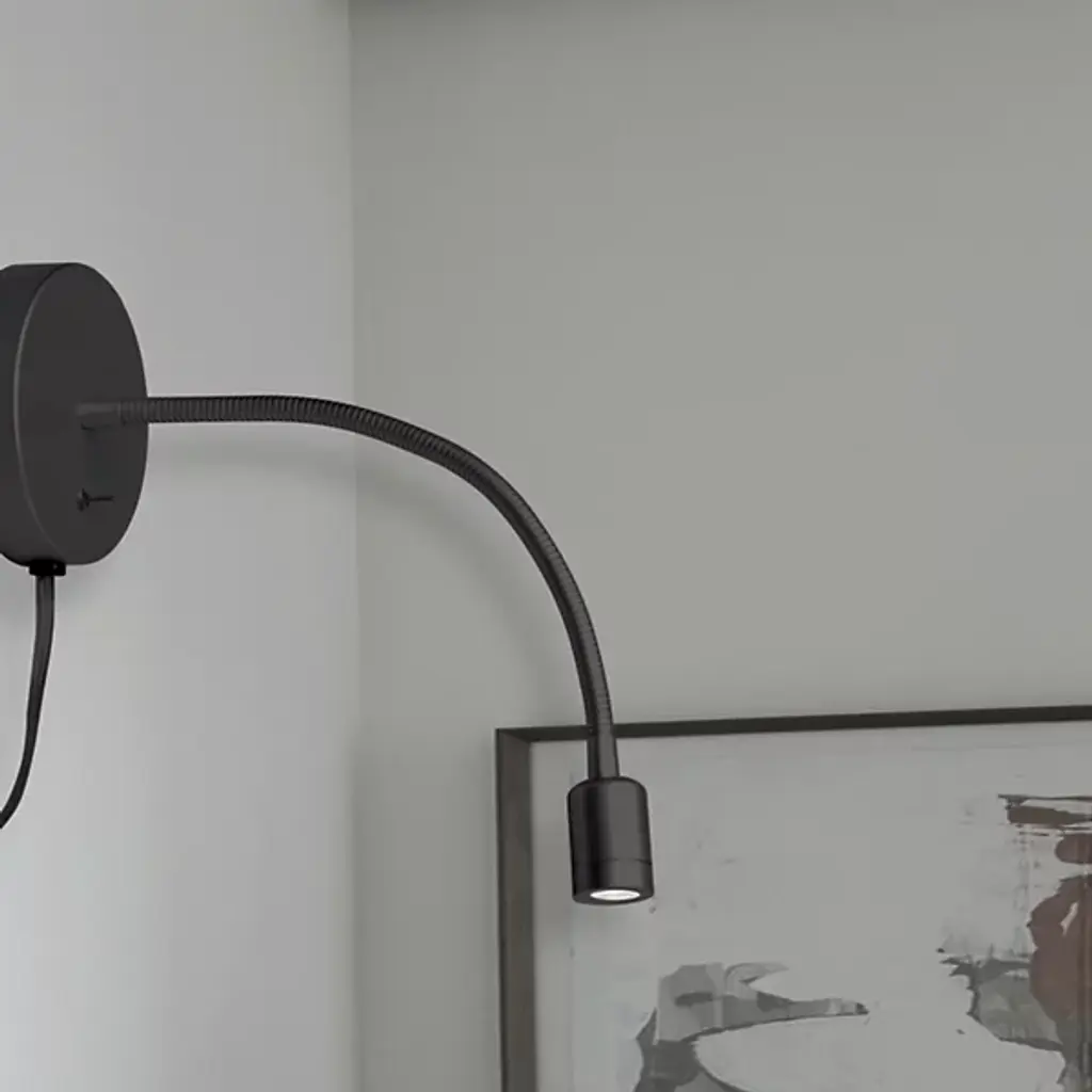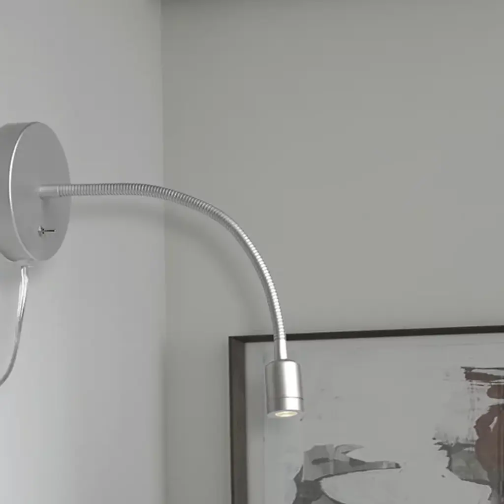 A flexible contemporary design, the Wynne 3W LED Wall Sconce from by Dainolite stands ready to push back darkness at any angle. Secured to walls by a switched metal disc mount, it sends out an adjustable gooseneck from its central point that terminates in the small cylindrical housing for an integrated LED. The lamping is potent and energy-efficient, easily moved to place a pool of direct light at your disposal or aimed offset for a wash of ambient light.