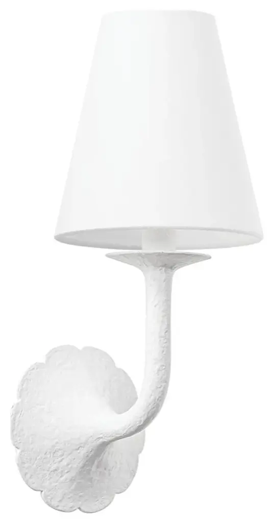 The Yael Wall Sconce from Mitzi is a gorgeous luminary designed by Zoe Feldman. It blends gracefulness and botanical charm. The fixture's gooseneck form curves like a delicate stem, drawing your eye. A dome features a distinctive scalloped edge, adding a layer of visual interest. Crafted from durable steel complemented by a metal shade, Yael embodies timeless design and provides stability. Illuminate your space with the gentle glow of its LED.