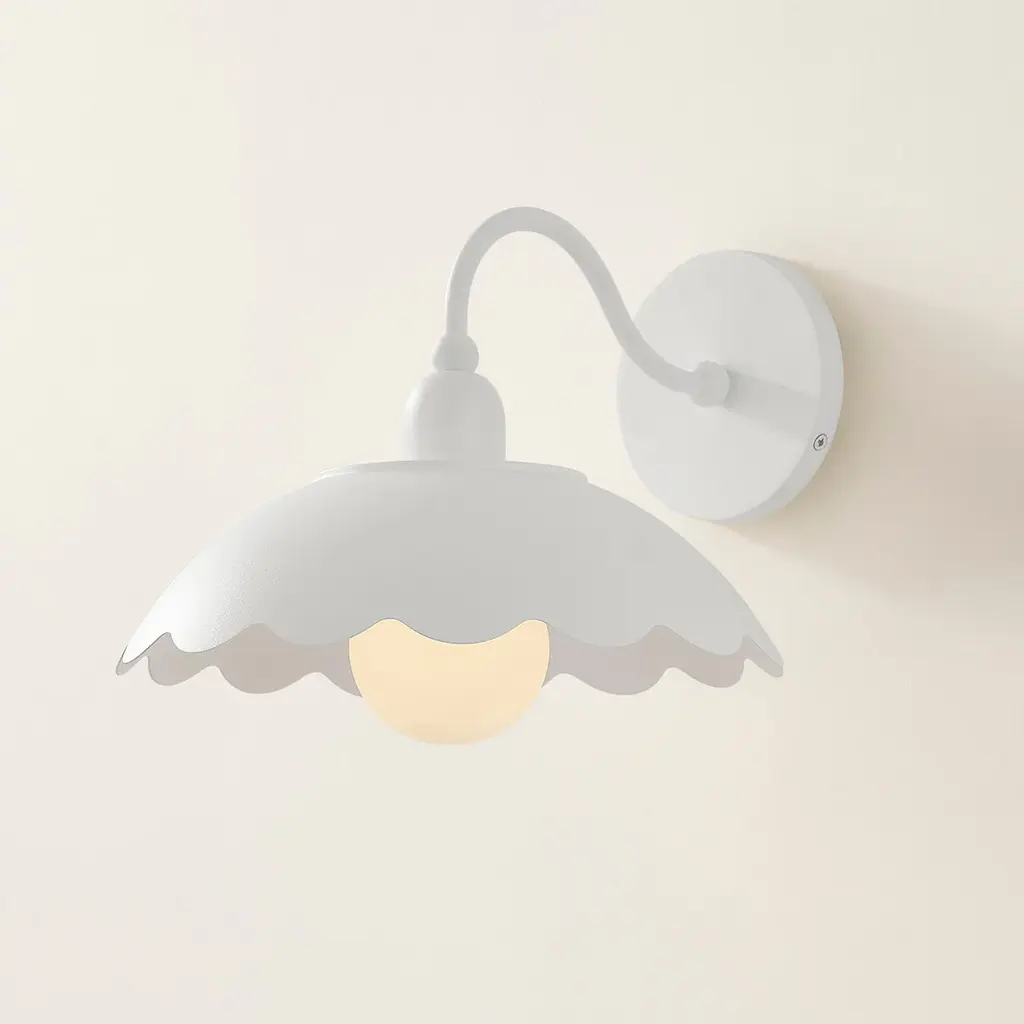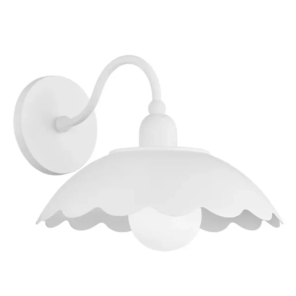 Graceful gooseneck arms curve like stems in support of the beautiful botanical forms of Yael. Each large dome shade features a scalloped edge. Small decorative spheres adorn the fixture like beads, complementing the sculptural linework of this family. Available as a sconce or a linear design, Yael makes a soft, fresh statement with its Textured White finish. Part of our Zoe Feldman collection.