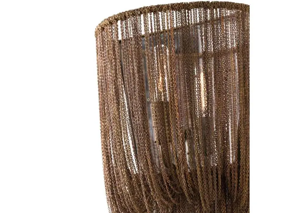 This tasteful piece features a one light sconce accentuated by rows of antique brass chains. Its eye-catching tassel design provides a touch of drama, easily styling around fireplaces or in entryways. Elevate its showstopping look by pairing two together.