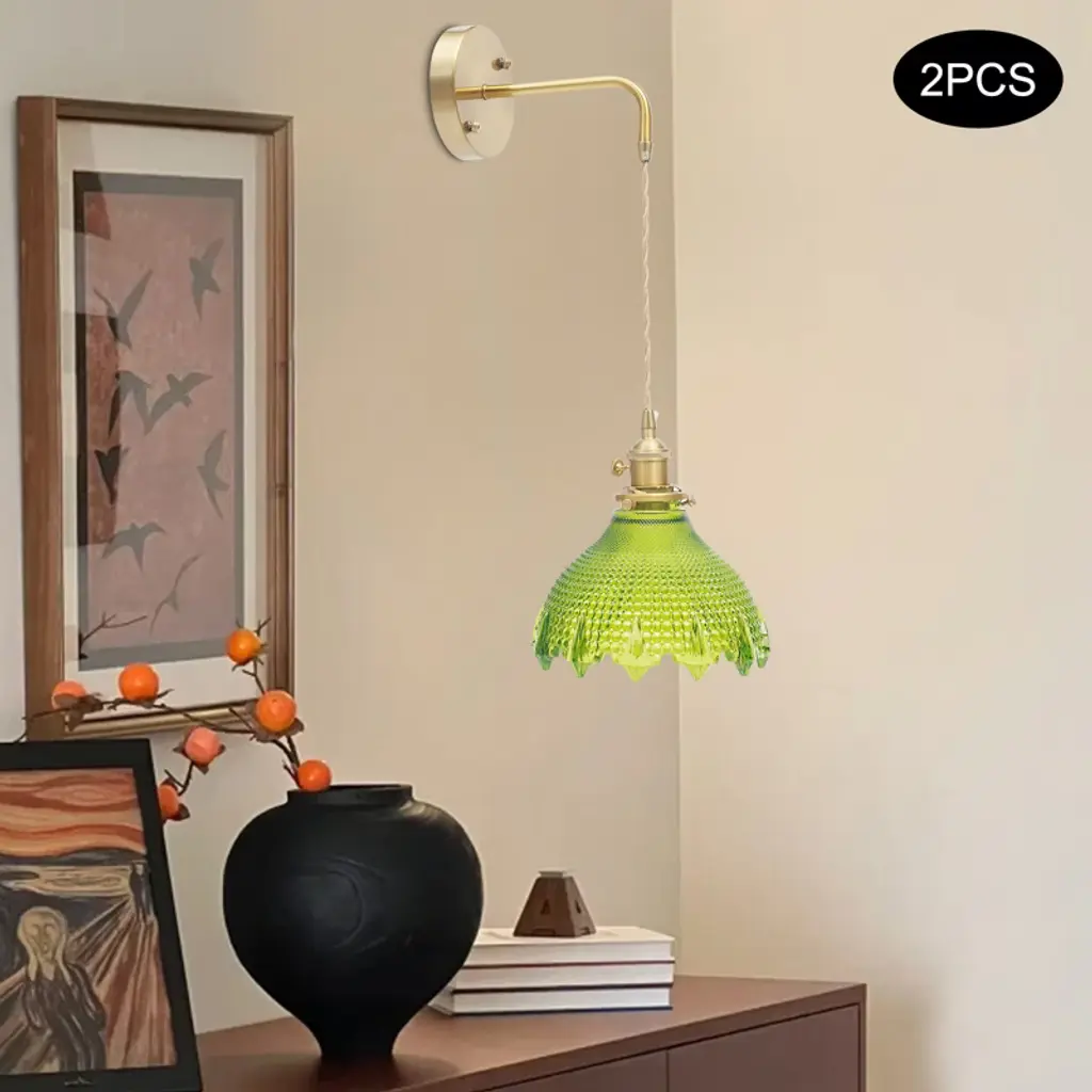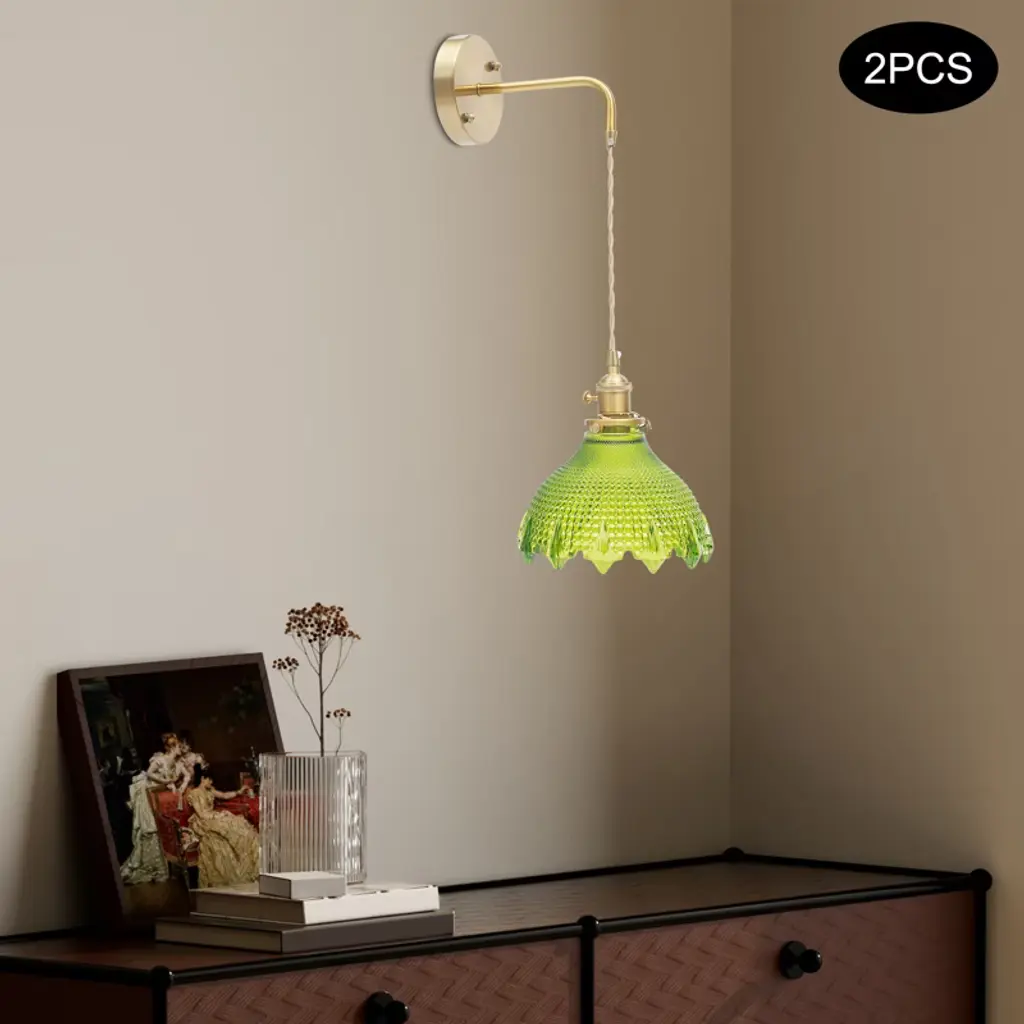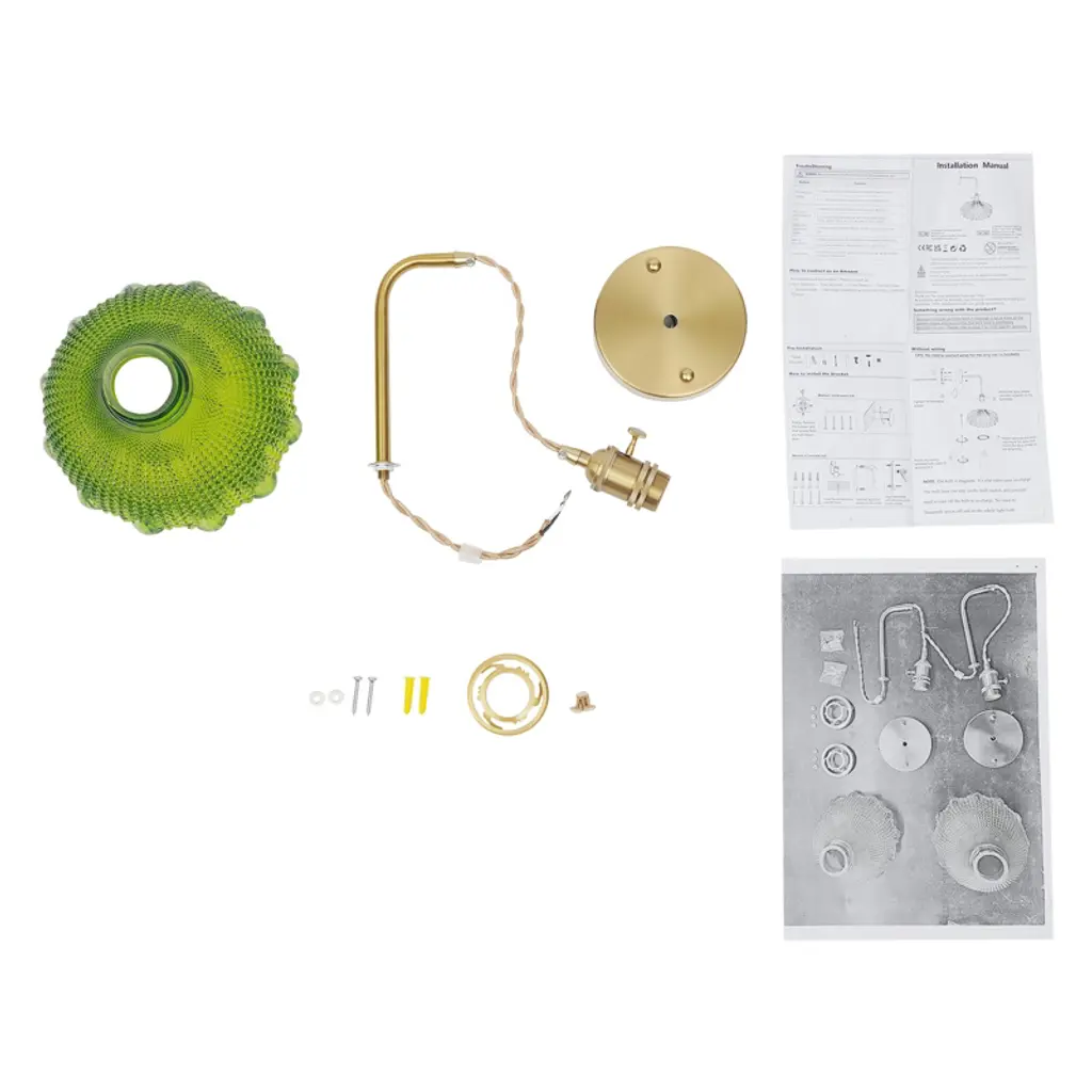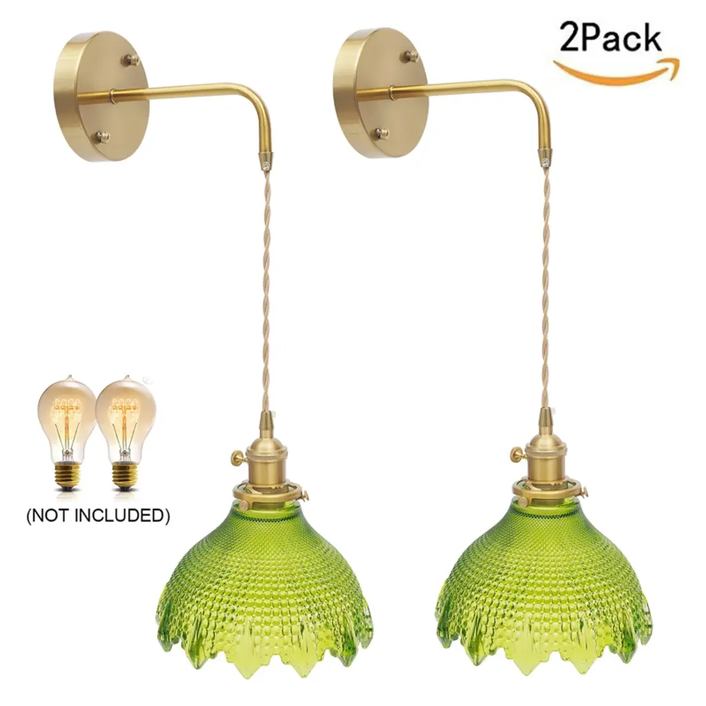 An ideal blend of elegance and durability, our wall lamp transforms any space into a warm and inviting haven. Crafted from premium glass and iron, and finished with exquisite electroplating and baking paint techniques, it not only enhances your home's aesthetic but also stands the test of time. More than just a lighting solution, it becomes a comforting companion, casting a gentle glow that enriches your everyday living. Whether you're looking to elevate your interior décor or add functional beauty to your walls, this wall lamp is the ideal choice to illuminate and inspire. Specifications Material: Iron, Glass Process: Electroplating, Baking Paint Color: Dark Green, Gold Style: Retro Efficiency: E Assembly Required: Yes Mounting Type: Wall Mounted Indoor/Outdoor Usage: Indoor Each Lamp Rquired Light Source: 1* E26 Rechargeable Bulb(Not Included) Number of Items: 2 Protection Class: IP20 Applicable Area: 5㎡/53.82ft²(For Reference) Gross Weight: 3.5kg/7.72 lbs Net Weight: 2.75kg/6.06 lbs Each Lamp Crossbar Length: 15cm/5.9in Each Lamp Hanging Chain Length: 30-35cm/11.81-13.77in Each Lamp Base Size(D*H): 12*2.5cm/4.72*0.98in Each Lamp Body Size(D*H): 17*12cm/6.69*4.72in