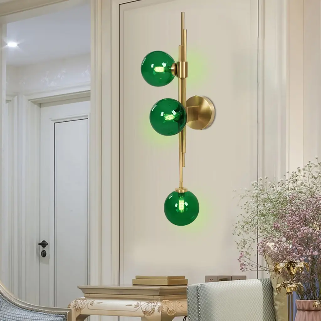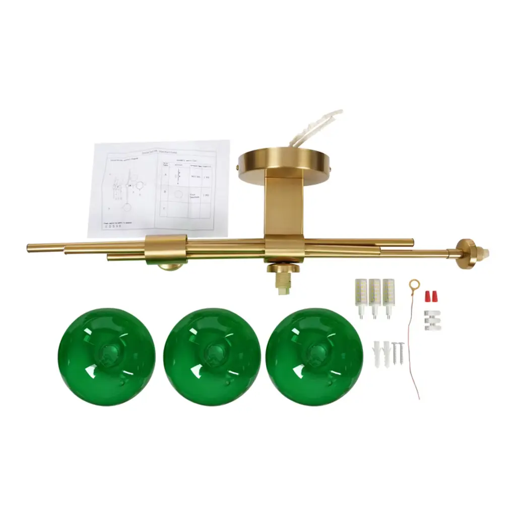 Transform your home into a sanctuary of comfort and style with this stunning green glass wall lamp. Its elegant emerald green shade, layered stem, and gold base create a sophisticated look while casting a soft, warm, and mysterious glow. Perfect for creating a cozy atmosphere for reading or family time, this durable and easy-to-install fixture brings a touch of natural vitality and romance to any indoor space. Specification Color: Emerald Green, Gold Style: Modern Assembly Required: Yes Mount Type: Wall Mount Surface Treatment: Electroplated Material: Iron, Glass Type: Wall Lamp Control Method: Wall Switch(Not Included) Light Color: Warm Light Color Temperature: 2700K Indoor/Outdoor Usage: Indoor Light Source: 3* G9 LED Bulbs(Included) Voltage: 110-220V Efficiency: E Each Bulb Power: 2-5W Lighting Area: 10-20m²/107.64-215.3ft² Base Size(D*H): 12*2.5cm/4.72*0.98in Each Lampshade Diameter: 12cm/4.72in Distance from Wall: 26.5cm/10.43in Total Height: 70cm/27.56in Package Included 1* Wall Lamp Frame 3* G9 Bulbs 3* Lampshades 1* English Installation Instruction 1* Ground Wire All Accessories for Use