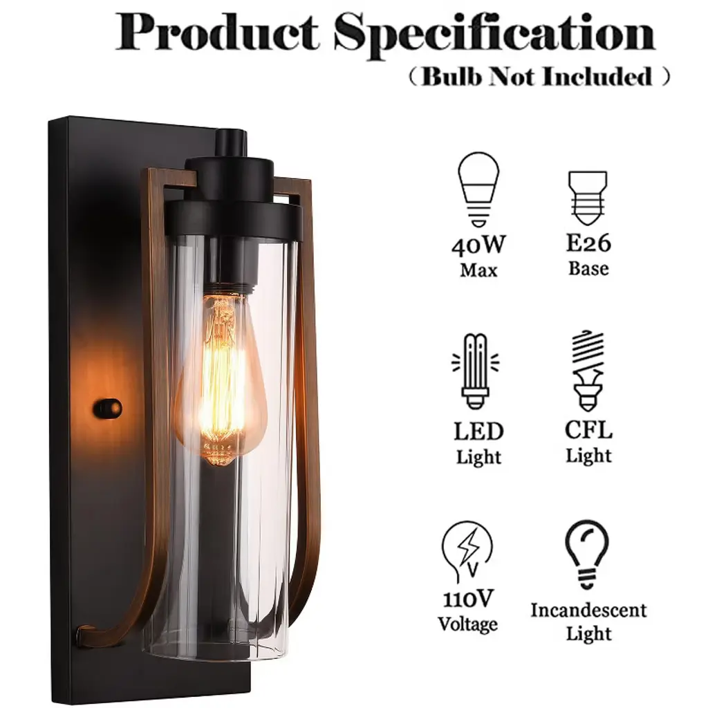 This charming retro-style wall sconce brings both illumination and warmth to your home. Crafted from durable, painted iron with a glass shade, it boasts a sturdy, water-resistant design. The standard E26 base accommodates various bulbs (max 60W, not included), while its hollow structure adds an industrial, artistic flair, allowing light to softly diffuse. Easy to install with included accessories, it's a perfect decorative accent for entryways, bathrooms, or hallways, enhancing your retro aesthetic. Specifications Color: Black, Golden Style: Modern Shape: Rectangle Material: Iron, Glass Efficiency: E Process: Imitation Wood Grain Handmade Painting, Spray Painting Installation Required: Yes Mount Type: Wall Mount Control Type: Wall Switch(Not Included) Maximum Power of Light Bulb: 60W Voltage: 110-120V Light Source: 1*E26(Not Included) Illumination Area: 3-5㎡/32.29-53.82ft² Product Size: 15*16*40cm/5.9*6.3*15.75in