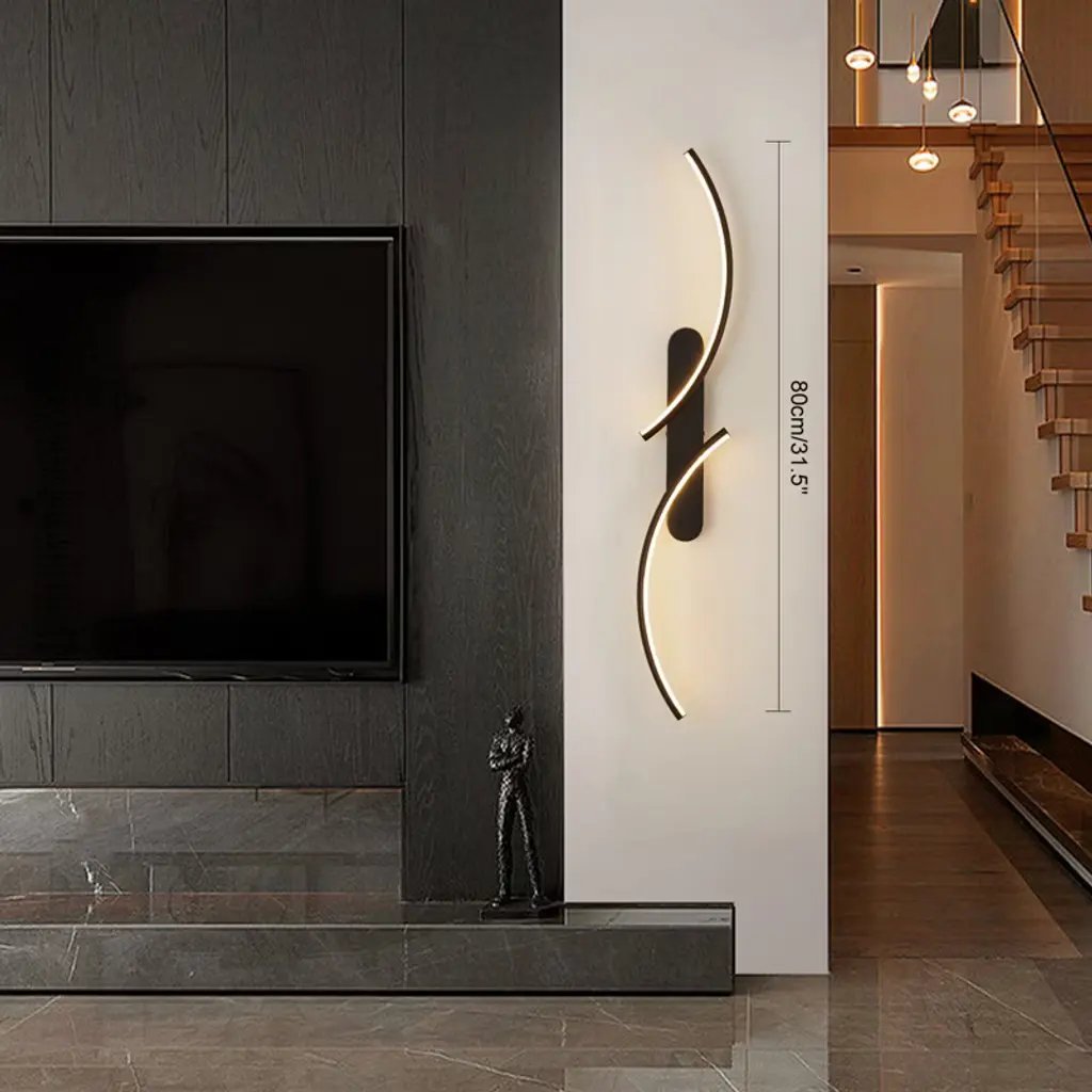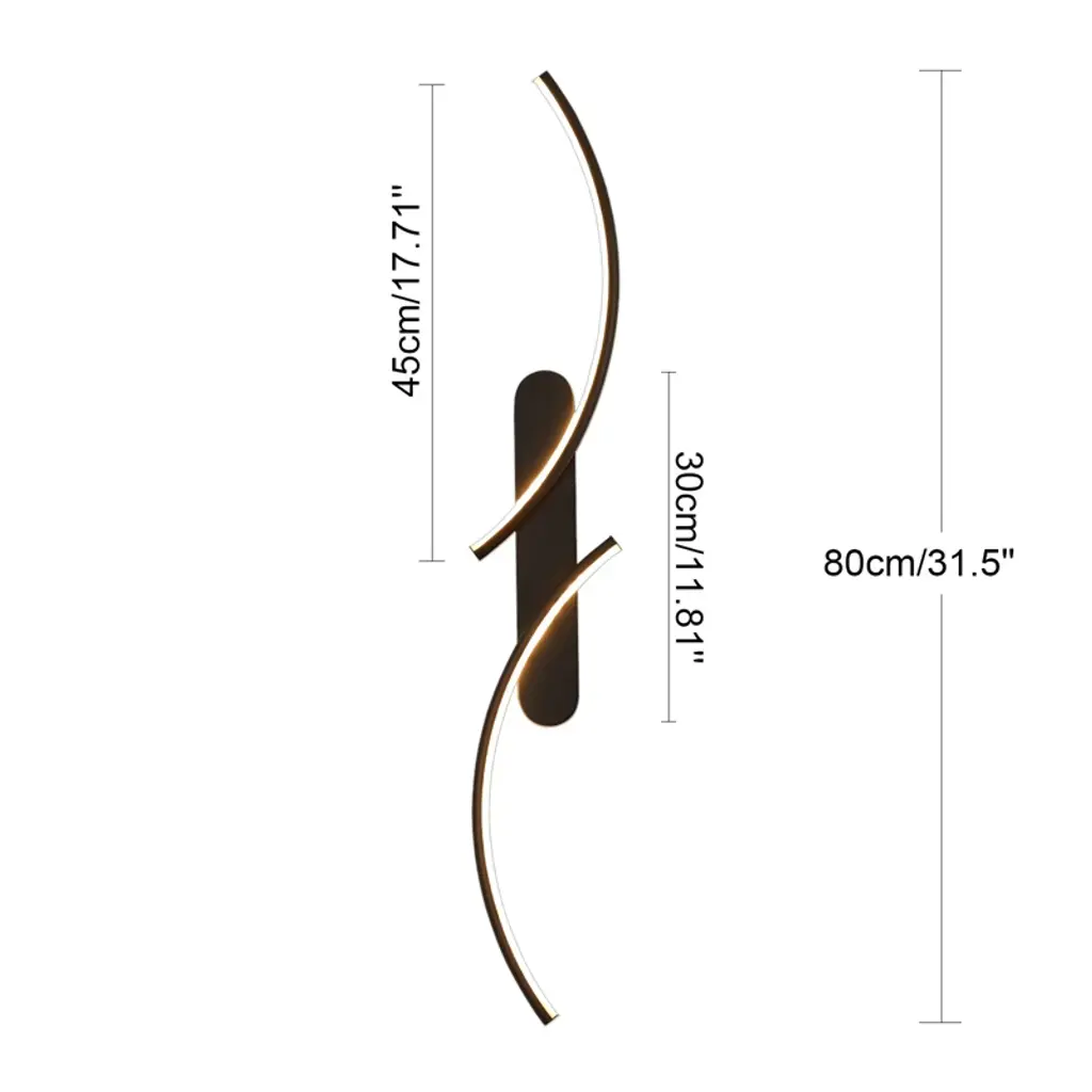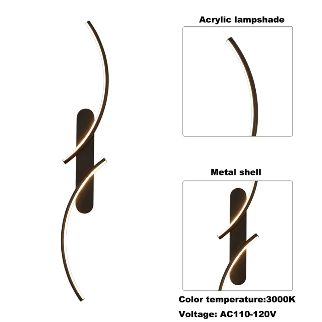 Elevate your space with this modern and durable wall light, expertly crafted from premium aluminum and iron. Its unique segmented arc design features two powerful LED strips that cast a bright, warm glow, creating a cozy and inviting atmosphere. Built to withstand the elements, this energy-efficient fixture is perfect for both indoor and covered outdoor areas, offering a stylish and practical lighting solution for any home. Specification Color: Black Material: Aluminum, Iron, Silicone Style: Modern Rated Voltage: 85-265V Light Source Type: LED (Included) Light Color: Warm Light Color Teperature: 3000K Mount Type: Wall Mount Number of LED Light Strips: 2 Applicable Area: 15-20m²/161-215ft² Efficiency: E Ra: >90 Product Height: 80cm/31.5inch Chassis Length: 30cm/11.81inch